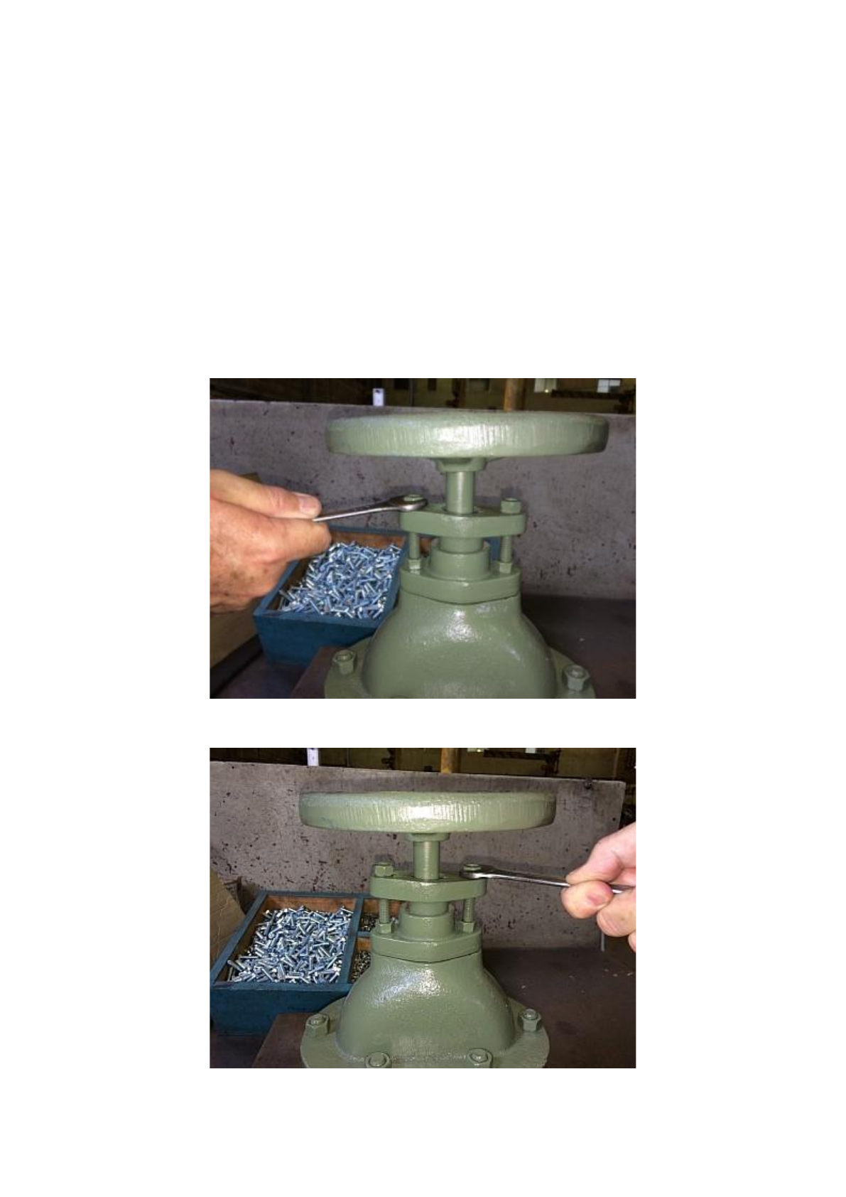 Procedimento de substituição de gaxeta ALUNO: ARTHUR BERTO FERREIRA ROSA Aperto do Preme - Gaxeta O ajuste das porcas do preme gaxetas é feito quando há vazamento em forma de pingos ou de escorrimento. Aperte as porcas alternadamente, 1/4 de volta de cada vez, mantendo o preme gaxetas nivelado e verificando se o vazamento parou. Veja as Figuras 1 e 2 abaixo. Verifique também se a haste não está prendendo. Este ajuste pode ser feito com a válvula em serviço. Na maioria dos casos isso resolve o problema de vazamento. Se após estes apertos ou se não há mais curso para apertar, mais gaxetas devem ser adicionadas ou mesmo trocadas. Figura 1 Figura 2 Adicionar ou Trocar as Gaxetas A troca ou adição de gaxetas nas válvulas deve ser feita quando o vazamento por elas não pode ser eliminado através do ajuste das porcas. A adição ou troca de gaxetas é feita da seguinte forma: 1. Retirar a pressão da linha (fig 3) antes de iniciar a manutenção. Use equipamento de proteção individual (EPIs) adequados. Figura 3 2. Se possível, deixar a válvula na posição totalmente aberta. Nas válvulas que tem contra vedação isso irá reduzir o vazamento do fluido durante a manutenção. 3. Soltar as porcas e levantar o preme gaxetas para ter acesso às gaxetas (Fig.4). Figura 4 4. Pode-se acrescentar gaxetas neste ponto preenchendo a câmara de gaxetas. Seguir para o passo 6. 5. Caso as gaxetas estejam desgastadas, retirar as gaxetas usadas usando uma ferramenta pontiaguda e curva de diâmetro pequeno (± 3mm). (ver fig 5 e 6) Figura 5 Figura 6 6. Colocar as gaxetas novas com o lado cortado sempre em lado oposto ao anterior (deslocado 180 graus). Ver Figura 7. Use o preme gaxetas para empurrar cada gaxeta para dentro. Quando a câmara estiver cheia, colocar as porcas novamente no lugar e apertar alternadamente até começar a prender a haste. Verifique se a haste não está presa girando-a algumas voltas. 7. Aplicar pressão da linha e ajustar as gaxetas se necessário. Fonte: https://www.niagara.com.br/artigo/manutencao-e-troca-de-gaxetas-valvulas-niagara (acessado no dia 22/09/2021) https://www.niagara.com.br/artigo/manutencao-e-troca-de-gaxetas-valvulas-niagara