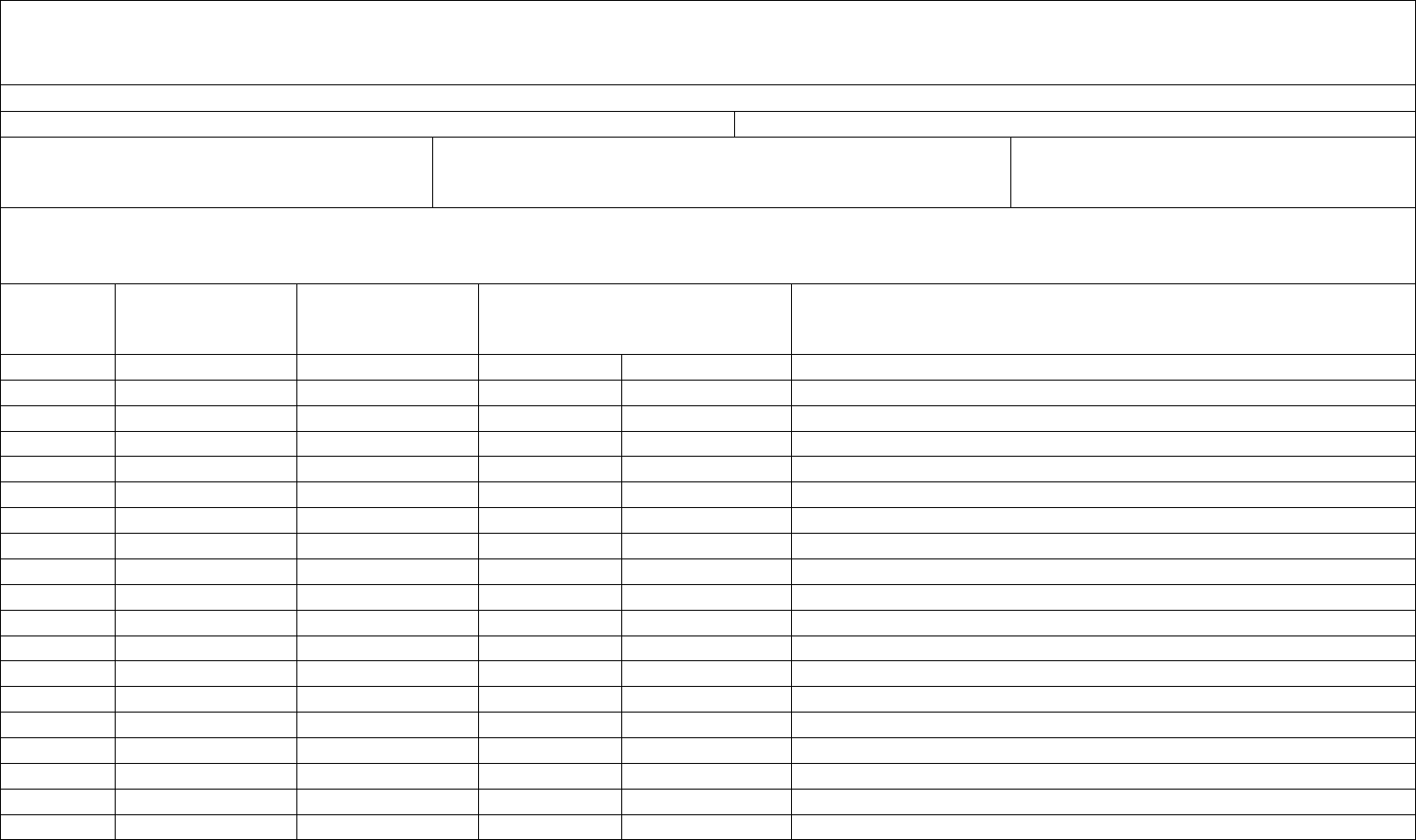 PASA – PROGRAMA DE AUDITORIA E SEGURANÇA ALIMENTAR – Pág 01 de 01 DIRETORIA DE ABASTECIMENTO – SEÇÃO DE GESTÃO LOGÍSTICA E SUBSISTÊNCIA – CLASSE I Documento: Planilha de Controle Interno Recebimento de Gêneros Rancho: Responsável: Ano: PLANILHA 2 - RECEBIMENTO DE GÊNEROS REFRIGERADOS E FRIGORIFICADOS DIA TEMPERATURA DO GÊNERO TEMPERATURA DO CAMINHÃO QUALIDADE/ QUANTIDADE/ ROTULAGEM/ AVALIAÇÃO SENSORIAL DO PRODUTO OBSERVAÇÕES CONFORME NÃO CONFORME