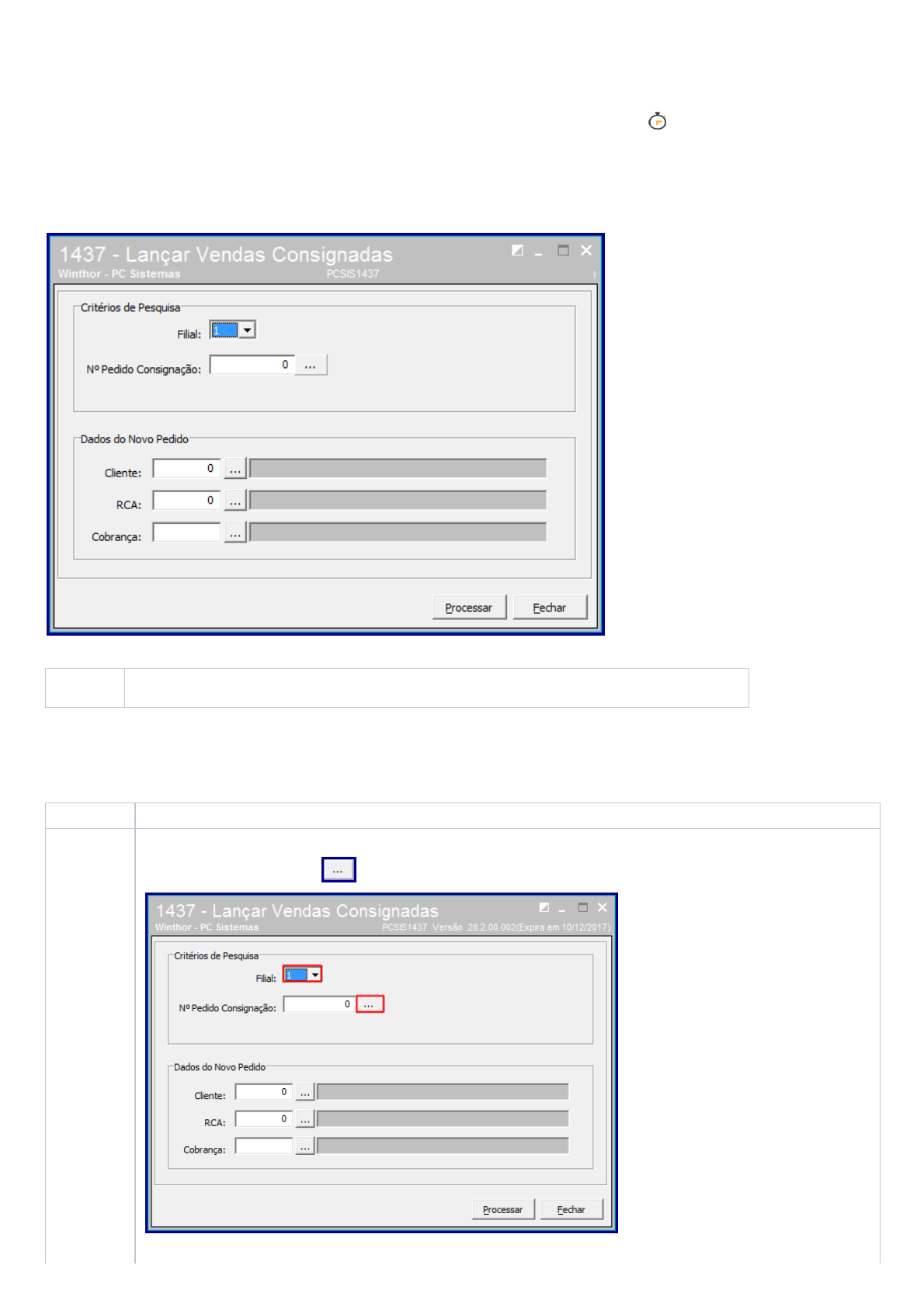 23/10/2020 1437 Lançar Vendas Consignadas - DR. - PC Sistemas - TDN https://tdn.engpro.totvs.com.br/pages/releaseview.action?pageId=286738067 1/4 Páginas / … / Vendas - DR. Tempo aproximado para leitura: 3 minutos 1437 Lançar Vendas Consignadas - DR. Criado por ERICKA ALBINO DO CARMO, última alteração em 02 jan, 2019 Lançar Vendas Consignadas - 1437 Visão Geral do Programa Objetivo da tela: Tela principal da rotina 1437 - Lançar Vendas Consignada. Utilizada para realizar os acertos parciais de venda consignada (Baixas de Estoque Consignado do Cliente). Outras Ações/Ações Relacionadas: Lançar Venda Consignada Campo: Descrição Lançar Venda Consignada 1. Acesse a rotina 1437; 2. Informe a Filial e clique o botão ; https://tdn.engpro.totvs.com.br/collector/pages.action?key=PCS https://tdn.engpro.totvs.com.br/pages/viewpage.action?pageId=223919638 https://tdn.engpro.totvs.com.br/pages/viewpage.action?pageId=286738067 https://tdn.engpro.totvs.com.br/display/~pc.ericka.carmo https://tdn.engpro.totvs.com.br/pages/diffpagesbyversion.action?pageId=286738067&selectedPageVersions=8&selectedPageVersions=9 23/10/2020 1437 Lançar Vendas Consignadas - DR. - PC Sistemas - TDN https://tdn.engpro.totvs.com.br/pages/releaseview.action?pageId=286738067 2/4 3. Informe o Período de Venda e o cliente do pedido TV20 - Venda Consignada e em seguida clique o botão Pesquisar; 4. Clique o botão Ok; 5. Clique o botão Processar; 6. Na tela Manutenção de Pedidos, informe o novo Plano de Pagamento para o pedido; 7. Faça duplo cliquee sobre o item desejado e informe a quantidade que será faturada para o cliente no campo Qtde. e posteriormente clique OK; 8. Após informar a quantidade dos itens que serão faturados, preencha as observações nos campos Observações do Novo Pedido e Observações de Entrega Para no Novo Pedido, ambos conforme a sua necessidade e clique o botão Confirmar; 23/10/2020 1437 Lançar Vendas Consignadas - DR. - PC Sistemas - TDN https://tdn.engpro.totvs.com.br/pages/releaseview.action?pageId=286738067 3/4 9. Clique a opção Sim da tela Confirmação; 10. Clique o botão OK novamente para o faturamento ser finalizado automaticamente. Observação: em seguida, a rotina 1452 - Emitir Documento Fiscal Eletrônico é exibida para a emissão da nota, faça os acertos, conforme a necessidade. Outras Ações/Ações Relacionadas: Validações Gerais Campo: Descrição Validar Preço de Venda Informado no Pedido TV20 Os valores negociados na emissão da venda consignada (TV20) e os valores originais dos impostos serão mantidos no momento da efetivação da venda dos produtos consignados mantendo assim o acordo comercial firmado anteriormente. Observação: para mais informações acesse o documento DT_Validar_Preço_de_Venda_Informado_no_Pedido_TV20 Editar Quantidade de Produtos Frios Permitida alteração/edição do campo Qtde. (quantidade) da rotina 1437 - Lançar Vendas Consignadas, quando produto for caracterizado como Frio com Peso Variável a fim de otimizar a usabilidade da rotina. Observação: para mais informações acesse o documento DT_Editar_Quantidade_de_Produtos_Frios. Zerar Carregamento em Nota de Venda Consignada (Rotinas 1344 e 1437) Criado parâmetro 3978 - Zerar carregamento em notas de vendas consig. (1344 e 1437) na rotina 132 - Parâmetros da Presidência. Caso parâmetro esteja marcado como Sim, e a nota fiscal for de Venda Consignada é zerado carregamento. Se não tratar de venda consignada o WinThor verifica os demais parâmetros para outros tipos de venda. Observação: para mais informações acesse o documento DT Zerar Carregamento em Nota de Venda Consignada (Rotinas 1344 e 1437). Validar Parâmetro A rotina 1437 valida/considera o parâmetro 4069 - Data do próx. fechamento do dia (por Filial), da rotina 132 Parâmetros da http://tdn.totvs.com/pages/viewpage.action?pageId=235324350 http://tdn.totvs.com/pages/viewpage.action?pageId=268799388 http://tdn.totvs.com/pages/viewpage.action?pageId=275586425 23/10/2020 1437 Lançar Vendas Consignadas - DR. - PC Sistemas - TDN https://tdn.engpro.totvs.com.br/pages/releaseview.action?pageId=286738067 4/4 Data de Processamento - Por Filial Presidência. Este parâmetro determina a data do sistema, ou seja, data de emissão da nota e esta data é atualizada diariamente através da execução do agendamento da rotina 820 - Atualizações de Dados do Sistema. Sendo assim, caso parâmetro 4069 seja informado/preenchido: Considera/valida a data informada no mesmo; Caso parâmetro 4069 não seja informado/preenchido, a rotina 1437 considera a data informada no parâmetro 1449 - Data do próx. fechamento do dia(parâmetro geral). Para mais informações acesse o documento DT Validar Parâmetro Data de Processamento - Por Filial. CST Para Venda TV1 de Consignação Criado campo Merc. Consig. (Mercadoria Consignada) na rotina 514 - Cadastrar Tipo de Tributação, aba Opções ICMS. Assim, vendas geradas a partir das rotinas 1344 - Devolução de Venda Consignada e 1437 - Lançar Vendas Consignadas, virão com CST informado neste campo. Para mais informações acesse o documento DT CST Para Venda TV1 De Consignação. rotina_1437 1437 lancar_venda_consignada venda_consignada 286738067 documento_de_referencia pc_sistemas distribuicao_e_logistica pc_vendas_inov bra faturamento Política de privacidade Termos de uso http://tdn.totvs.com/pages/viewpage.action?pageId=345538867 http://tdn.totvs.com/pages/viewpage.action?pageId=446703230 https://tdn.engpro.totvs.com.br/label/PCS/rotina_1437 https://tdn.engpro.totvs.com.br/label/PCS/1437 https://tdn.engpro.totvs.com.br/label/PCS/lancar_venda_consignada https://tdn.engpro.totvs.com.br/label/PCS/venda_consignada https://tdn.engpro.totvs.com.br/label/PCS/286738067 https://tdn.engpro.totvs.com.br/label/PCS/documento_de_referencia https://tdn.engpro.totvs.com.br/label/PCS/pc_sistemas https://tdn.engpro.totvs.com.br/label/PCS/distribuicao_e_logistica https://tdn.engpro.totvs.