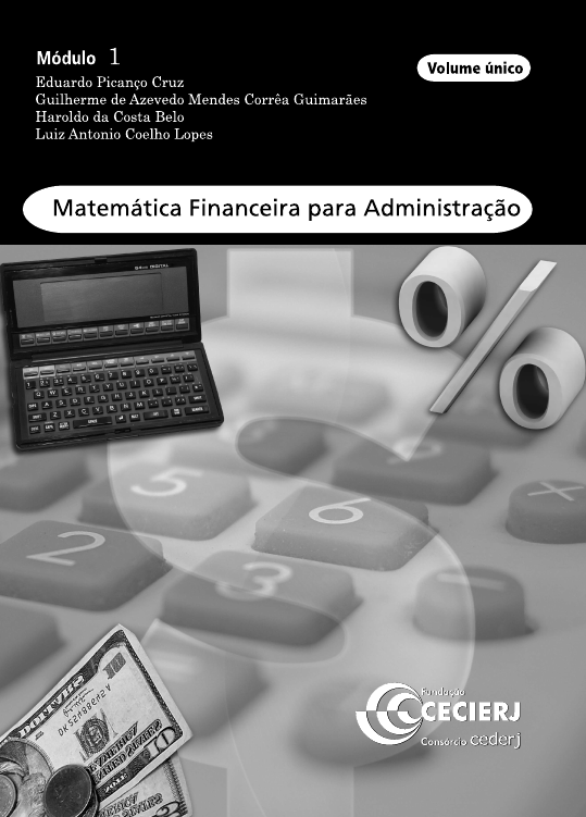 C E D E R J 9 A U LA 2 1 M Ó D U LO 3 Eduardo Picanço Cruz Guilherme de Azevedo Mendes Corrêa Guimarães Haroldo da Costa Belo Luiz Antonio Coelho Lopes Volume único - Módulo 1 Matemática Financeira para Administração Apoio: Copyright © 2010, Fundação Cecierj / Consórcio Cederj Nenhuma parte deste material poderá ser reproduzida, transmitida e gravada, por qualquer meio eletrônico, mecânico, por fotocópia e outros, sem a prévia autorização, por escrito, da Fundação. P585m Picanço, Eduardo. Matemática fi nanceira para administração: volume único / Eduardo Picanço Cruz, Guilherme de Azevedo Mendes Corrêa Guimarães, Haroldo da Costa Belo, Luiz Antonio Coelho Lopes - Rio de Janeiro: Fundação CECIERJ, 2010. 154p.; 19 x 26,5 cm. ISBN: 978-85-7648-671-8 1. Matemática fi nanceira. 2. Administração. 3. Porcentagem. 4. Juros. 5. Operações de descontos. 6. Sistemas de amortização. 7. Análise de investimentos. 8. Infl ação. I. Título. CDD: 650.01513 Material Didático Laboratório de Novas Tecnologias de Ensino LANTE ELABORAÇÃO DE CONTEÚDO Eduardo Picanço Cruz Guilherme de Azevedo Mendes Corrêa Guimarães Haroldo da Costa Belo Luiz Antonio Coelho Lopes COORDENAÇÃO Prof. Celso José da Costa Prof. Regina Célia Moreth Bragança COORDENAÇÃO LATEX Marcelo Freitas REVISÃO TIPOGRÁFICA Patrícia Paula PROGRAMAÇÃO VISUAL Roberta Souza S. de Mello ILUSTRAÇÃO Ronaldo d'Aguiar Silva CAPA Bianca Giacomelli PRODUÇÃO GRÁFICA Verônica Paranhos 2010.2 Fundação Cecierj / Consórcio Cederj Rua Visconde de Niterói, 1364 – Mangueira – Rio de Janeiro, RJ – CEP 20943-001 Tel.: (21) 2334-1569 Fax: (21) 2568-0725 Presidente Masako Oya Masuda Vice-presidente Mirian Crapez Coordenação do Curso de Administração UFRRJ - Silvestre Prado Referências Bibliográfi cas e catalogação na fonte, de acordo com as normas da ABNT e AACR2. Texto revisado segundo o novo Acordo Ortográfi co da Língua Portuguesa. Universidades Consorciadas Governo do Estado do Rio de Janeiro Secretário de Estado de Ciência e Tecnologia Governador Alexandre Cardoso Sérgio Cabral Filho UENF - UNIVERSIDADE ESTADUAL DO NORTE FLUMINENSE DARCY RIBEIRO Reitor: Almy Junior Cordeiro de Carvalho UERJ - UNIVERSIDADE DO ESTADO DO RIO DE JANEIRO Reitor: Ricardo Vieiralves UNIRIO - UNIVERSIDADE FEDERAL DO ESTADO DO RIO DE JANEIRO Reitora: Malvina Tania Tuttman UFRRJ - UNIVERSIDADE FEDERAL RURAL DO RIO DE JANEIRO Reitor: Ricardo Motta Miranda UFRJ - UNIVERSIDADE FEDERAL DO RIO DE JANEIRO Reitor: Aloísio Teixeira UFF - UNIVERSIDADE FEDERAL FLUMINENSE Reitor: Roberto de Souza Salles Matemática Financeira para Administração Volume único - Módulo 1 SUMÁRIO Aula 1 – Porcentagem _______________________________________________7 Eduardo Picanço Cruz / Guilherme de Azevedo Mendes Corrêa Guimarães / Haroldo da Costa Belo / Luiz Antonio Coelho Lopes Aula 2 – Juros Simples _____________________________________________ 19 Eduardo Picanço Cruz / Guilherme de Azevedo Mendes Corrêa Guimarães / Haroldo da Costa Belo / Luiz Antonio Coelho Lopes Aula 3 – Juros Compostos __________________________________________ 33 Eduardo Picanço Cruz / Guilherme de Azevedo Mendes Corrêa Guimarães / Haroldo da Costa Belo / Luiz Antonio Coelho Lopes Aula 4 – Estudos das Taxas _________________________________________ 49 Eduardo Picanço Cruz / Guilherme de Azevedo Mendes Corrêa Guimarães / Haroldo da Costa Belo / Luiz Antonio Coelho Lopes Aula 5 – Operações de Desconto na Capitalização Simples __________________ 63 Eduardo Picanço Cruz / Guilherme de Azevedo Mendes Corrêa Guimarães / Haroldo da Costa Belo / Luiz Antonio Coelho Lopes Aula 6 – Operações de Desconto na Capitalização Composta ________________ 77 Eduardo Picanço Cruz / Guilherme de Azevedo Mendes Corrêa Guimarães / Haroldo da Costa Belo / Luiz Antonio Coelho Lopes Aula 7 – Séries de Pagamentos (Anuidades ou Rendas Certas) _______________ 87 Eduardo Picanço Cruz / Guilherme de Azevedo Mendes Corrêa Guimarães / Haroldo da Costa Belo / Luiz Antonio Coelho Lopes Aula 8 – Sistemas de Amortização ___________________________________ 103 Eduardo Picanço Cruz / Guilherme de Azevedo Mendes Corrêa Guimarães / Haroldo da Costa Belo / Luiz Antonio Coelho Lopes Aula 9 – Anuidades Antecipadas, Diferidas e Perpétuas ___________________ 113 Eduardo Picanço Cruz / Guilherme de Azevedo Mendes Corrêa Guimarães / Haroldo da Costa Belo / Luiz Antonio Coelho Lopes Aula 10 – Análise de Investimentos __________________________________ 125 Eduardo Picanço Cruz / Guilherme de Azevedo Mendes Corrêa Guimarães / Haroldo da Costa Belo / Luiz Antonio Coelho Lopes Aula 11 – Infl ação ______________________________________________ 147 Eduardo Picanço Cruz / Guilherme de Azevedo Mendes Corrêa Guimarães / Haroldo da Costa Belo / Luiz Antonio Coelho Lopes � � � � � � � � Aula PORCENTAGEM 1 O b j e t i v o s 1 relembrar os conceitos de raza˜o centesimal, por- centual, unita´ria; 2 rever os conceitos envolvidos no ca´lculo da por- centagem; 3 entender e resolver os problemas propostos. � � � � � � � � Matema´tica Financeira | Porcentagem PORCENTAGEM INTRODUC¸A˜O Ao entrar em um shopping center, somos ”bombardeados”com informac¸o˜es do tipo: Ale´m disso, nos telejornais dia´rios tambe´m escutamos informac¸o˜es do tipo: • As mulheres constituem cerca de 53% da populac¸a˜o brasileira. • A alta dos prec¸os no meˆs de Janeiro foi de 2,5%. • O do´lar baixou no meˆs de Janeiro cerca de 1,5%. Essas expresso˜es envolvem uma raza˜o especial chamada POR- CENTAGEM, assunto que passaremos a estudar agora. Esse tema e´ usualmente encontrado nas questo˜es de concurso pu´blico brasileiro, pois envolve fo´rmulas de simples resoluc¸a˜o com ques- to˜es que, quando bem elaboradas, da˜o trabalho ao candidato. POR ISSO, SE ESFORCE NESTA ETAPA. RAZA˜O CENTESIMAL Definic¸a˜o 1.1 