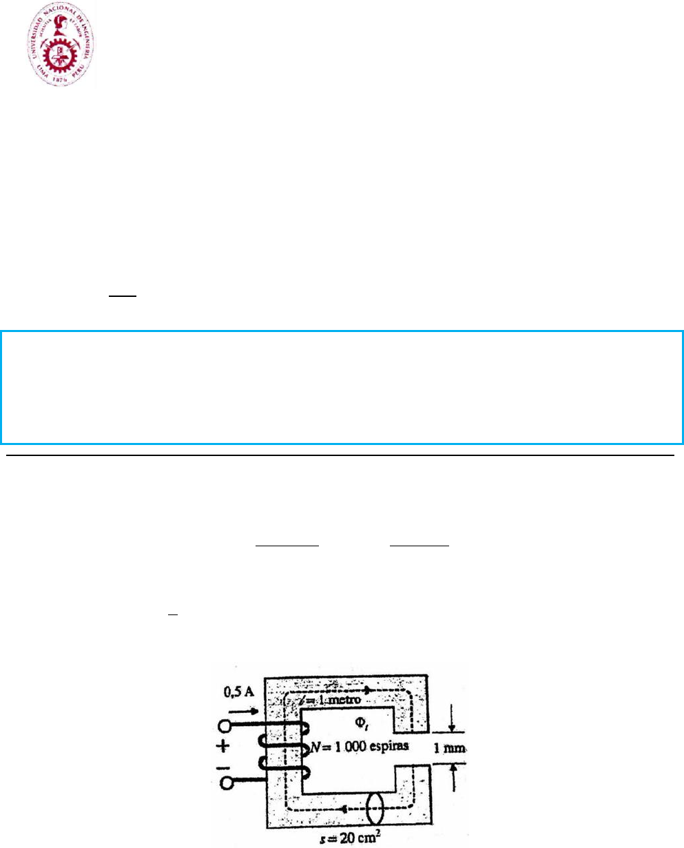 UNIVERSIDAD NACIONAL DE INGENIERÍA Periodo: 20202 FACULTAD DE INGENIERÍA MECÁNICA Fecha: 27/11/2020 CURSO: MÁQUINAS ELÉCTRICAS ML-214 PRIMERA PRÁCTICA CALIFICADA - ML214 B Profesor: Edgard Guadalupe Sección: B Duración: 1:50 minutos Fecha: Viernes, 27 de noviembre 2020 Hora: 10-12 Indicaciones: o Con elementos de consulta. o Se penalizará a aquellos alumnos que copien la solución de otro compañero. o Se penalizará la falta de orden. o Se aceptará entrega de solución solo en archivo pdf y con tamaño menor a 1MB. o Sea : los tres últimos dígitos del código del alumno. COMISIÓN ACADÉMICA DE LAS ESCUELAS FIM 1. Los Exámenes Finales y Sustitutorios tienen una duración de 1 hora 50 minutos. 2. Se programa con 25 minutos adicionales, después de terminado el tiempo de duración del examen, para que el estudiante envíe sus archivos con las soluciones al Aula Virtual (En ese tiempo el alumno no tiene que resolver el examen, es solo para enviar sus archivos). Problema N° 1 (4 puntos) La curva de imanación del núcleo ferromagnético mostrado en la figura tiene la siguiente expresión: [ ] [ ] La longitud media del núcleo es 1 m y la bobina tiene 1000 espiras. Considere que el área para el entrehierro es 5% mayor que el área efectiva del núcleo. Determine a) el flujo magnético que fluye por el núcleo; b) si se incrementa la longitud del entrehierro a 2. mm manteniendo la densidad del flujo magnético en el entrehierro, calcular la nueva corriente de excitación. Continúa… UNIVERSIDAD NACIONAL DE INGENIERÍA Periodo: 20202 FACULTAD DE INGENIERÍA MECÁNICA Fecha: 27/11/2020 CURSO: MÁQUINAS ELÉCTRICAS ML-214 Problema 2 (4 puntos) Con conductor de cobre de sección circular, se forma una bobina y se instala en la columna central del núcleo magnético de la figura; para la bobina el factor de ocupación k del cobre es 0.8 y su resistividad 1.73x10-8 Ω.m. El núcleo está formado por 36 láminas de material H23, de 0.5 mm de espesor. El factor de apilamiento es 0.9. Cuando la bobina se alimenta con 100 VDC, la densidad de flujo magnético en el entrehierro derecho es 0.9 T. Despreciando el flujo de dispersión y el efecto de bordes en los entrehierros, calcular: a) La intensidad de campo magnético en el ramal C. b) La diferencia de potencial magnético entre los puntos “X” e “Y” del circuito magnético. c) La densidad de campo magnético en el ramal A. d) La intensidad de campo magnético en ramal A. e) El volumen del cobre y la longitud media de la espira de la bobina. f) El número de espiras de la bobina. g) La corriente que circula por la bobina. Continúa… UNIVERSIDAD NACIONAL DE INGENIERÍA Periodo: 20202 FACULTAD DE INGENIERÍA MECÁNICA Fecha: 27/11/2020 CURSO: MÁQUINAS ELÉCTRICAS ML-214 Problema 3 (4 puntos) En la figura se muestra un núcleo magnético. El espesor del material magnético es de 10 cm. ¿Cuál debe ser la corriente en una bobina de 100 vueltas para establecer un flujo de 6.5 mWb en la rama c? Utilice la curva de magnetización de la figura. Continúa… UNIVERSIDAD NACIONAL DE INGENIERÍA Periodo: 20202 FACULTAD DE INGENIERÍA MECÁNICA Fecha: 27/11/2020 CURSO: MÁQUINAS ELÉCTRICAS ML-214 Problema 4 (4 puntos) El circuito magnético está formado con acero al silicio, para el que la relación B-H es ( ). Cada una de las ramas exteriores tiene 500 vueltas. Se requiere establecer un flujo de 3.6 mWb en el entrehierro aplicando corrientes iguales en ambos devanados. ¿Cuál es la corriente en cada devanado? Considere el efecto de bordes en el entrehierro. Todas las dimensiones estan en centímetros. El profesor