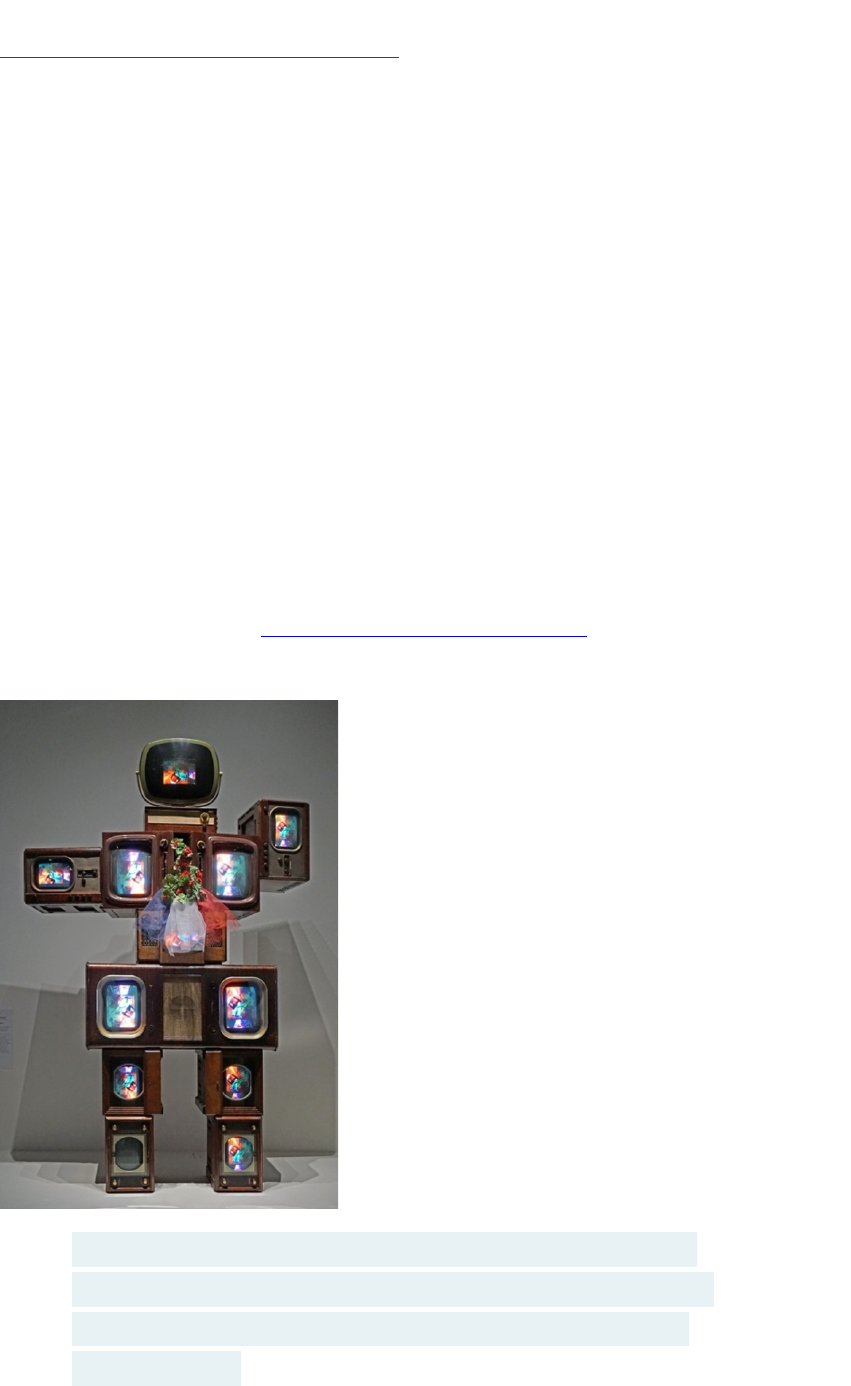 Definições de arte ao longo da história Base de dados Para o filósofo grego Aristóteles era uma imitação da realidade. Esse conceito, mais tarde, foi duramente refutado por diversas correntes artísticas que compreendiam que a arte não era somente baseada na imitação da realidade e sem criação. Durante a idade da realidade média havia duas vertentes sobre ela: - As artes manuais ( ou mecânicas ) -As artes liberais ( ou intelectuais ) A primeira era considerada inferior a segunda, pois a arte somente era criada a partir do intelecto. Se pensarmos nessa questão hoje em dia notamos que ela esta mais desenvolvida, no entanto, o trabalho manual ainda sub julgado pelo trabalho intelectual. Como exemplos temos o artesão, o artista, os quais compartilham um trabalho um trabalho mental, ao mesmo tempo que participam da criação artística. Entretanto o primeiro, é em grande parte considerado um indivíduo que produz uma arte menor. Link do vídeo explicativo: https://youtu.be/RdNvpq4pL3M Questões 1) Descreva a imagem. O que mais chama atenção nelas? 2) Que objetos e materiais você identifica nesta produção? 3) Em sua opinião, são objetos industriais ou produzidos manualmente? 4) De que maneira ela esta apresentada no espaço onde se encontra? Que papel ela desempenha? 5) Você acha que as tecnologias podem ajudar os artistas em suas produções? Como? 6) Em sua opinião, um trabalho com vídeo pode ser uma obra de arte ? Por que ? 7) Para você, que diferenças há entre arte feita com tecnologia e as formas tradicionais e as formas, como pintura, escultura e desenho?