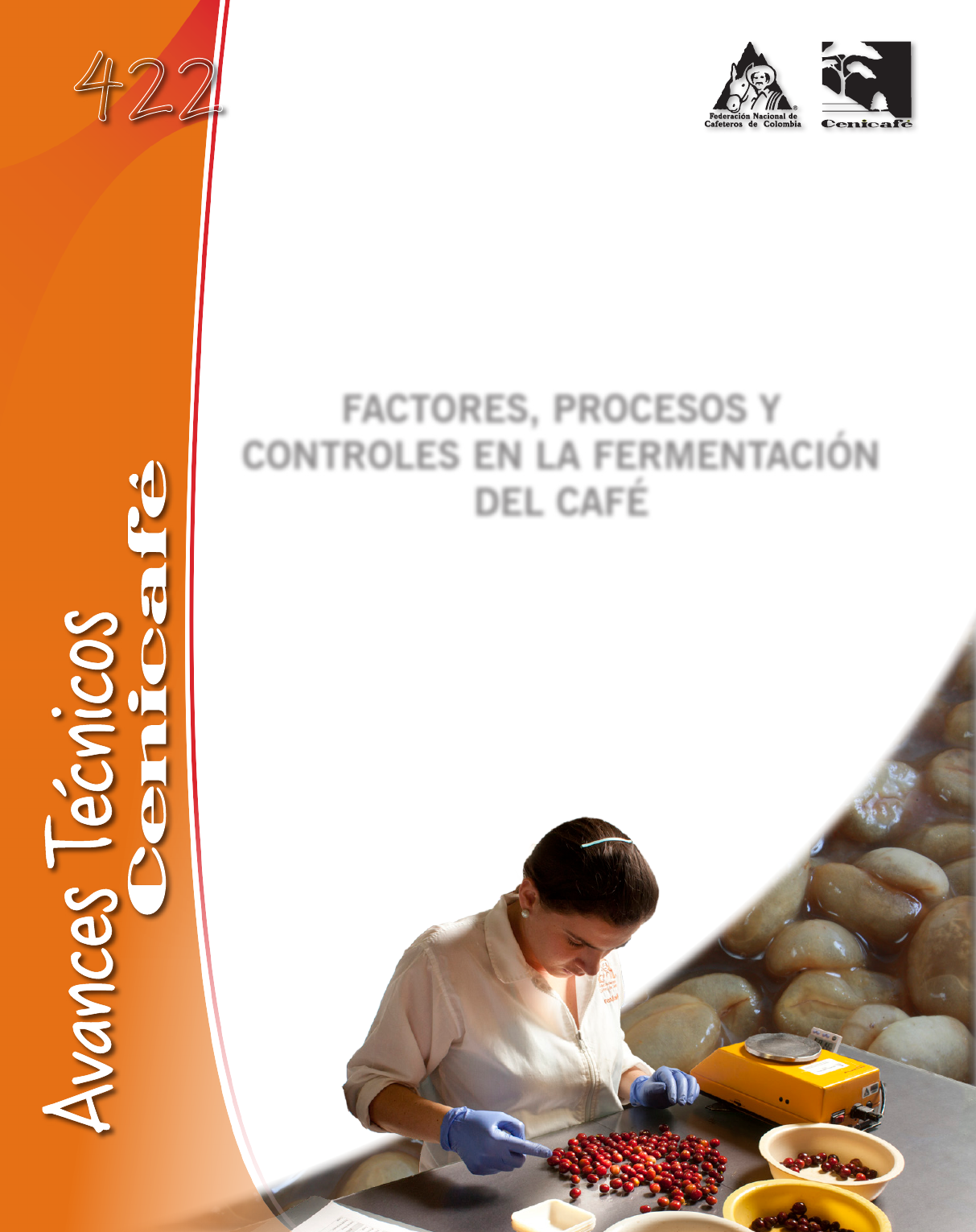 422 Agosto de 2012 Gerencia Técnica / Programa de Investigación CientíficaFondo Nacional del Café En la fermentación del café ocurren varios procesos, básicamente las levaduras y las bacterias del mucílago mediante sus enzimas naturales oxidan parcialmente los azúcares y producen energía (ATP), etanol, ácido láctico, ácido acético y dióxido de carbono. Además, se obtienen otros alcoholes como propanol, butanol, ácidos como el succínico, fórmico, butírico y sustancias olorosas como aldehídos, cetonas y ésteres. También se degradan los lípidos del mucílago de café y cambian el color, el olor, la densidad, la acidez, el pH, los sólidos solubles, la temperatura y la composición química y microbiana de este sustrato. FACTORES, PROCESOS Y CONTROLES EN LA FERMENTACIÓN DEL CAFÉ Edición: Sandra Milena Marín López Fotografías: Gonzalo Hoyos Salazar Kevin Hincapie Velásquez Diagramación: María del Rosario Rodríguez L. Imprenta: ISSN - 0120 - 0178 Manizales, Caldas, Colombia Tel. (6) 8506550 Fax. (6) 8504723 A.A. 2427 Manizales www.cenicafe.org Los trabajos suscritos por el personal técnico del Centro Nacional de Investigaciones de Café son parte de las investigaciones realizadas por la Federación Nacional de Cafeteros de Colombia. Sin embargo, tanto en este caso como en el de personas no pertenecientes a este Centro, las ideas emitidas por los autores son de su exclusiva responsabilidad y no expresan necesariamente las opiniones de la Entidad. Ciencia, tecnología e innovación para la caficultura colombiana Autores Gloria Inés Puerta Quintero Investigador Científico III. Disciplina Calidad. Centro Nacional de Investigaciones de Café, Cenicafé. Manizales, Caldas, Colombia. Durante el beneficio del café, los granos despulpados se mantienen hasta su lavado, inmersos en el mucílago fermentado, que contiene los diversos productos de la fermentación. Mediante la práctica de procesos de fermentación, lavado y secado controlados, se obtienen bebidas de café con aromas y sabores de buena calidad y especiales. Por el contrario, cuando se realizan mezclas de sustratos, se sobrepasa el tiempo de fermentación, no se controlan los factores y no se conocen los cambios que ocurren en este proceso, se pueden generar defectos en la calidad, como el grano manchado y vinagre, y los sabores agrio y fermento en la bebida. En este Avance Técnico se ilustran varios aspectos de los procesos microbiológicos y químicos de la fermentación del café, en relación con factores de temperatura ambiente, hig iene, t iempo y sistema de fermentación y se dan recomendaciones y buenas prácticas para el control de este proceso. Factores de la Fermentación Factores de la fermentación. En par t icular, la velocidad y los compuestos formados en la fermentación del café dependen de la calidad del sustrato, madurez y sanidad del fruto que influyen en la composición química y microbiológica de los granos despulpados; de factores ambientales como la temperatura externa y la higiene de las instalaciones, ambientes y equipos; del tiempo, y del sistema mismo de fermentación. Sistemas de fermentación. Pueden establecerse diferentes sistemas de fermentación del café según la dilución, aireación, agitación, aislamiento o suministro de sustrato. En los sistemas de sustrato sólido no se adiciona agua al café despulpado, en las fermentaciones sumergidas se agrega agua; a su vez, estos sistemas pueden ser abiertos o cerrados, continuos o discontinuos, estáticos o agitados, o desarrollarse a una temperatura o pH constantes, entre otros. En Colombia, la fermentación del café se realiza en sistemas sin agua o sumergidos y en tanques abiertos de diversos materiales. El sustrato. La materia prima del proceso de fermentación está compuesta por los granos de café despulpados que contienen el mucílago que se fermenta. Los granos de café en baba contienen cantidades variables de mucílago y su calidad depende de la frescura y los controles en el beneficio y despulpado; la presencia de pulpa y de residuos de insecticidas y otras sustancias en el café en baba, influyen en los productos de fermentación, y por consiguiente, en los sabores y aromas del café. La cantidad de mucílago en los frutos de café depende del estado de maduración y presenta variaciones de cerca del 30% para cada grado de madurez, debido a la humedad y tamaño de los frutos, así, en promedio el fruto fresco verde contiene 1,3% de mucílago, el pintón 8,4%, el maduro entre 1% y 27%, el sobremaduro de 1% a 23%, y en el fruto seco no hay mucílago. En promedio, frutos de café maduro de la especie Arábica contienen 44% de pulpa, 45% de café pergamino y cerca de 11% de mucílago (Figura 1). Igualmente, los granos de café maduros despulpados contienen mayor cant idad de mucí lago (18,8%), los pintones 14,9% y los sobremaduros 17,7% (Figura 2). 2 Avances Tecnicos De otra parte, no hay diferencias entre las cantidades del mucílago de los frutos de café y granos en baba de las variedades Castillo®, Caturra y Tabi. Sin embargo, la cantidad de pulpa en el fruto de café Caturra es significativamente mayor, por consiguiente, también para esta variedad es menor el rendimiento en peso del grano pergamino con respecto al peso del fruto, así, 1,0 kg de frutos de variedad Caturra maduro contienen 430 g de grano pergamino sin mucílago, Tabi 450 g y Castillo 460 g. Microbiología de la fermentación del café. Los microorganismos del café en baba provienen de diferentes fuentes como suelo, aire, agua, vegetales, personas, animales, insectos, equipos, instalaciones y utensilios de beneficio. En el café despulpado se encuentran primordialmente levaduras y bacterias lácticas, pero también otras bacterias y algunos hongos. El recuento y la clase de microorganismos presentes en un momento dado de la fermentación del café dependen de la población inicial en los frutos y granos despulpados, de las condiciones a