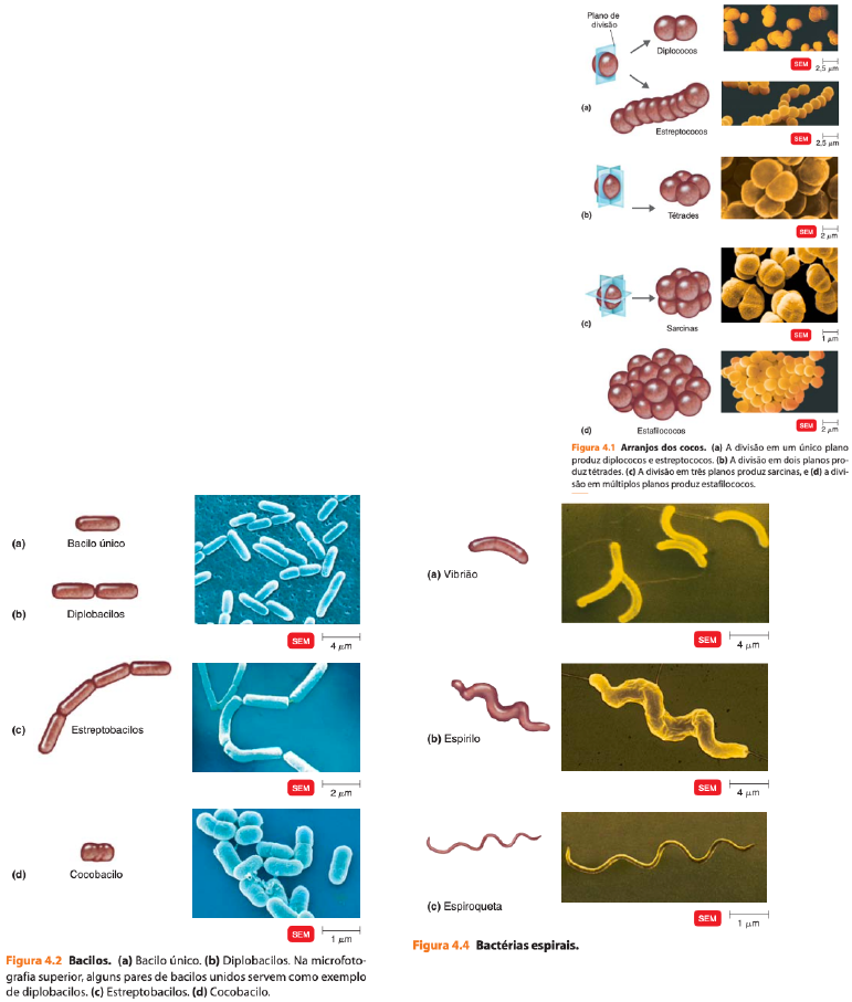 Daniela Fernandes de Souza – MedVR 73 1 Morfologia bacteriana Aula – 21/10/21 Professor Renato 1. Sistemas de classificação bacteriano a. Bactéria não é mais representado pelo reino monera b. Baseado na sequência de nucleotídeos do RNAr) 16S e 18S i. 3 domínios – bactéria, archaea e eukarya 2. Morfologia e estrutura bacteriana a. Células procariontes, sem membrana nuclear e organelas membranosas b. Presença de parede celular, várias estruturas anexas: casulas, fimbrias, flagelos e outros. c. As bactérias têm tamanhos e formas diversas i. Forma 1. Diplococo 2. Estreptococo 3. Tétrade 4. Sarcina 5. estafilococo ii. Arranjo 1. Bacilo único 2. Diplobacilos 3. Estreptobacilos 4. Cocobacilos 5. Vibrião 6. Espirilo 7. Espiroqueta d. Substâncias poliméricas extracelulares i. Glicocálice 1. Capsula a. Estrutura mais densa composta por polissacarídeos, polipeptídios ou ambos b. Funções i. Proteção ii. Auxiliar na adesão a superfícies iii. Reserva de carbono iv. Evita a dessecação c. Fator de virulência Daniela Fernandes de Souza – MedVR 73 2 i. Ex.: 1. Streptococcus pneumoniae 2. Klebsiella pneumoniae 3. Streptococcus mutans 4. Espécies de Estafilococos coagulase – negativos 2. Camada limosa a. Esta menos firmemente ligada à parede celular e é geralmente mais fina 3. Flagelo a. Algumas células bacterianas possuem flagelos, que são longos apêndices não flexíveis, helicoidal b. Locomoção i. Propulsão da bactéria c. Função i. Movimento que envolve sistemas de sinalização celular (receptores) 1. Quimiotaxia 2. Fototaxia a. luz 3. Aerotaxia a. Oxigênio 4. Magnetotaxia ii. São representadas por negativo e positivo 1. Negativo quando foge da sinalização e positivo quando vai de encontro d. Formação dos filamentos (flagelina) i. Ag da flagelina é o H ii. Não cria resposta de memória, elas têm a possibilidade de sorotipar e mudar a composição, não a reconhecendo mais. e. A ptn flagelar ag H é útil para diferenciar entre as sorotipagem, ou variações dentro de uma espécie de bactérias gram- negativas f. Tem diferentes arranjos 4. Fímbrias e Pilli a. São apêndices não flagelares de estruturas mais retas e mais finas que os flagelos b. Fimbrias = ajuda na adesão celular c. Pilli = função de promover a recombinação genética de uma bactéria para outra i. Transferência de material genético 5. Parede celular a. Presente em quase todas as bactérias, proporciona rigidez estrutural, dá forma a célula e constitui barreira física contra ambiente externo b. O componente rígido da parede celular é o peptideoglicano (mureina) i. São os que dão o resultado com a coloração de Gram c. Constituída de carboidratos alternados de NAG e NAM d. Ligados por peptídeo formam camadas e. “vi lulu, ali fumando” i. Violeta 1. Torna as células bacterianas todas roxas 2. Penetra no citoplasma de ambos os tipos celulares Daniela Fernandes de Souza – MedVR 73 3 ii. Lugol – iodo 1. Substância mordente, em sua presença, o corante violeta fica cristalizado, se fixando e aderindo a parede bacteriana (célula continua corada) iii. Álcool 1. Remove a coloração das Gram (-), as que tem membrana externa a. Remove a camada fosfolipidica, que é a membrana externa b. Membrana externa é diferente de parede celular 2. Desidrata o peptideoglicano (nas +) tornando-a mais impermeável ao cristal violeta-lugol iv. Fucsina 1. Contribui para ficar mais corada 2. Gram (+) ficam rosadas/avermelhadas 3. Gram (-) ficam mais roxas f. Gram (+) i. Parede com quase 80 nm de espessura ii. Várias camadas de peptideoglicano iii. Até 40 camadas de peptideoglicano iv. Ácidos teicóico e lipoproteico 1. Parede celular – acido teicóico 2. Membrana plasmática – lipoproteico a. Importantes antígenos de superfície (reconhecidos – resposta inata) g. Gram (-) i. É mais fina que a gram-positiva ii. Mais complexa iii. Contém membrana externa, espaço periplasmático e peptideoglicano 1. Pequena quantidade de peptideoglicano a. Mais suscetível ao rompimento mecânico iv. não possuem acido teicóico v. Membrana externa 1. Semelhante a membrana citoplasmática a. Bicamada fosfolipidica 2. Possui canais especiais a. Porinas i. Favorece a permeabilidade 3. Permeabilidade varia de uma espécie para outra 4. Sua carga negativa influencia na evasão da fagocitose e nas ações do complemento 5. Fornece barreira contra a ação de detergentes, metais pesados, sais biliares, alguns corantes, antibióticos e enzimas digestivas a. A membrana externa não fornece uma barreira para todas as substâncias do ambiente, garantindo o metabolismo celular vi. Lipoproteínas 1. Formam ligações cruzadas com a membrana externa e as camadas de peptideoglicano 2. Tem função de estabilizar a membrana externa e ancorá-lo ao peptideoglicano 3. Localizadas no periplasma Daniela Fernandes de Souza – MedVR 73 4 4. Contém alta concentração de enzimas de degradação e ptn de transporte vii. Lipopolissacarideos (LPS) 1. Molécula grande e complexa 2. Endotoxina a. Lipídeo A – parte tóxica i. Quando a bactéria morre, libera o lipídeo A ii. Associadas a infecções pelas bactérias, como febre, dilatação dos vasos sanguíneos, choque e formação de coágulos sanguíneos b. Polissacarídeo – antígeno O i. Diferencia espécies gram (-) ii. Papel compatível com o acido teicóico das gram (+) 3. Ativa linfócitos B 4. Induz macrófago a liberar IL-1 entre outras 5. Febre – choque séptico h. As paredes celulares das bactérias álcool-ácido resistentes, como o Mycobacterium, consistem em até 60% de ácido micólico, um lipídeo céreo, enquanto restante é composto de peptideoglicano i. O Mycoplasma não possui parede celular j. Coloração ara BAAR – micobactérias Daniela Fernandes de Souza – MedVR 73 5 i. Fucsina – tudo vermelho 1. É necessário aquecer a lâmina para que o corante adentre e core. ii. Álcool + acido clorídrico 1. Não permite que o co