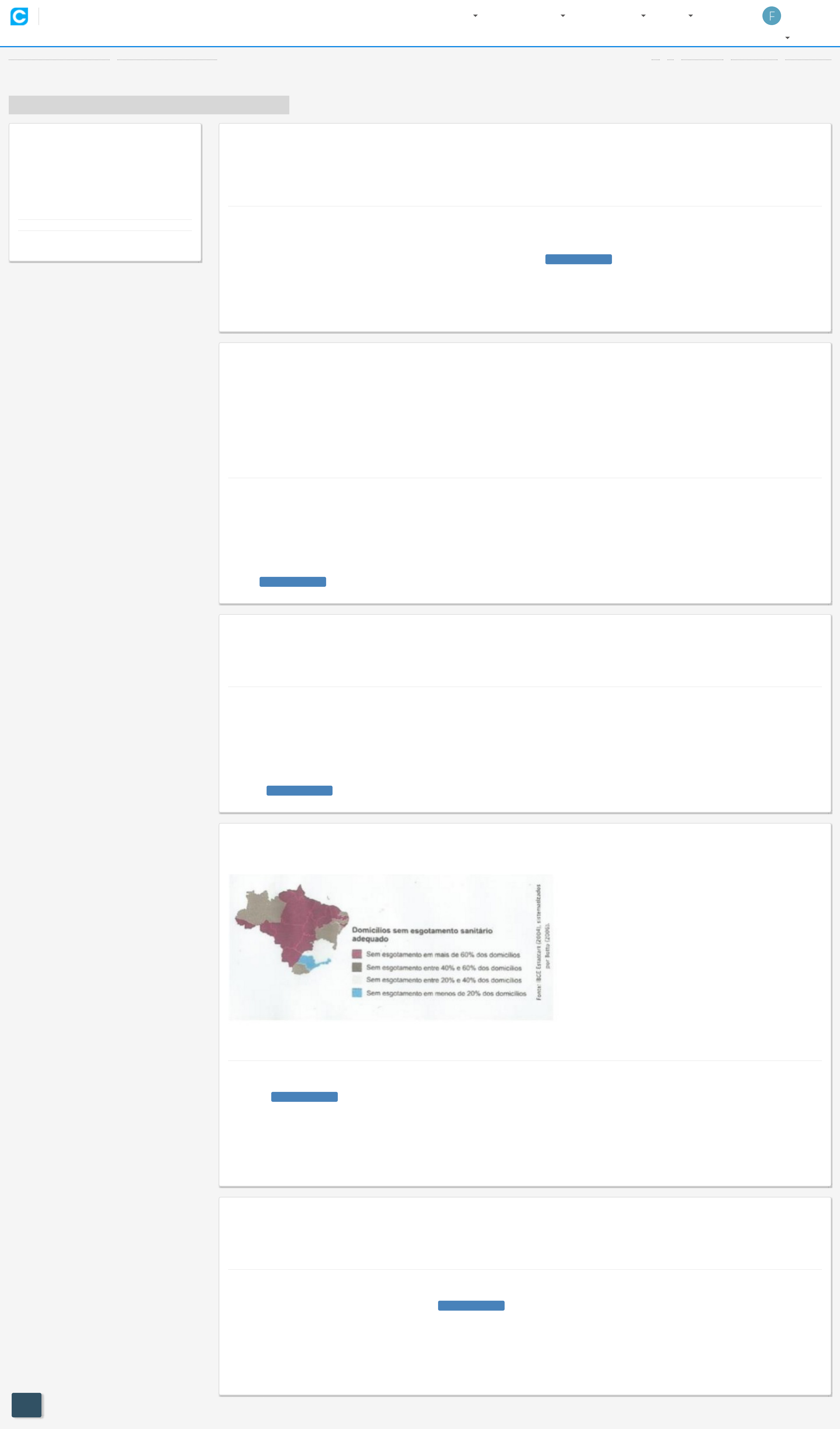 Saltar para o conteúdo [Alt + 1] Saltar para Navegação [Alt + 2] +A -a Mapa do site Alto Contraste Acessibilidade Portal Digital do Aluno Início ! Engenharia Civil - 8º Semestre ! Gestão de Saneamento Ambiental ! Av1 - Gestão de Saneamento Ambiental Av1 - Gestão de Saneamento Ambiental Meus Cursos Serviços Online Apoio ao Estudo Oportunidades Ajuda " # FILIPE $ Sair Informações Adicionais Período: 02/08/2021 00:00 à 15/11/2021 23:59 Situação: Cadastrado Pontuação: 750 Protocolo: 633105806 Avaliar Material a) b) c) d) e) 1) a) b) c) d) e) 2) a) b) c) d) e) 3) a) b) c) d) e) 4) a) b) c) d) e) 5) Texto base: De acordo com a Fundação Nacional da Saúde (FUNASA), um projeto de engenharia deve apresentar os elementos e informações necessárias e suficientes para que a obra seja executada com segurança, funcionalidade, adequação, facilidade de construção, conservação e operação, durabilidade dos componentes e, principalmente, a possibilidade do emprego de mão de obra, material, matérias-primas e tecnologias existentes no local. Enunciado: Baseado nesta explicação, pode-se deduzir que um projeto de engenharia procura incentivar: Alternativas: A abertura de mercado com o estrangeiro. Permanência de mão de obra da própria região onde se pretende implantar o projeto. Alternativa assinalada Maior integração entre trabalhadores de diversas cidades e estados. Procura de empréstimos para viabilizar o projeto. Promover contato com o poder federal, para acelerar a consecução do projeto. Texto base: Um projeto de esgotamento sanitário considera uma série de parâmetros, desde um estudo de concepção até um projeto básico, para finalmente constituir um projeto executivo, que servirá de guia para sua realização efetiva. Observe as seguintes considerações sobre o local onde se pretende instalar o projeto: I. Infraestrutura. II. Descarte e substituição completa de todo o sistema sanitário anterior. III. Conhecimento do índice de doenças hídricas na população. Enunciado: São parâmetros a considerar num projeto de esgotamento sanitário: Alternativas: Apenas I. Apenas III. Apenas II. I e II. I e III. Alternativa assinalada Texto base: Texto-base: Uma licença ambiental pode ser entendida como um procedimento administrativo expedido por órgão ambiental público competente, que autoriza e monitora a instalação de um projeto que faça uso de recursos naturais e que possa provocar degradação ambiental. Enunciado: Entre os órgãos públicos que podem fornecer uma licença ambiental, consta: Alternativas: ANATEL. CETESB. FUNAI. INCRA. IBAMA. Alternativa assinalada Texto base: Texto-base: A figura mostra as condições de esgotamento sanitário no território nacional, levando-se em conta suas regiões politicamente delimitadas, de acordo com uma pesquisa realizada pelo IBGE no ano de 2000. Enunciado: Com base na figura, vê-se que a região mais privilegiada em termos de recursos sanitários é a região: Alternativas: Sudeste. Alternativa assinalada Nordeste. Centro-Oeste. Norte. Sul. Texto base: Texto-base: Entre os componentes que constam em um Memorial de Cálculo, destacam-se aqueles que podem ser dimensionados analiticamente, além de justificados em uma Planilha Orçamentária. Enunciado: Dentre os parâmetros que podem ser aquilatados numericamente e tomar parte neste memorial, podemos citar: Alternativas: Dimensão dos materiais, como tubulações e acessórios. Alternativa assinalada Indicações na Bolsa de Valores. Renda per capita do município. Produto Interno Bruto da região. Faixa etária média da população. ! https://colaboraread.com.br/aluno/avaliacao/index/2637704204?atividadeDisciplinaId=11957978 https://colaboraread.com.br/aluno/avaliacao/index/2637704204?atividadeDisciplinaId=11957978 https://colaboraread.com.br/mapadosite https://colaboraread.com.br/aluno/avaliacao/index/2637704204?atividadeDisciplinaId=11957978# https://colaboraread.com.br/acessibilidade https://colaboraread.com.br/index/index