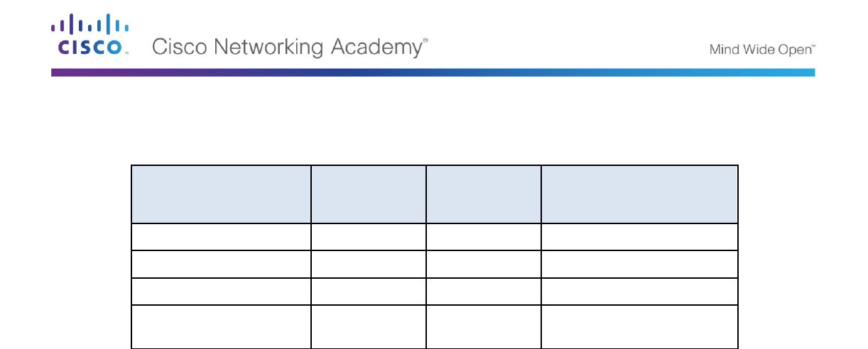 © aa Cisco e/ou afiliadas. Todos os direitos reservados. Este documento é informação pública da Cisco. Página 1 de 4 Packet Tracer - Criar um Cibermundo Tabela de Endereçamento Dispositivo Endereço IP Máscara de Sub-rede Local Servidor FTP/Web 10.44.1.254 255.255.255.0 Metropolis Bank HQ Servidor de Email/DNS 10.44.1.253 255.255.255.0 Metropolis Bank HQ Servidor NTP/AAA 10.44.1.252 255.255.255.0 Metropolis Bank HQ Servidor de Backup de Ficheiros 10.44.2.254 255.255.255.0 Gotham Healthcare Branch Objetivos Parte 1: Configure o Servidor FTP Parte 2: Configure o Servidor web Parte 3: Configure o Servidor de Email Parte 4: Configure o Servidor DNS Parte 5: Configure o Servidor NTP Parte 6: Configure o Servidor AAA Contexto/cenário Nesta atividade serão configurados os componentes básicos do servidor. A configuração de endereçamento IP já se encontra completada. A folha de Serviços vai ser usada nos múltiplos servidores para implementar os serviços FTP, Web, Email, DNS, NTP e AAA. Parte 1: Configure o Servidor FTP Passo 1: Ative o serviço FTP. a. Clique em Metropolis Bank HQ e depois clique no servidor FTP/Web. b. Clique na folha Services e depois clique em FTP. c. Ative o serviço FTP usando o botão rádio no topo da folha. Passo 2: Permitir acesso do utilizador ao servidor FTP. a. Criar as seguintes contas de utilizador bob, mary, e mike, todos com a mesma palavra-chave cisco123. b. Cada conta de utilizador deve ter todas as permissões (RWDNL) ativas, no servidor FTP/Web. Parte 2: Configure o Servidor Web Passo 1: Ative o Serviço HTTP. a. Dentro de Metropolis Bank HQ clique no servidor FTP/Web. Packet Tracer - Criar um Cibermundo © aa Cisco e/ou afiliadas. Todos os direitos reservados. Este documento é informação pública da Cisco. Página 2 de 4 b. Clique na folha Services e depois clique em HTTP. c. Ative ambos os serviços HTTP e HTTPS usando o botão rádio no topo da folha. Passo 2: Verifique o Serviço HTTP. a. Clique no PC chamado Sally, e clique na folha Desktop. b. Clique em Web Browser. Aceda ao endereço www.cisco.corp. c. No navegador web, aceda ao IP 10.44.1.254. Por que motivo é possível aceder à página através do endereço IP e não através do FQDN? ____________________________________________________________________________________ ____________________________________________________________________________________ Parte 3: Configure o Servidor DNS. Passo 1: Ative o serviço DNS. a. Dentro de Metropolis Bank HQ clique no servidor EMAIL/DNS. b. Clique na folha Services e depois clique em DNS. c. Ative o serviço DNS usando o botão rádio no topo da folha. Passo 2: Crie um registo DNS do tipo A. a. Crie um registo do tipo A email.cisco.corp com o endereço IP 10.44.1.253. Clique em Add para adicionar este registo. b. Crie um registo do tipo A www.cisco.corp com o endereço IP 10.44.1.254. Clique em Add para adicionar este registo. Passo 3: Verifique o Serviço DNS. a. Clique no PC chamado Sally, e na folha Desktop. b. Clique em Web Browser. Aceda ao endereço www.cisco.corp. Por que motivo é possível aceder à página através do nome FQDN. ____________________________________________________________________________________ ____________________________________________________________________________________ Parte 4: Configure o Servidor de Email Passo 1: Ative os serviços de Email. a. Em Metropolis Bank HQ clique no servidor EMAIL/DNS. b. Clique na folha Services e depois clique em EMAIL. c. Ative ambos os serviços SMTP e POP3 usando o botão rádio no topo da folha. Passo 2: Crie contas de Email para os utilizadores. a. Crie o domínio cisco.corp. Packet Tracer - Criar um Cibermundo © aa Cisco e/ou afiliadas. Todos os direitos reservados. Este documento é informação pública da Cisco. Página 3 de 4 b. Crie as seguintes contas de utilizador phil, sally, bob, dave, mary, tim and mike, todas com a mesma palavra-chave cisco123. Passo 3: Configure as contas de Email nos PCs dos utilizadores. a. Clique no PC chamado Sally e clique na folha Desktop. b. Clique em Email e introduza a seguinte informação: Name: Sally Email Address: sally@cisco.corp Incoming & Outgoing Mail Server(s): email.cisco.corp Username: sally Password: cisco123 c. Repita o Passo 3b no PC chamado Bob substituindo o nome sally por bob. Por que motivo o serviço de Email requer a ativação de ambos os serviços SMTP e POP3? ____________________________________________________________________________________ ____________________________________________________________________________________ Parte 5: Configure o servidor NTP. Passo 1: Ative o Serviço NTP. a. Em Metropolis Bank HQ, clique no servidor NTP/AAA. b. Clique na folha Services e depois clique em NTP. c. Ative o serviço NTP usando o botão rádio no topo da folha. Passo 2: Proteja o Serviço NTP. a. Ative a autenticação NTP usando o botão radio. b. Configure Key 1 com a palavra-chave cisco123. Parte 6: Configure o Servidor AAA Passo 1: Ative o Serviço AAA. a. Dentro de Metropolis Bank HQ, clique no servidor NTP/AAA. b. Clique na folha Services e depois clique em AAA. c. Ative o serviço AAA usando o botão rádio no topo da folha. Passo 2: Complete a configuração de rede no serviçoa AAA. a. Configure o Client Name como HQ_Router e o Client IP com 10.44.1.1 com a palavra-chave cisco123. Clique em Add para gravar a configuração. b. Configure a conta de utilizador AAA admin com a palavra-chave cisco123. Clique em Add para gravar a configuração. Packet Tracer - Criar um Cibermundo © aa Cisco e/ou afiliadas. Todos os direitos reservados. Este documento é informação pública da Cisco. Página 4 de 4 Rúbrica de pontuação sugerida Secção da Atividade Localização da Questão Pontos Possíveis Pontos Ganhos Configure o Servidor Web Passo 2 2 Parte 3: Configure o Servidor DNS Passo 3 2 Parte 4: Configure o Servidor de Email Passo 3 2 Perguntas 6 Pontuação do Packet Tracer 94 Pontuação Total 100