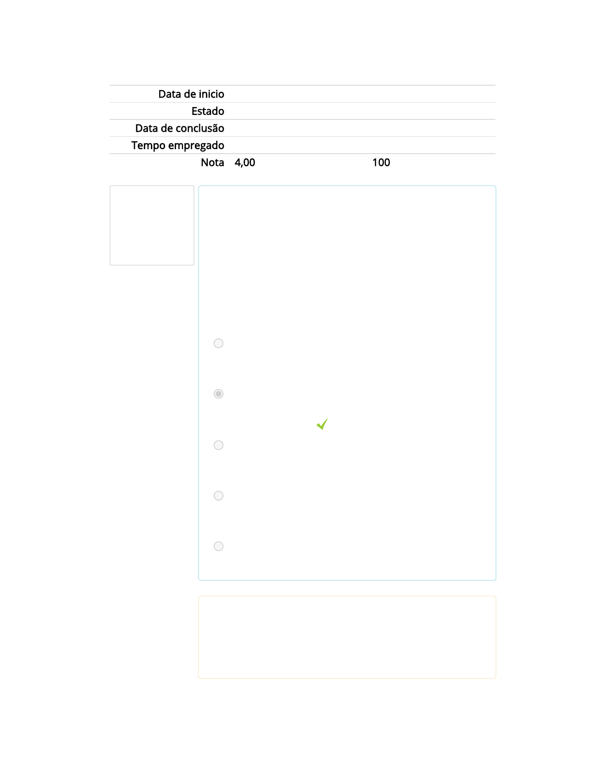 / Questão 1 Correto Atingiu 1,00 de 1,00 Análise de Investimentos e Engenharia Econômica ► AVALIAÇÃO ► ATIVIDADE DO ESTUDO DE CASO Data de inicio quarta, 4 Nov 2020, 20:10 Estado Finalizada Data de conclusão quarta, 4 Nov 2020, 20:56 Tempo empregado 45 minutos 36 segundos Nota 4,00 de um máximo de 4,00(100%) Considere um cenário otimista em que, mantendo-se os custos iniciais e o custo do capital constantes, os �uxos de caixa líquidos uniformes dos dois projetos analisados no estudo de caso tenham uma elevação de 10%. Neste caso, qual dos projetos seria selecionado? Assinale a alternativa correta. Escolha uma: a. O projeto Beta seria selecionado, pois VPL de Beta (R$5.599.837,18) é maior que VPL de Alfa (R$4.811.124,78). b. O Projeto Alfa seria selecionado, pois a AE de Alfa (R$ 1.242.475,37) é maior que a AE de Beta (R$ 1.071.945,04). c. O projeto Alfa seria selecionado, pois a TIR de Alfa (32,94% a.a) é maior que a TIR de Beta (32,50% a.a). d. O Projeto Beta seria selecionado, pois a AE de Beta (R$ 1.352.500,25) é maior que a AE de Alfa (R$ 1.150.362,18). e. Nenhuma das alternativas anteriores está correta. Sua resposta está correta. A resposta correta é: O Projeto Alfa seria selecionado, pois a AE de Alfa (R$ 1.242.475,37) é maior que a AE de Beta (R$ 1.071.945,04).. http://moodle.universoead.com.br/course/view.php?id=12 http://moodle.universoead.com.br/mod/quiz/view.php?id=1199 http://moodle.universoead.com.br/mod/resource/view.php?id=1298 / Questão 2 Correto Atingiu 1,00 de 1,00 Ao lidar com alternativas de investimento mutuamente exclusivas e com horizontes de tempo diferentes, considerando uma determinada restrição de capital, como a análise e a escolha do melhor investimento podem ser feitas? Assinale a alternativa correta. Escolha uma: a. A análise e a comparação direta podem ser feitam apenas com o uso da Taxa Interna de Retorno (TIR). b. A comparação direta entre projetos de investimento com horizontes de tempo diferentes deve ser realizada considerando o tempo de retorno do investimento pelo Payback Descontado. c. A Anuidade Uniforme Equivalente (AE) é uma alternativa e�ciente para a comparação direta entre projetos com vidas úteis diferentes. d. A análise e a comparação direta podem ser feitas apenas com o uso do Valor Presente Líquido (VPL). e. Nenhuma das alternativas anteriores está correta. Sua resposta está correta. A resposta correta é: A Anuidade Uniforme Equivalente (AE) é uma alternativa e�ciente para a comparação direta entre projetos com vidas úteis diferentes.. / Questão 3 Correto Atingiu 1,00 de 1,00 Considerando um cenário em que não exista restrição de capital e que os projetos não fossem mutuamente exclusivos, qual dos projetos seria economicamente viável? Assinale a alternativa correta Escolha uma: a. Ambos os projetos seriam economicamente viáveis, pois o VPL dos dois é positivo e a TIR dos dois é maior que o custo do capital. b. Somente o Projeto Beta seria economicamente viável, pois a TIR dele é maior que a do Projeto Alfa. c. Somente o Projeto Alfa seria economicamente viável, pois seus �uxos de caixa líquidos são maiores que os do Projeto Beta. d. Nenhum dos projetos seria economicamente viável. e. Nenhuma das alternativas anteriores está correta. Sua resposta está correta. A resposta correta é: Ambos os projetos seriam economicamente viáveis, pois o VPL dos dois é positivo e a TIR dos dois é maior que o custo do capital.. / Questão 4 Correto Atingiu 1,00 de 1,00 Considere um cenário pessimista em que, mantendo- se os custos iniciais e o custo do capital constantes, os �uxos de caixa líquidos uniformes dos dois projetos analisados no estudo de caso tenham uma redução de 10%. Neste caso, qual dos projetos seria selecionado? Assinale a alternativa correta. Escolha uma: a. O Projeto Alfa seria selecionado, pois a AE de Alfa (R$ 532.475,37) é maior que a AE de Beta (R$ 471.945,04). b. O projeto Beta seria selecionado, pois VPL de Beta (R$2.399.866,78) é maior que VPL de Alfa (R$2.118.193,00). c. O Projeto Beta seria selecionado, pois a AE de Beta (R$ 525.364,23) é maior que a AE de Alfa (R$ 489.930,00). d. O projeto Alfa seria selecionado, pois a TIR de Alfa (26,86% a.a) é maior que a TIR de Beta (26,53% a.a). e. Nenhuma das alternativas anteriores está correta. Sua resposta está correta. A resposta correta é: O Projeto Alfa seria selecionado, pois a AE de Alfa (R$ 532.475,37) é maior que a AE de Beta (R$ 471.945,04).. http://moodle.universoead.com.br/mod/resource/view.php?id=1298