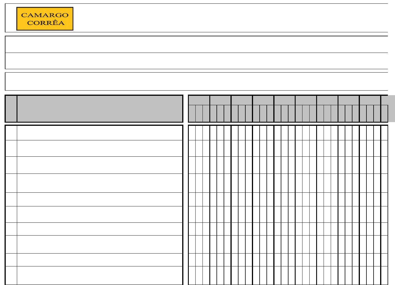 Lista de verificação ANEXO F – LISTA DE VERIFICAÇÃO PRÉ-USO PARA MOTOSERRA PÁGINA REV. 1 Projeto: EEFC Contratada: CONSTRUÇÕES E COMÉRCIO CAMARGO CORRÊA S.A Área / Local / Frente de Serviço: Identificação / Tag / Placa: Mês : Ano : ITEM ELEMENTO DE VERIFICAÇÃO 1 2 3 4 5 6 7 8 9 10 11 12 13 14 15 16 17 18 19 20 21 22 23 24 25 26 27 28 29 30 31 Sim Não N/A Sim Não N/A Sim Não N/A Sim Não N/A Sim Não N/A Sim Não N/A Sim Não N/A Sim Não N/A Sim Não N/A Sim Não N/A Sim Não N/A Sim Não N/A Sim Não N/A Sim Não N/A Sim Não N/A Sim Não N/A Sim Não N/A Sim Não N/A Sim Não N/A Sim Não N/A Sim Não N/A Sim Não N/A Sim Não N/A Sim Não N/A Sim Não N/A Sim Não N/A Sim Não N/A Sim Não N/A Sim Não N/A Sim Não N/A Sim Não N/A 1 A bomba de óleo da motosserra está regulada? 2 A corda de arranque da motosserra está afiada adequadamente? 3 A corrente da motosserra está afiada e lubrificada adequadamente? 4 O dispositivo de arranque da motosserra responde corretamente? 5 A temperatura do motor da motosserra está adequada? 6 Foi verificada a condição de reabastecimento da motosserra para evitar a contaminação do solo? 7 O filtro de ar da motosserra está limpo e em bom estado? 8 O gatilho de arranque da motosserra responde corretamente? 9 O rolamento está lubrificado adequadamente? 10 O tanque de gasolina da motosserra está adequado e bem afixado? 11 Os cabos, velas e conexões da motosserra estão em adequado estado de funcionamento? 12 Os parafusos e porcas da motosserra estão bem afixados? 13 A motosserra possui proteção de sabre, freio manual de corrente, protetor da mão direita, pino pega corrente, protetor de mão esquerda e trava de segurança do acelerador? 14 A corrente da motosserra está lubrificada adequadamente? 15 A motosserra possui silenciador e ele está bem afixado? 16 O motor da motosserra está em condições adequadas de uso (sem vazamento)? 17 Existe uma sinalização de advertência, em local de fácil leitura e visualização do usuário, com o seguinte dizer: "o uso inadequado pode provocar acidentes graves e danos à saúde"? Nome do responsável pela Inspeção: Visto do responsável pela Inspeção: Observações/Recomendações: NOTA: Se houver resposta "Não" para qualquer item, a atividade não poderá ser executada até que haja uma avaliação do supervisor/ chefia. * SE POSSÍVEL FOTOGRAFAR AS INSPEÇÕES E ANEXAR AO CHECK-LIST. &P/ PR-G-419