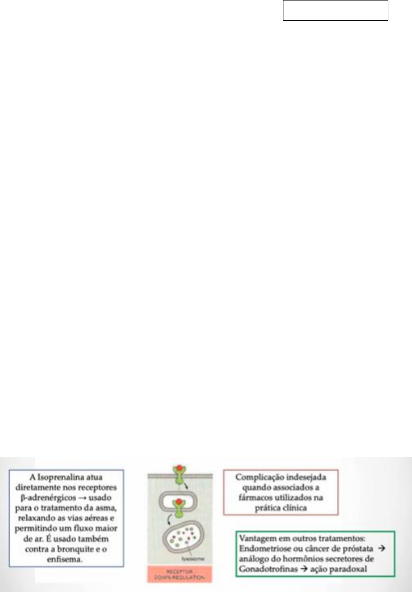 Dessensibilização, taquifilaxia e tolerância na Farmacodinâmica O efeito de um farmaco diminui gradualmente quando ele é administrado de uma maneira contínua ou repetida e isso pode ser denominado Dessenbilização ou taquifilaxia (perda rápida) e a Tolerância (resultado de dias e semanas). Tolerância é quando o farmaco vai perdendo seu efeito terapêutico, ou seja, vai construindo uma resistência (perda da eficácia dos farmacos antimicrobianos e antitumorais por exemplo) Mas porque ? Alteração nos receptores: Ocorre o que chamamos de uma alteração conformacional dos receptores, isso acontece resultado de uma hiper concentração do agonista de um fármaco. Ele em associação com o seu agonista pode ate ser ativado porém não executa seu respectivo efeito, reduzindo sua eficácia ( Repouso—Ativado— Desenbilizado--) Perda dos receptores: Muitos receptores depois de ativados são internalizados (endocitose). Ex: Opióides (Análgesicos, Morfina muito frequente isso acontecer). Exemplo de caso: Paciente em estado terminal tem uso contínuo de morfina, tem o funcionamento de Morfina de horário (Mofirna de 4 em 4 horas) e mesmo assim ele não vai ter uma analgesia suficiente, isso se explica por conta da tolerância dos receptroes resultado da perda de receptores. Pelo processo de internalização. O receptor que é internalizado ele tem um tempo especifico de recuperação para ter outro, se eu administro essa morfina antes desse “tempo de recuperação” eu não vou ter o meu receptor ali disponível para ser ativado e posteriormente a morfina perde seu efeito terapêutico. Depleção dos mediadores Ocorre a destruição/depleção de uma subtância intermediária essencial do receptor. Mecanismo muito recorrente. Exemplo Antidepressivo tem em sua metodologia o objetivo de aumentar os níveis de noradrenalina, serotonina (já que a depressão tem por si só baixas concentrações dessas moléculas) ou eles podem causar os efeitos que os próprios hormonios fazem. Fluxotina aumenta captação de serotonina e ela melhora os sintomas da depresão. Se eu uso a fluxotina constantemente por vários meses eu vou Matheus Fonseca gerar uma toleerãncia na produção de novas moléculas ou seja, irá atuar inibindo a subtância intermediária que dara origem a seretonina por exemplo. Cocaína também tem o mecanismo bem parecido pois vai atuar inibindo os receptores de noradrenalina. Todo medicamento que ta exposto a esse mediador intermediário pode estar suscetível a esse tipo de tolerância. Alteração no metabolismo dos fármacos Sabe-se que a maioria dos farmacos são metabolizados no figado por um conjunto de enzimas ( Ex: Enzimas complexo P450) Se eu tomo muito certo farmaco eu vou estar acostumando minha enzimas a o metabolizarem, quando mais rapido metaboliza menos sera o seu efeito terapêutico e feito faramcologica. Farmacos com centros de metabolização hepática tendem a sofrer mais com essa condição. Adpatação Fisiológica O efeito é anulado por uma resposta homeostática, ou seja o corpo fisiologicamente se adpata a tal mecanismo do farmaco, sofre mudanças para “vencer “ o efeito do farmaco, dai depois ele acaba reduzindo seu efeito. Pacientes que usam captobril usao hidroclorodiazida junto, porque ? Se eu utilizo so o captobril eu vou inibir a ECA, daí não vou ter a conversão de Angiontensina I em Angiotensina II, dai não consegue se ligar e liberar a secreção de aldosterona e com isso eu tenho vaso constrição e aumento a PA. Com isso o corpo cria uma adaptação fisiologica para subrir aquela alteração (Inibição do sistema Eca, Angiotensina I e II) e vou voltar ao estado normal, por isso que se usa Hidroclorodiazida para ajudar a subrir essa modificação no sistema e manter a o homeostase. Extrusão ativa do fármaco das células Ocorre por meio da ação da glicoprotéina P, Aqueles farmacos administrados por via oral na maioria das vezes serão absorvidos no intestino. Sabe-se que existe uma glicoproteína P, que tudo aquilo que ela considera estranho ela absorve e joga pra fora. Ao jogar pra fora o meu farmaco ele não consegue ter sua perfeita ação, muitas das vezes é preciso engana-la usando um inibidor ou um substrato falso.