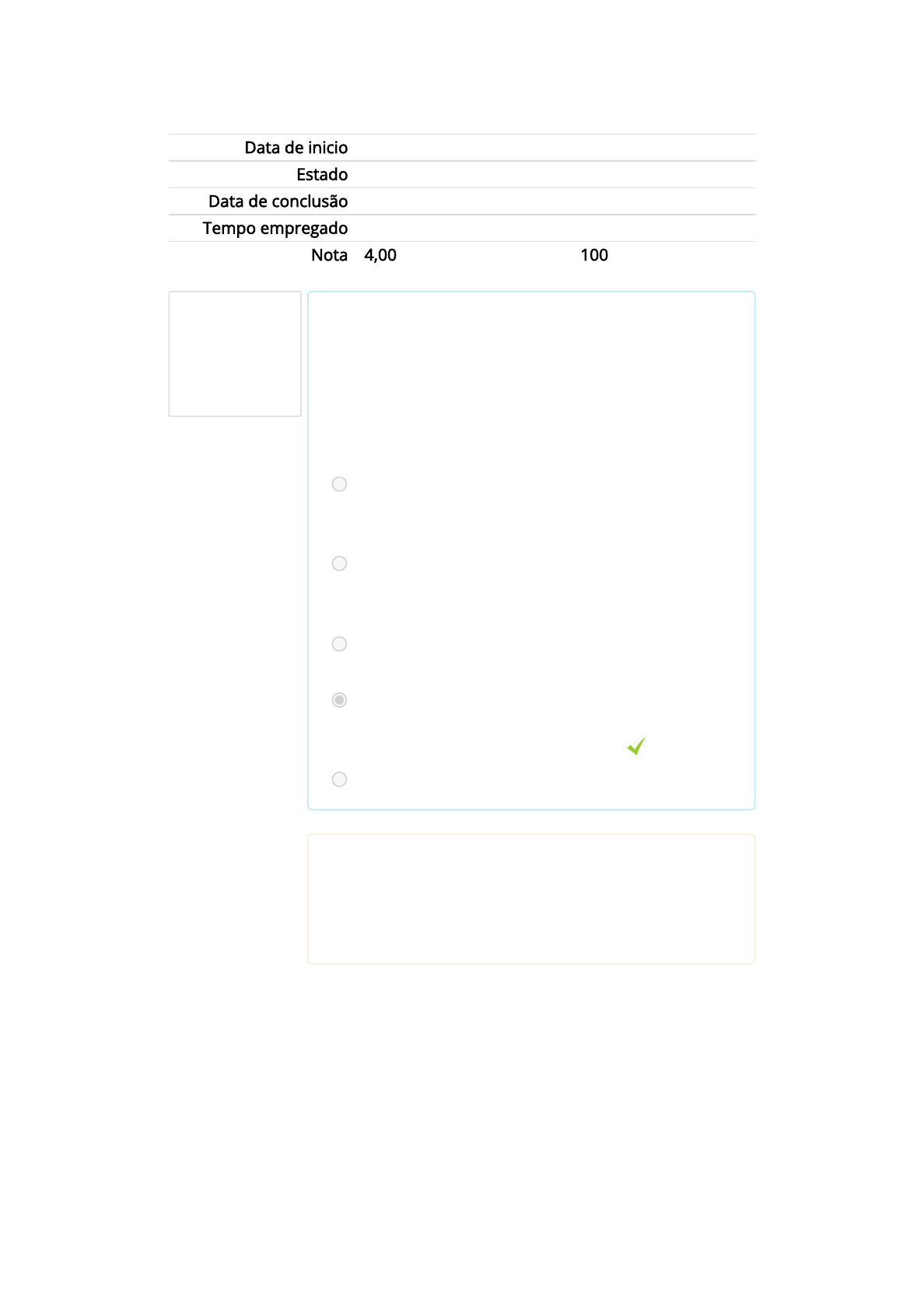 Questão 1 Correto Atingiu 1,00 de 1,00 Marketing Interno e Clima Organizacional ► AVALIAÇÃO ► ATIVIDADE DO ESTUDO DE CASO Data de inicio sexta, 5 Nov 2021, 14:04 Estado Finalizada Data de conclusão sexta, 5 Nov 2021, 14:19 Tempo empregado 14 minutos 48 segundos Nota 4,00 de um máximo de 4,00(100%) Após a aplicação de uma pesquisa dentro da organização foi possível veri�car alguns pontos falhos que desmotivavam os colaboradores daquela empresa. Nesse sentido leia as a�rmações e assinale a correta: Escolha uma: a. O principal aspecto destacado nesta pesquisa foi que os funcionários não gostavam de realizar horas extras; b. Plano de saúde e o vale alimentação eram somente os quesitos que não causavam satisfação nos colaboradores; c. Dentre os discutidos foi a falta de um refeitório próprio na organização; d. Vale alimentação, plano de saúde e a falta de creches próximas à organização são os principais agentes desmotivadores; e. Nenhuma das alternativas Sua resposta está correta. A resposta correta é: Vale alimentação, plano de saúde e a falta de creches próximas à organização são os principais agentes desmotivadores;. https://moodle.universoead.com.br/course/view.php?id=60 https://moodle.universoead.com.br/mod/quiz/view.php?id=2008 Questão 2 Correto Atingiu 1,00 de 1,00 Questão 3 Correto Atingiu 1,00 de 1,00 A organização ao passar por crises tende a procurar as técnicas de marketing para atingir seu publico alvo, ou seja, seus clientes. Entretanto, é necessário �car atento ao nosso cliente interno, nesse sentido assinale a alternativa correta sobre qual ferramenta é responsável por este publico: Escolha uma: a. Programas de carreiras; b. Incentivo a Quali�cação Pro�ssional; c. Ações de Endomarketing; d. Gestão por competências; e. Nenhuma das alternativas Sua resposta está correta. A resposta correta é: Ações de Endomarketing;. Quando os consultores chegaram a organização realizaram diversas ações, mediante a leitura do case qual foi a primeira ação tomada pelos consultores que é primordial dentro da perspectiva da implantação do Marketing interno: Escolha uma: a. Modi�car os problemas amenizando as situações com erros; b. Implantar mudanças a partir da fala dos gestores da alta administração; c. Executar uma análise apenas no chão de fábrica; d. Realizar diagnósticos, observações e pesquisas com todos envolvidos; e. Nenhuma das alternativas Sua resposta está correta. A resposta correta é: Realizar diagnósticos, observações e pesquisas com todos envolvidos;. Questão 4 Correto Atingiu 1,00 de 1,00 Dentro das abordagens que a consultoria realizou na organização, um dos fatores mais críticos identi�cados, era a rotatividade de funcionários. Sobre esse assunto, quais foram as ações tomadas pela InovaSolar a �m de resolver esse problema. Escolha uma: a. Implantou-se treinamentos, pois, faltava apenas essa ferramenta na organização para que ela conseguisse reter os talentos. b. Foi implantado um departamento para cuidar da seleção correta dos colaboradores, readequando as funções de acordo com o per�l dos funcionários. c. Implantou um sistema de instrução somente na alta administração para o momento da escolha dos funcionários. d. A consultoria concluiu que não era necessária nenhuma ação, já que os funcionários eram produtivos e motivados. e. A ação tomada pela consultoria foi de orientar a gerência a demitir todos os funcionários velhos de casa, já que esses, já não eram tão produtivos e, contratar novo colaboradores com o per�l correto para cada cargo. Sua resposta está correta. A resposta correta é: Foi implantado um departamento para cuidar da seleção correta dos colaboradores, readequando as funções de acordo com o per�l dos funcionários. .