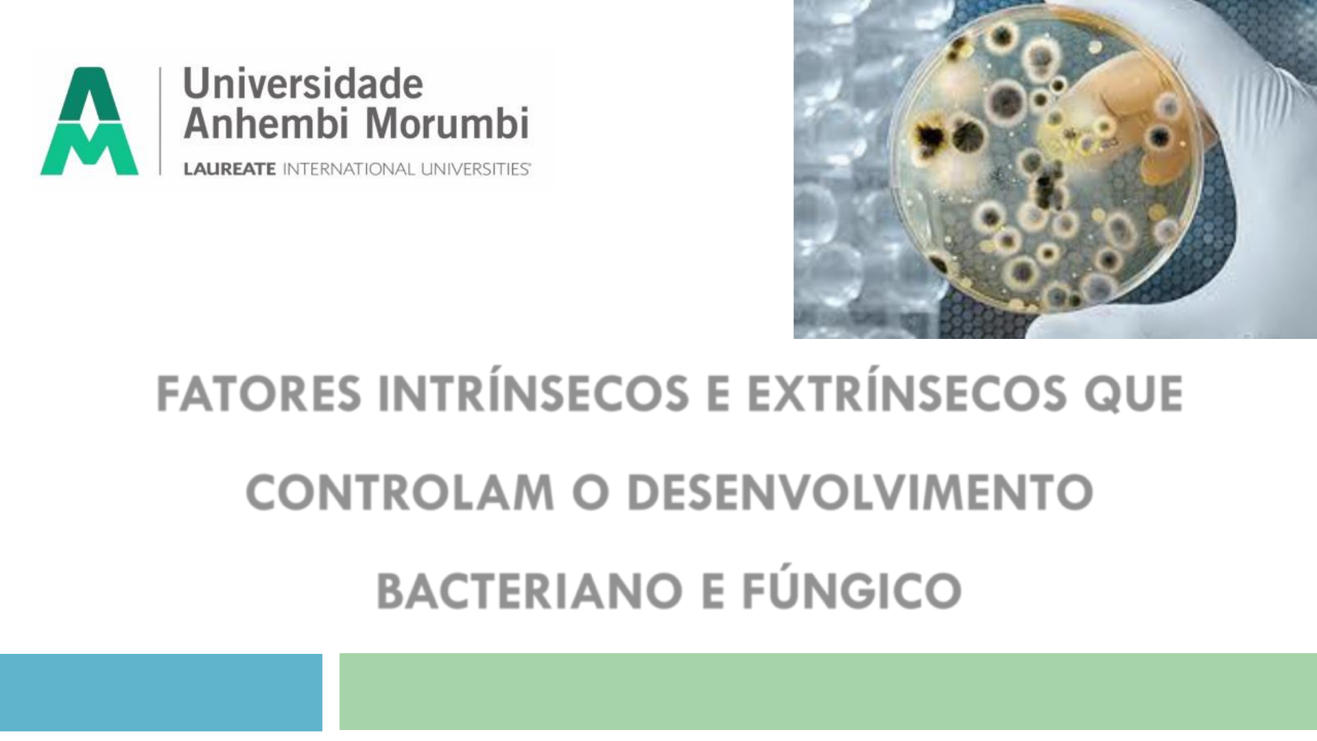 FATORES INTRÍNSECOS E EXTRÍNSECOS QUE CONTROLAM O DESENVOLVIMENTO BACTERIANO E FÚNGICO Prof. MSc. Rafael Carvalho Cultura de microorganismos  A cultura de microrganismos consiste no crescimento de populações microbianas em meios de cultura laboratoriais.  Uma cultura que tem apenas um tipo de microrganismo é conhecida por cultura pura (seletiva), uma cultura que tem mais do que um tipo de microrganismo é uma cultura mista (não seletiva).  A cultura de microrganismos consiste num passo rotineiro do exame microbiológico, sendo feito simultaneamente com o exame microscópico (identificação das características morfológicas – cocos, bacilos, vibriões e espiroquetas). Crescimento Bacteriano  Crescimento Bacteriano = Multiplicação (número)  Estão aumentando em número e se acumulando em colônias  Tempo de Geração • Varia entre espécies • Condições ambientais (temperatura, etc.) Toda bactéria tem seu ambiente ideal onde encontra condições ótimas de crescimento. Ciclo do Crescimento Bacteriano Fase LAG (adaptação)  Atividade de preparação intensa para crescimento da população  Pouca ou nenhuma divisão  Demanda de tempo para a biossíntese de moléculas essenciais (enzimas e metabólitos)  Quando ocorre: ◼Repique de cultura (antiga) ◼ Inóculo de baixa viabilidade ◼Transferência de uma cultura em meio enriquecido para um meio mais pobre (seletivo) Fase LOG (exponencial)  multiplicação intensa em intervalos regulares Divisão celular intensa e constante  Tempo de geração atinge um mínimo constante Momento de maior atividade metabólica Quando ocorre: ◼Condições ótimas de temperatura, nutriente, pH, etc... Ciclo do Crescimento Bacteriano Fase estacionária  Diminuição das taxas de crescimento e aumento do número de mortes  Taxa de morte de iguala à taxa de crescimento  População se estabiliza em números  Quando ocorre: ◼Diminuição de nutrientes ◼Produção de resíduos tóxicos (produtos bacterianos) ◼Mudança de pH ◼Etc... Fase de morte celular  Fase de declínio onde a população se reduz ou até mesmo se extingue  Taxa de morte é maior que a taxa de crescimento  Apesar de ser uma fase exponencial é mais lenta que a fase log (pode levar dias, meses ou anos)  Quando ocorre: ◼Esgotamento de nutrientes ◼Acúmulo de resíduos tóxicos (produtos bacterianos) ◼Mudança de pH ◼Etc... Ciclo do Crescimento Bacteriano Com a cultura de microrganismos pretende-se • Aumentar a quantidade de microrganismos, que por vezes, ocorrem em número reduzido na amostra, para facilitar posteriormente a identificação. • Procurar isolar os tipos de microrganismos existentes numa população microbiana mista. • Diferenciar entre grupos de microrganismos através da aparência macroscópica das colônias e das reações bioquímicas com o meio. • Caracterizar e identificar os microrganismos através das características das suas colônias • Quantificar microrganismos. Fatores (químicos e físicos) que influenciam no crescimento bacteriano Fatores Físicos Temperatura pH Pressão Osmótica Fatores Químicos Carbono, Nitrogênio, Oxigênio Nutrientes Fatores orgânicos de crescimento FATORES FÍSICOS TEMPERATURA  Temperatura Mínima, Ótima e Máxima Microorganismos: (TEMPERATURA) • Psicróficos: 10 – 20ºc • Mesófilos: 20 – 40ºc • Termófilos: acima de 40ºc • Termófilos extremos: >80ºc FATORES FÍSICOS pH • A maioria das bactérias cresce numa faixa estreita e perto da neutralidade (6,5-7,5) • Fungos tem faixa de pH ótimo menor (5-6) • Produção de ácido (fermentação) → inibição do crescimento  Neutrófilas Bactérias patogênicas → pH ótimo neutro (6,5 e 7,5) Fungos → pH ótimo levemente ácido (5 a 6) ◼Leveduras vs. Bolores  Acidófilas (ex. Helicobacter pylori)  Alcalinófilas (ex. Vibrio cholerae) FATORES FÍSICOS pH Organismo pH Mínimo Ótimo Máximo BACTÉRIAS (maioria) 4,5 6,5 a 7,5 9,0 Acetobacter sp 4,0 5,4 a 6,3 - Bacillus subtilis 4,2 a 4,5 6,8 a 7,2 9,4 a 10,0 Clostridium botulinum 4,8 a 5,0 6,0 a 8,0 8,5 a 8,8 Escherichia coli 4,3 a 4,4 6,0 a 8,0 9,0 a 10,0 Lactobacillus (maioria) 3,0 a 4,4 5,5 a 6,0 7,2 a 8,0 Propionibacterium 4,7 6,2 a 7,0 7,5 Proteus vulgaris 4,4 6,0 a 7,0 8,0 P. aeruginosa 5,6 6,6 a 7,0 8,0 a 9,0 Salmonella 4,5 a 5,0 6,0 a 7,5 8,0 a 9,6 Staphylococcus aureus 4,0 a 4,7 6,0 a 7,0 9,5 a 9,8 LEVEDURAS 1,5 a 3,5 4,0 a 6,5 8,0 a 8,5 Pichia 1,5 - - Saccharomyces cerevisae 2,0 a 2,4 4,0 a 5,0 - BOLORES 1,5 a 3,5 4,5 a 6,8 8 a 11 Aspergillus niger 1,2 3,0 a 6,0 - Mucor - 3,0 a 6,1 9,2 Penicillium 1,9 4,5 a 6,7 9,3 Rhizopus nigricans - 4,5 a 6,0 - FATORES FÍSICOS PRESSÃO OSMÓTICA  Dizem-se halófilos (do grego halo - sal + filo - amigo) os organismos extremófilos que podem desenvolver-se em ambiente com altas concentrações de sal FATORES FÍSICOS PRESSÃO OSMÓTICA • Halotolerantes resistem ou crescem em concentrações de sal de (1-6%); • halófilos moderados (6-15%); • halófilos extremos de (15-30%) podendo sobreviver em até 32% (limite de saturação do NaCl), Atividade da Água (Aw ou AA)  Água pura = 1,00  Dependente de outros fatores ⇒ temperatura, disponibilidade de nutrientes, pH e outros Aa = Atividade da água Redução da atividade de água no alimento 1) Adição de soluto: sal, açúcar, glicerol 2) Remoção da água: desidratação e congelamento Diminuição da Aw = aumento da duração da fase LAG e a diminuição do crescimento microbiano Halófilos - organismos extremófilos que podem desenvolver-se em ambiente com altas concentrações de sal Fatores (químicos e físicos) que influenciam no crescimento bacteriano Fatores Físicos Temperatura pH Pressão Osmótica Fatores Químicos Carbono, Nitrogênio, Oxigênio Nutrientes Fatores orgânicos de crescimento Fatores químicos Nitrogênio • Atmosfera → Fixação de Nitrogênio • Formação de amônia (NH3) • Compostos inorgânicos de nitrogênio (sais de amônio) • Compos