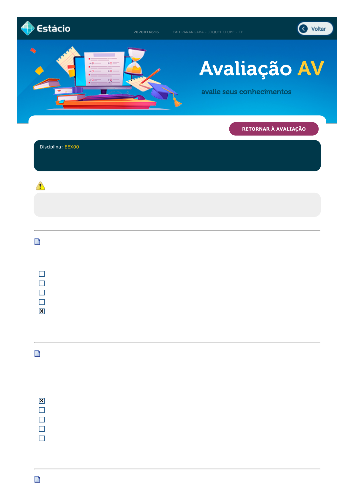 01/06/2021 EPS https://simulado.estacio.br/alunos/?p0=10154484&user_cod=2609255&matr_integracao=202001661662 1/4 MARIA GEANE DO NASCIMENTO Avaliação AV 202001661662 EAD PARANGABA - JÓQUEI CLUBE - CE avalie seus conhecimentos RETORNAR À AVALIAÇÃO Disciplina: EEX0057 - ESTATÍSTICA E PROBABILIDADE Período: 2021.1 EAD (GT) / AV Aluno: MARIA GEANE DO NASCIMENTO Matrícula: 202001661662 Data: 01/06/2021 17:47:23 Turma: 9003 ATENÇÃO 1. Veja abaixo, todas as suas respostas gravadas no nosso banco de dados. 2. Caso você queira voltar à prova clique no botão "Retornar à Avaliação". 1a Questão (Ref.: 202005716048) Colocando, aleatoriamente, as 9 letras da palavra PETROBRAS em fila, a probabilidade de que as 2 letras R fiquem juntas é: 1/9 8/9! 8/9 2/9! 2/9 2a Questão (Ref.: 202005716050) Em um grupo de 200 adultos, 130 são do sexo masculino. Das mulheres desse grupo, 40% são casadas. Entre essas 200 pessoas, 94 delas não são casadas. Ao escolher aleatoriamente 1 desses adultos, qual é a probabilidade de que ele seja um homem, sabendo que o adulto sorteado é casado? 13/20 14/53 3/5 14/39 39/53 3a Questão (Ref.: 202005718905) javascript:voltar_avaliacoes() javascript:alert('C%C3%B3digo da quest%C3%A3o: 3988220\n\nStatus da quest%C3%A3o: Liberada para Uso.'); javascript:alert('C%C3%B3digo da quest%C3%A3o: 3988222\n\nStatus da quest%C3%A3o: Liberada para Uso.'); javascript:alert('C%C3%B3digo da quest%C3%A3o: 3991077\n\nStatus da quest%C3%A3o: Liberada para Uso.'); 01/06/2021 EPS https://simulado.estacio.br/alunos/?p0=10154484&user_cod=2609255&matr_integracao=202001661662 2/4 Considere as alternativas abaixo eassinale a alternativa incorreta: P(A|B)/P(B|A) = P(A)/P(B). Sejam 3 eventos A, B e C demonstrar que: P(A|B) = P(C|B)P(A|B\(\cap\)C) + P(C\ (^c\)|B)P(A|B\(\cap\)C\(^c\)). Se dois eventos A e B são independentes,os eventos A e B\(^c\) não serão necessariamente independentes. Se A, B e C são eventos com probabilidadenão nula, definidos em um espaço amostral S,então:P(A\(\cap\)C|B\(\cap\)C) = P(A\(\cap\)B|C)/P(B|C). Sejam 3 eventos A, B e C. Sabendo que: A e B são mutuamente exclusivos; A e C são independentes; B e C são independentes; 4P(A) = 2P(B) = P(C); P(A\(\cup\)B\ (\cup\)C) = 5P(A). P(A) = 1/6. 4a Questão (Ref.: 202005718909) Empresas, em certa região, contam com duas linhas de financiamento: uma com taxa de 5%a.a. e outra com taxa de 20%a.a., dependendo do histórico de crédito. Sabe-se que 1/3 das empresas pagam juros de 5%. Destas, metade é familiar. No grupo de empresas que paga 20%, metade é familiar. Qual a taxa de juros média (em %a.a.) paga pelas empresas familiares naquela região? 0,25 0,16 0,01 0,15 0,05 5a Questão (Ref.: 202005718927) A variável aleatória discreta \(X\) assume apenas os valores 0, 1, 2, 3, 4 e 5. A função densidade de probabilidade de \(X\) é dada por: P(X = 0) = P (X = 1) = P(X = 2) = P(X = 3) = a P(X = 4) = P(X = 5) = b P(X \(\ge\) 2) = 3P(X \(<\) 2) O valor esperado de \(X\) é igual a : 3 7 10 9/4 6/8 6a Questão (Ref.: 202005718917) Seja \(X\) tal que \(f(x) = 2x,\ 0 < x < 1\). Determine a distribuição de \(Y = 3X + 2\). \(f(y) = \frac{1}{9} \left( y - 2 \right ), 2 < y < 5\) javascript:alert('C%C3%B3digo da quest%C3%A3o: 3991081\n\nStatus da quest%C3%A3o: Liberada para Uso.'); javascript:alert('C%C3%B3digo da quest%C3%A3o: 3991099\n\nStatus da quest%C3%A3o: Liberada para Uso.'); javascript:alert('C%C3%B3digo da quest%C3%A3o: 3991089\n\nStatus da quest%C3%A3o: Liberada para Uso.'); 01/06/2021 EPS https://simulado.estacio.br/alunos/?p0=10154484&user_cod=2609255&matr_integracao=202001661662 3/4 \(f(y) = \frac{2}{9} \left( y - 2 \right ), 2 < y < 5\) \(f(y) = \frac{2}{9} \left( y - 2 \right ), 1 < y < 3\) \(f(y) = \frac{2}{9} \left( y - 3 \right ), 2 < y < 5\) \(f(y) = \frac{2}{3} \left( y - 2 \right ), 2 < y < 5\) 7a Questão (Ref.: 202005754254) Os tempos de vida de um certo tipo de componente eletrônico são exponencialmente distribuídos com média de 2000 horas. A probabilidade de que um componente dure mais de 2000 horas é igual a: e-2 e-3 1 - e-2 1 - e-3 e-1 8a Questão (Ref.: 202005787157) O histograma a seguir representa a distribuição de frequências das áreas cultivadas das fazendas de uma determinada região, em hectares. Não existem observações coincidentes com os extremos das classes. A média e o desvio-padrão, respectivamente, em hectares, das áreas cultivadas, aproximadamente, são: 9 e 36 36 e 4 9 e 4 9 e 16 36 e 16 9a Questão (Ref.: 202005787143) Ouvindo-se 300 pessoas sobre o tema ¿Reforma da previdência, contra ou favor?¿, foram obtidas 123 respostas a favor, 72 contra, 51 pessoas não quiserem opinar e o restante não tinha opinião formada sobre o assunto. Distribuindo-se esses dados em uma tabela, obtém-se: Opinião Frequência Frequência relativa javascript:alert('C%C3%B3digo da quest%C3%A3o: 4026426\n\nStatus da quest%C3%A3o: Liberada para Uso.'); javascript:alert('C%C3%B3digo da quest%C3%A3o: 4059329\n\nStatus da quest%C3%A3o: Liberada para Uso.'); javascript:alert('C%C3%B3digo da quest%C3%A3o: 4059315\n\nStatus da quest%C3%A3o: Liberada para Uso.'); 01/06/2021 EPS https://simulado.estacio.br/alunos/?p0=10154484&user_cod=2609255&matr_integracao=202001661662 4/4 Favorável 123 x Contra 72 y Omissos 51 0,17 Sem opinião 54 0,18 Total 300 1,00 Na coluna frequência relativa, os valores de x e y são, respectivamente: 0,30 e 0,35 0,41 e 0,24 0,38 e 0,27 0,35 e 0,30 0,37 e 0,28 10a Questão (Ref.: 202005716274) Um estudante marca, ao acaso, as respostas de um teste de 10 questões de múltipla escolha, com 4 alternativas por questão. O número mais provável de acertos é: 3,0 2,5 2,0 3,5 1,5 Autenticação para a Prova On-line Caso queira FINALIZAR a avaliação, digite o código de 4 carateres impresso abaixo. ATENÇÃO: Caso finalize esta avaliação você não poderá mais modificar as suas respostas. B3GU Cód.: FINALIZAR Obs.: Os caracteres da imagem ajudam a Instituiç