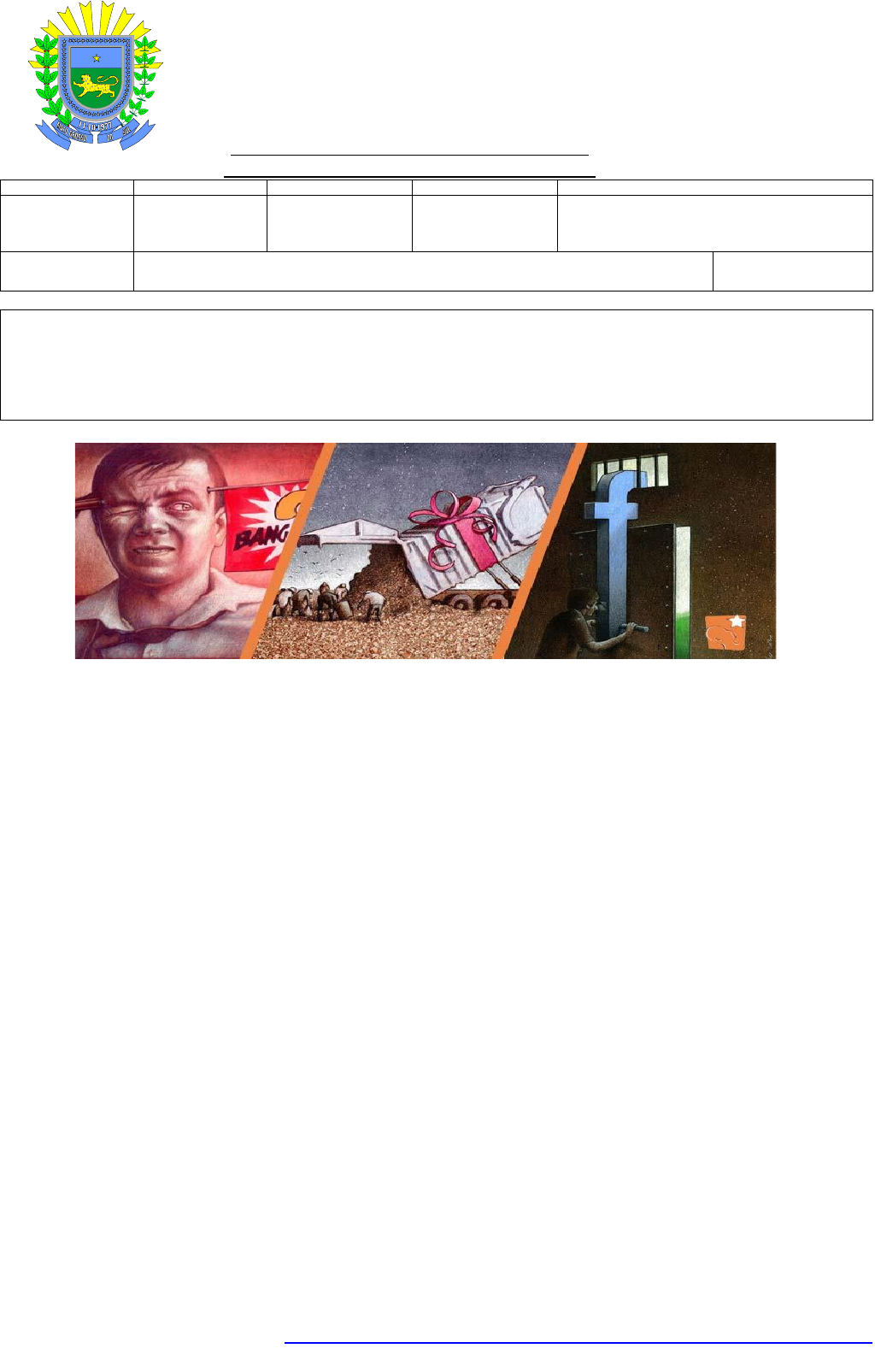 GOVERNO DO ESTADO DE MATO GROSSO DO SUL SECRETARIA DE ESTADO DE EDUCAÇÃO ESCOLA ESTADUAL SENADOR FILINTO MULLER Rua João Ferreira Borges N.º 151 – Bairro Piravevê – Fone/Fax: 3442-1183 E-Mail: eesfmi@sed.ms.gov.br CEP 79.740-000 - IVINHEMA - MATO GROSSO DO SUL ATIVIDADES PEDAGÓGICAS COMPLEMENTARES DISCIPLINA CARGA HORÁRIA TURMA PROFESSORA PERÍODO Arte 2 aulas 1º Ano Dagmar Herculano da Silva 1ª Quinzena de Setembro ESTUDANTE N° OBJETO DE CONHECIMENTO: Vida e obras do artista Pawel Kucznski RECURSOS: Material impresso, Internet, computador, celular, notebook. AVALIAÇÃO: A avaliação é processual, formativa e somativa e supõe o desenvolvimento de todas as etapas desta atividade de aprendizagem. O produto final desta atividade resulta no desenvolvimento das habilidades citadas acima, com critérios bem definidos pelo docente com a finalidade de aferir a evolução de aprendizagem dos discentes através da entrega das atividades na data pré-estabelecida com foco nas competências socioemocionais. Pawel Kuczynski, artista gráfico polonês que através de sua arte faz reflexões e críticas, utilizando-se do humor, para tratar da realidade e problemas universais. Pawel Kuczynski "Eu tento converter em desenhos minhas observações sobre a condição humana" Pawel Kuczynski Pawel Kuczynski é um cartunista/ilustrador polonês contemporâneo nascido em Szczecin em 1976. Graduado pela Academia de Belas Artes de Poznam e especializado em Artes Gráficas trabalha com Ilustrações satíricas desde 2004 e já foi agraciado com mais de 100 diferentes prêmios. Em 2005 recebeu o prêmio "Eryk" da Associação Polonesa de cartunistas como artista revelação por haver ganho inúmeros prêmios pelo mundo. Tantos prêmios justificam-se já que a temática de seu trabalho é universal, abordando a desigualdade, a fome, ativismo ecológico e a falta de liberdade, por exemplo, temas estes que fazem parte do cotidiano de qualquer país, especialmente do Brasil. Aliás falando em Brasil, a primeira vez que vimos suas obras imaginamos ser um artista brasileiro e não polonês, pois sua temática encaixa-se tão bem à nossa realidade que só um filho da terra, em nossa imaginação, teria condições de traduzir as mazelas nacionais desta forma. Ledo engano imaginar que os problemas do Brasil são únicos e exclusivos nossos e foi o que Pawel Kuczynski mostrou-nos. Considerado um ilustrador realista utiliza essencialmente aquarela e lápis de cor em suas obras, em seu trabalho traz o que vê em seu cotidiano, acredita que através de seus trabalhos as pessoas podem refletir sobre a situação atual ao seu redor e também sobre seus antepassados e conseguem pensar em como podemos mudar. Sua obra é uma metáfora, uma linguagem universal, pois acredita que uma boa metáfora consegue explicar uma ideia melhor que mil palavras, através delas tenta transmitir o que pensa sem palavras. O artista é um grande observador que gosta de observar as pessoas e as relações que estabelecem entre si, pois acredita que apesar de vivermos tanto tempo nesse mundo ainda cometemos os mesmos erros: guerra, pobreza, divisões raciais, ecologia, dinheiro — estes são os temas que gosta de imortalizar em suas obras. Fonte: https://m.sermelhor.com.br/espaco/40-ilustracoes-criticas-de-pawel-kuczynski.html https://m.sermelhor.com.br/espaco/40-ilustracoes-criticas-de-pawel-kuczynski.html LEIA O TEXTO E RESPONDA: 1.Quem é Pawel Kuczynski? _____________________________________________________________________________________________________ _____________________________________________________________________________________________________ 2. Quais as temáticas que Pawel geralmente usa em suas obras? _____________________________________________________________________________________________________ _____________________________________________________________________________________________________ 3. Quais os elementos que Pawel gosta de observar imortalizando-os em seus trabalhos? Por que? _____________________________________________________________________________________________________ _____________________________________________________________________________________________________ 04. Observe abaixo as obras de Pawel Kuczynski e descreva quais as críticas sociais que o artista ilustra em suas pinturas. _________________________________________________________________________________________________________ _________________________________________________________________________________________________________ _________________________________________________________________________________________________________ Link do vídeo de apoio Pawel Kuczynski : https://youtu.be/ZG7IEJRVevI 05. ATIVIDADE DE ANALISE E OBSERVAÇÃO CRÍTICA Observe a obra abaixo de Pawel onde o artista faz uma crítica social a respeito da fome e logo após realize uma releitura da obra: 06. Construa um mapa conceitual (mapa mental) sobre a biografia do artista Pawel Kuczynski, abordando os principais elementos abordados no texto da aula. Utilize o verso da folha para sua construção, mas caso use folha avulsa, colar/grampear junto da atividade. Observação pode utilizar o verso da folha para realizar essa atividade. https://youtu.be/ZG7IEJRVevI