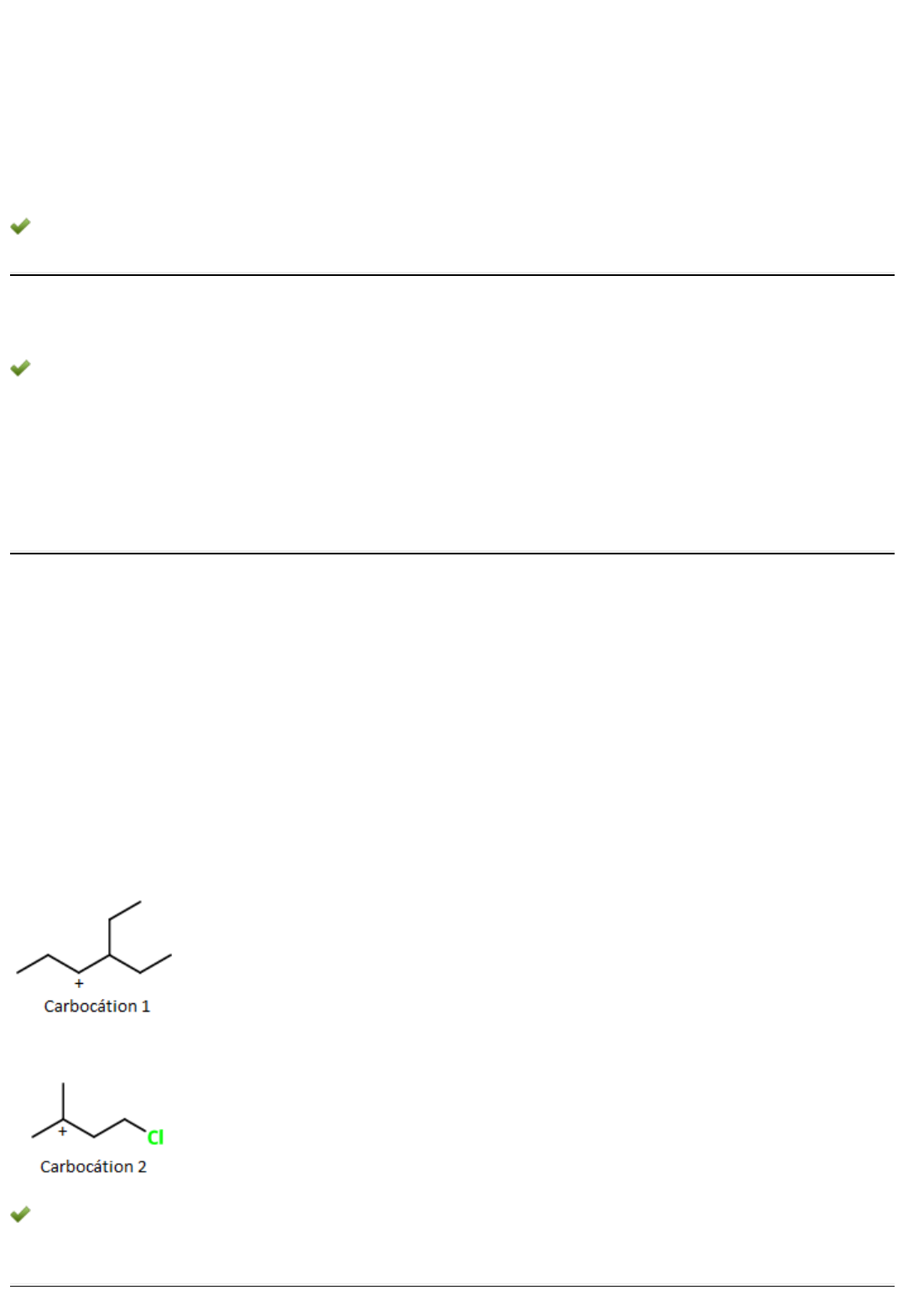 A Teoria da Hibridização de Orbitais foi proposta por Linus Pauling, com o objetivo de explicar as ligações químicas nos compostos orgânicos. De acordo com essa teoria, orbitais híbridos podem ser criados pela mistura entre orbitais s e p do átomo do carbono, por exemplo. Considerando os orbitais híbridos, assinale a alternativa INCORRETA: a) Os orbitais híbridos sp do carbono se posicionam perpendicularmente (ângulo de 180°) entre si. b) Os orbitais híbridos sp2 do carbono se formam quando o orbitai 2s se combina a dois orbitais 2p. c) A hibridização de orbitais s e p do carbono origina orbitais híbridos de energia distintas. d) Os orbitais híbridos sp3 são degenerados. 2. A compreensão da química estabelecida para cada um dos grupos funcionais orgânicos é essencial para a predição das propriedades físicas e químicas individuais dos compostos orgânicos. Nesse sentido, assinale a alternativa CORRETA: a) Um dos modos de emprego dos alcanos é como combustíveis, pois eles sofrem reação de combustão. b) Utiliza-se as reações de combustão no processo do refino do petróleo justamente para realizar o craqueamento de alcanos de massa molar alta em alcanos de menor massa molar. c) Os alcanos são caracterizados por não reagirem de modo algum com outras substâncias químicas. d) Os alcanos são caracterizados por apresentarem baixa reatividade em função da presença apenas de ligações pi. 3. Os carbocátions são estruturas intermediárias, que apresentam deficiência em elétrons, sendo o carbocátion mais estável aquele que apresentar menor energia, facilitando a ocorrência da reação. Com base na estabilidade dos carbocátions, analise as estruturas a seguir (relativas aos carbocátions 1 e 2) e classifique V para as sentenças verdadeiras e F para as falsas: ( ) O carbocátion 1 é mais estável que o carbocátion 2 porque ele é um carbocátion secundário. ( ) O carbocátion 2 é mais estável que o carbocátion 1 porque ele é um carbocátion terciário. ( ) O carbocátion 2 é mais estável porque o carbono com carga positiva está ligado a três outros átomos de carbono. ( ) O carbocátion 1 é mais estável porque o carbono com carga positiva está ligado a dois outros átomos de carbono. Assinale a alternativa que apresenta a sequência CORRETA: a) F - F - V - F. b) F - V - V - F. c) V - V - F - F. d) V - F - F - V. https://portaldoalunoead.uniasselvi.com.br/ava/notas/request_gabarito_n2.php?action1=QkZSMTA5NA==&action2=MjAzMDI=&action3=NjkwNTE4&action4=MjAyMS8y&prova=Mzk0MTQ3NDU=#questao_2%20aria-label= https://portaldoalunoead.uniasselvi.com.br/ava/notas/request_gabarito_n2.php?action1=QkZSMTA5NA==&action2=MjAzMDI=&action3=NjkwNTE4&action4=MjAyMS8y&prova=Mzk0MTQ3NDU=#questao_3%20aria-label= 4. As moléculas orgânicas com grupamentos químicos idênticos apresentam propriedades químicas semelhantes e, assim, são classificadas em função dos grupos funcionais presentes na estrutura de determinado composto orgânico. Sobre o exposto, assinale a alternativa CORRETA: a) CH3CH2OH é um exemplo de grupo funcional em que o carbono faz ligação dupla com átomos mais eletronegativos. b) H2C=CH2 é um exemplo de grupo funcional com ligações simples entre carbonos. c) CH3CH2CH2Cl é um exemplo de grupo funcional em que o carbono faz ligação simples com átomos mais eletronegativos. d) (H3C)2C=O é um exemplo de grupo funcional em que o carbono faz ligação simples com o oxigênio. 5. A Química Orgânica trata do estudo de milhares de compostos e, para que fosse possível nomear todos esses compostos, foi desenvolvida a nomenclatura sistemática, uma metodologia proposta pela União Internacional de Química Pura e Aplicada (IUPAC). Nesse contexto, considere a cadeia de carbono apresentada e classifique V para as sentenças verdadeiras e F para as falsas: ( ) A cadeia principal é o ciclo contendo seis carbonos. ( ) O nome sistemático dessa molécula é: 1-etilciclohexano. ( ) A ramificação deve estar no carbono com maior numeração. ( ) O grupo CH2CH3 é uma ramificação. Assinale a alternativa que apresenta a sequência CORRETA: a) F - V - F - F. b) V - V - V - V. c) V - V - F - V. d) F - F - F - V. 6. A hibridização é resultado da combinação entre diferentes tipos de orbitais atômicos devido à superposição entre eles. O estudo da hibridização de orbitais é muito útil para compreensão da geometria da molécula, por exemplo. Considerando os orbitais híbridos resultantes da sobreposição entre os orbitais atômicos típicos dos compostos orgânicos, assinale a alternativa CORRETA: a) A ligação sigma C-C na molécula do etano, C2H6, é formada pela sobreposição dos orbitais híbridos sp3 do carbono com os orbitais híbridos sp2 do segundo carbono. b) A ligação sigma C-C na molécula do etano, C2H6, é formada pela sobreposição dos dois orbitais sp dos átomos de carbono. c) A ligação sigma C-C na molécula do etano, C2H6, é formada pela sobreposição dos dois orbitais sp2 dos átomos de carbono. d) A ligação sigma C-C na molécula do etano, C2H6, é formada pela sobreposição dos dois orbitais sp3 dos átomos de carbono. https://portaldoalunoead.uniasselvi.com.br/ava/notas/request_gabarito_n2.php?action1=QkZSMTA5NA==&action2=MjAzMDI=&action3=NjkwNTE4&action4=MjAyMS8y&prova=Mzk0MTQ3NDU=#questao_4%20aria-label= https://portaldoalunoead.uniasselvi.com.br/ava/notas/request_gabarito_n2.php?action1=QkZSMTA5NA==&action2=MjAzMDI=&action3=NjkwNTE4&action4=MjAyMS8y&prova=Mzk0MTQ3NDU=#questao_5%20aria-label= https://portaldoalunoead.uniasselvi.com.br/ava/notas/request_gabarito_n2.php?action1=QkZSMTA5NA==&action2=MjAzMDI=&action3=NjkwNTE4&action4=MjAyMS8y&prova=Mzk0MTQ3NDU=#questao_6%20aria-label= 7. Como os compostos químicos não podem ser necessariamente observados, os químicos, baseados em estudos e evidências, desenvolveram meios de representar visualmente esses compostos. Existem diversas maneiras de represen