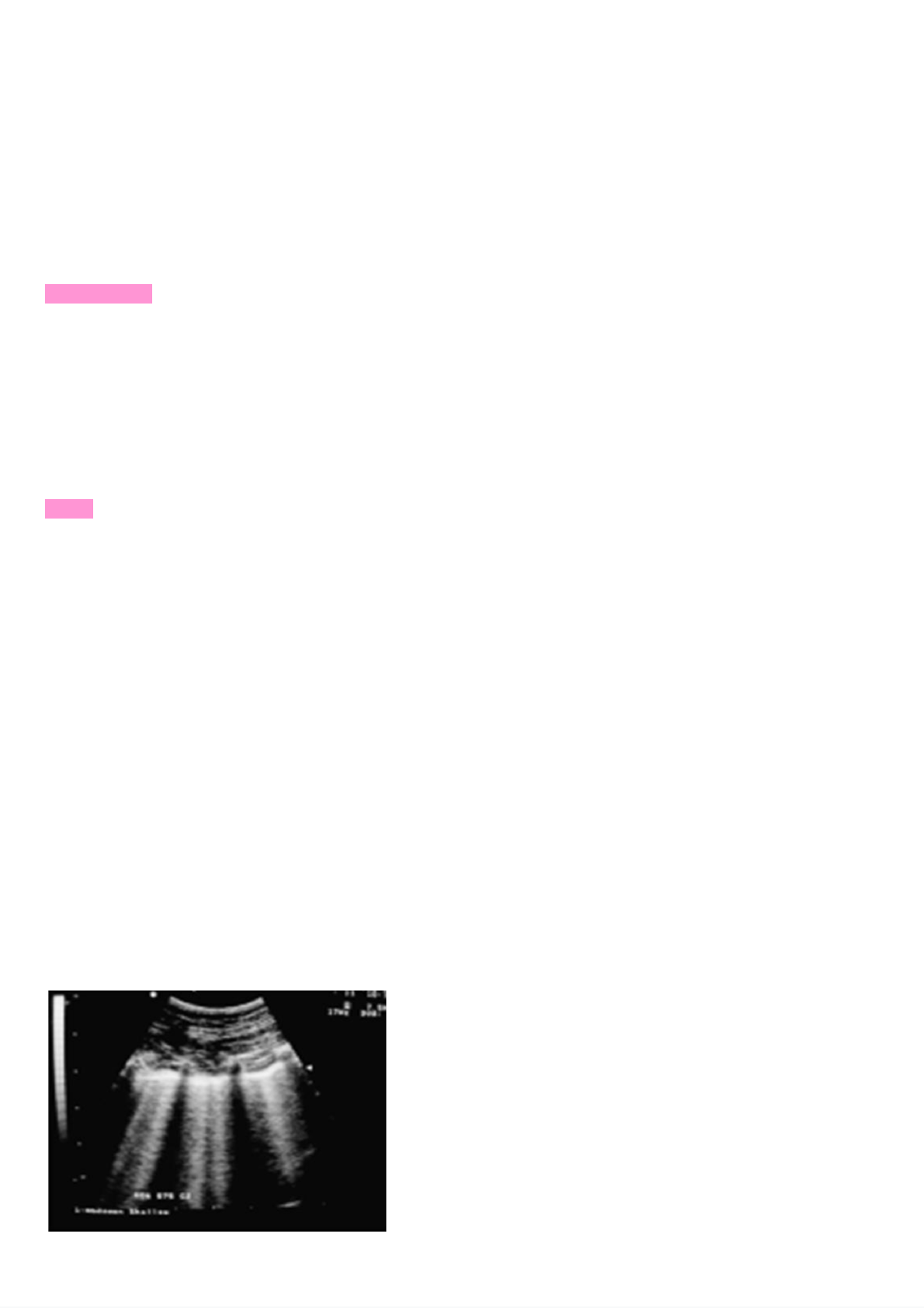 An��es�� B. Eva���l���a RE���� us� me�- T3 Classificação de acordo com as estruturas adjacentes: -hiperecóicas: estruturas densas (fica branco), pois não passa a onda- feixe tem maior dificuldade em ultrapassar a estrutura, refletindo mais (ossos, calcificações)- Tecidos mais brilhantes (osso, gordura, parede vesicular) – hiperecóicos / hiperecogênicos -anecóicas: preto (livre de ecos) onda passa totalmente; livre de ecos (vasos, urina, bile) -ecogênico: brilhante -hipoecóicos: feixe ultrapassa a estrutura com maior facilidade e pouco reflete (líquidos) -isoecóicos: mesma ecogenicidade das estruturas adjacentes PORTANTO: Tecidos que criam ecos mais brilhantes do que os tecidos adjacentes (osso, gordura, parede vesicular) são classificados como hiperecóicos. Tecidos que criam ecos menos brilhantes do que os tecidos adjacentes (linfonodos, líquidos, músculos). são classificados como hipoecóicos. Uma estrutura anecóica é aquela que é livre de ecos, ou seja, não possui nenhuma diferença de meio dentro si (vasos sanguíneos, urina normal, bile). Outra característica de estruturas anecóicas é o reforço acústico posterior, que é decorrente da baixa atenuação dessas estruturas ao feixe sonoro. As estruturas posteriores à imagem cística terão seu ecos “reforçados”, pois as ondas sonoras passam praticamente sem sofrer perdas de absorção, refração ou reflexão pela imagem cística. Isto provoca um reforço dos ecos das estruturas posteriores que é vista como uma “mancha branca” posterior à estrutura anecóica. O reforço acústico posterior é, portanto, um artefato útil na caracterização de estruturas anecóicas. OBS.: ● quem penetra bem tecido é quem tem baixa frequência= transdutor de baixa frequência; ● irmãos Curie: todo efeito do aparelho de ultrassom é baseado na teoria desses irmãos- EFEITO PIEZELÉTRICO , energia mecânica transformada em energia elétrica; ● marcador do aparelho sempre voltado para o examinador e para cima; ● marcador aponta para o que vai aparecer do lado esquerdo da tela (imagem em espelho); ● o que fica acima da tela é o que está mais próximo do transdutor (mais superficial) ● convexo- transdutor para pelve ● faz medida: lateral+ posterior+ anterior ● em contato com algo sólido faz reforço acústico posterior ● crânio caudal= da esquerda para a direita ● Artefato: imagem ecográfica falsa produzida no processamento da imagem ecográfica. São exemplos de artefatos a reverberação, a sombra acústica e o reforço posterior. Uma característica que aparece na imagem do ultrassom e que não corresponde ou representa realmente uma estrutura anatômica ou patológica, na forma, direção ou distância ( Característica que aparece na imagem do ultrassom e que não corresponde ou representa realmente uma estrutura anatômica ou patológica, na forma, direção ou distância)- Exemplo de causas de artefatos e artefatos: - Problemas no equipamento - Interação do som com os tecidos - Técnica utilizada -reverberação, a sombra acústica e o reforço posterior. ● Reverberação : Formação de várias imagens subseqüentes resultantes de uma reflexão intensa de som até o transdutor, causada por uma grande mudança de impedância acústica. Pode ocorrer devido à presença de uma costela ao examinar o fígado, ou pela presença de alças intestinais. Ex.: Gases; líquidos hidrotórax ● Reforço posterior: ecos de alta intensidade que aparecem posteriormente a meios líquidos com um típico formato, geralmente convergente, também conhecido como formato de "cauda de girino", resultante da menor atenuação que o som é submetido ao percorrer o líquido e os meios adjacentes a este. O termo reforço não é muito adequado, visto que não há aumento na amplitude das ondas sonoras que atravessam o líquido, mas sim uma menor atenuação e devido ao ajuste automático para compensar a atenuação que supostamente ocorreria, as estruturas que ficam abaixo de regiões com baixa atenuação ficam mais brancas. É muito útil para a identificação de estruturas císticas. ● Sombra Acústica Posterior - Ocorre em tecidos com alta atenuação (hiperecogênicos) ou com índice de reflexão elevado, resultando na redução importante da amplitude dos ecos transmitidos, impedindo o estudo das estruturas posteriores. A sombra acústica posterior aparece como uma imagem escura, posterior a cálculos biliares, cálculos renais, calcificações e osso. ● aparelho de USG- O modo-M é usado em ecocardiografia para obter imagens de resolução alta de estruturas cardíacas que se movimentam ao longo do tempo (Reef, 1998). Os traçados do modo-M geralmente registram a profundidade no eixo vertical e o tempo no horizontal. A imagem é orientada com o transdutor no topo. A linha única dos pontos do modo-B com brilho (ou escala em cinza) proporcional á amplitude do eco, é variada ao longo do monitor ou registrada em um gravador de imagens. A movimentação dos pontos (mudança na distância das interfaces refletoras do transdutor) é registrada com relação ao tempo. Os traçados de eco produzidos em modo-M são úteis para uma avaliação precisa das câmaras e paredes cardíacas além da avaliação quantitativa da movimentação da válvula e da parede com o tempo (Nyland & Matton, 2004). ● Tipos de transdutores: o Transdutor Convexo: a varredura é setorial (tem a forma de um leque), com um ângulo em torno de 60° e a frequência varia entre 3 a 6 MHz. É utilizado em exames abdominais e obstétricos por alcançar regiões mais profundas e ter mais campo de visão; o Transdutor Linear : a varredura é linear (tem a forma de um retângulo) e a frequência varia de 5 a 11 MHz. É utilizado em exames de estruturas superficiais como mamas, tireoide e exames vascular periféricos. O campo de visão é diretamente proporcional à largura do transdutor; o Transdutor C