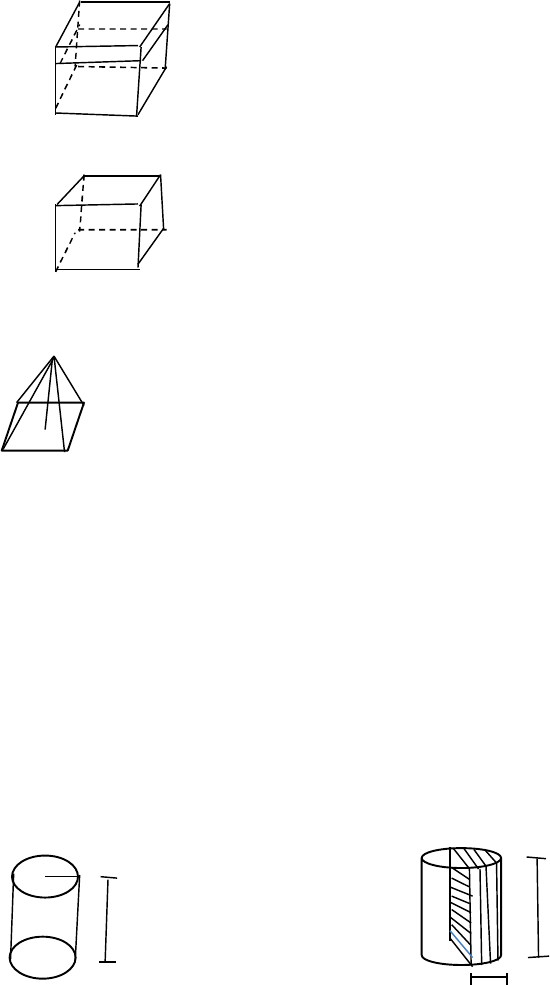 COLÉGIO DA POLÍCIA MILITAR - LOBATO DISCIPLINA: MATEMÁTICA PROF. CEZAR RAMOS LISTA DE EXERCÍCIOS – GEOMETRIA ESPACIAL - 2021 Ex 1: Em um aquário, um tanque para peixes tem a forma de um paralelepípedo retângulo de base quadrada e a água do seu interior ocupa 3/5 de sua capacidade. Considerando que esse tanque tem 3 m de altura e a aresta da base mede 4,5 m, determine quantos litros de água são necessários para que ele fique totalmente cheio. 3/5 h 3,5 m 4,5 m Ex 2: Calcule a diagonal, a área total e o volume do paralelepípedo abaixo. 3 2 2 Ex 3: A base de uma pirâmide de 6 m de altura é um quadrado de 8 m de perímetro. Calcule o seu volume. Ex 4: Dado o prisma triangular cuja aresta da base mede 3 m e sua altura 6 m, determine a sua área total e o seu volume. Ex 5: Uma lata de refrigerante tem a forma de um cilindro cuja altura mede 10 cm e o diâmetro da base mede 6,2 cm. Sendo π = 3,14, qual a capacidade da lata e a quantidade de metal utilizado na sua produção? Ex 6: Calcule a área lateral, a área total e o volume dos sólidos abaixo a) 1 m b) 15 cm 2 m 8 cm Ex 7: Um reservatório de água tem a forma de um cone reto circular invertido com raio igual a 3 m e altura 4 m. Ele está preenchido com água até a metade de sua altura, como ilustra a figura. B a) Qual o volume total do reservatório? 0 R=3 0’ r B’ 4m b) Qual o volume de água que ele contém? 2m A Ex 8: Calcule o volume de um cone cujo raio da base mede 4 m e cuja altura mede 5 m. Ex 09: Determine a medida do raio e a área da base de um cone de revolução de 6 m altura e cujo volume é 128π cm³. Ex 10: A geratriz de um cone equilátero mede 20 cm. Determine sua área lateral e seu volume. 20 cm h r Ex 11. Considere uma pirâmide hexagonal que tem 18 cm de altura e cuja aresta de base mede √ cm. .Para essa pirâmide, determine: a) A medida do apótema b) A medida do apótema da base ( m ) a c) A medida da aresta lateral ( l ) E D d) A área da base h ap e) A área lateral F 0 C f) A área total l l g) O volume A l B Ex 12: Uma esfera está inscrita num cubo cuja aresta mede 20 cm. Calcule a área da superfície esférica e o seu volume. Ex 13: Quantos brigadeiros ( bolinhas de chocolate ) de raio 0,5 cm podemos fazer a partir de um brigadeiro de raio 1 m? Ex 14: Duas esferas de chumbo, uma de 3 cm e outra de 6 cm de raio, fundem-se e formam outra esfera. Calcule o raio dessa nova esfera. Ex 15: Uma esfera tem 25π cm² de superfície. Em quanto devemos aumentar o raio para que a área passe a ser 64π cm²?