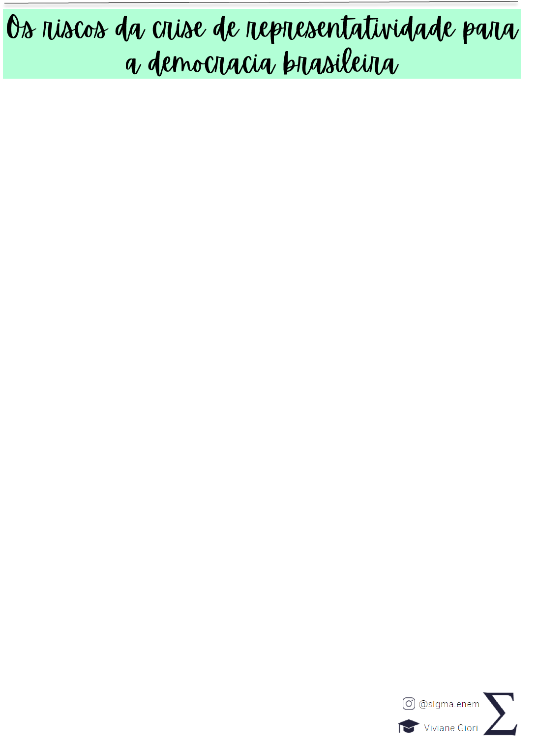 Autor: Viviane Giori Côco Ficou com alguma dúvida? Entre em contato com a gente nas redes ao lado. Em sua música “Que país é este?”, a banda Legião Urbana demonstra insatisfação com o quadro político brasileiro, que tornou o país irreconhecível para sua própria população. Apesar de ter sido lançada em 1987, ainda hoje a canção reflete a crise política existente no país, que decorre de diversos escândalos de corrupção, levando a nação a um estado de descrença política, e este torna-se grande ameaça ao regime democrático. Assim, faz-se necessário debater e analisar como esses aspectos intensificam os perigos da crise de representatividade para a democracia brasileira. Em primeiro lugar, o abandono e a decepção com a política pela sociedade brasileira é inegável. Essa situação pode ser observada desde as manifestações de 2013 até atingir seu ápice nas eleições de 2018, que bateu recordes de votos nulos e brancos, ultrapassando a taxa de 30%, de acordo com o G1. Isso decorre dos sucessivos escândalos de corrupção que acometem o Brasil, e, por ocorrerem na maioria dos partidos, os cidadãos brasileiros têm a sensação de que não há candidatos honestos, preferindo deixar de votar a eleger alguém que não o representa. Contudo, essa atitude é um equívoco, e vai de encontro ao ideal do diplomata brasileiro Rui Barbosa, que afirma que “quem não luta por seus direitos não é digno deles”, pois o voto é o direito primordial, e a partir dele conquista-se os demais benefícios. Outrossim, essa falta de participação popular e a falta de credibilidade nas instituições políticas ameaça a manutenção da democracia, porque estimula o surgimento de regimes autoritários. De fato, quando a população não encontra esperança alguma, ela é facilmente iludida por políticos oportunistas, que se mostram como salvadores da pátria, a partir de falsas promessas e de sentimento apelativo de mudança, mas suas reais aspirações são ao poder absoluto. Isso pode ser verificado em diferentes momentos da história, como a ascensão de Hitler na Alemanha e o implante do Estado Novo por Getúlio Vargas no Brasil, haja vista que ambos emergiram em contexto de descontentamento popular com a crise política instalada em suas respectivas épocas. Nesse sentido, dá-se início a um processo de demagogia – utilização de poder tirânico em nome do povo – que deve ser combatido. Logo, medidas são necessárias para a solução desse impasse. Para isso, cabe às ONGs, por meio da criação de um portal online, desenvolver vídeos, que devem ser realizados por profissionais de diversos grupos sociais, que informem e alertem os cidadãos de seus direitos e da importância da participação política, para que a população volte a exercer sua cidadania. Ademais, uma matéria sobre consciência política deve ser inserida na BNCC do Ensino Médio, a fim de despertar senso crítico nos jovens da nova geração. Com essas medidas, o Brasil, a partir da ação social, voltará a ser reconhecido por seu povo.