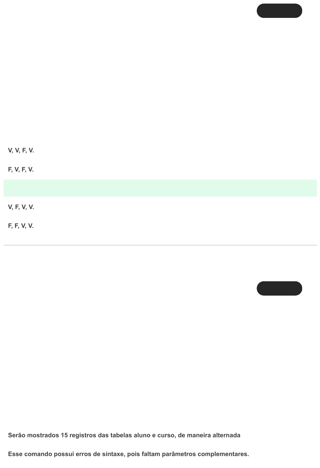 registros e a tabela curso possui 5 registros, após analisar o comando em destaque, escolha a alternativa