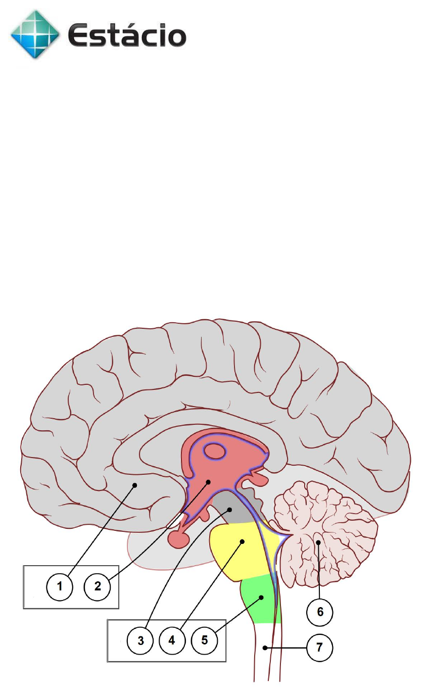 FACULDADE ESTÁCIO CURITIBA Curso: Psicologia Disciplina: Neuroanatomofisiologia Sistema nervoso central (SNC) - Medula espinhal - Estruturas encefálicas 1) Identifique corretamente as estruturas do Sistema Nervoso Central (SNC): 1. Telencéfalo 2. Diencéfalo 3. Mesencéfalo 4. Ponte 5. Bulbo 6. Cerebelo 7. Medula Espinhal a) As regiões 1 e 2 formam qual estrutura do SNC? Cérebro b) Quais são os lobos que constituem a estrutura 1? Frontal, Parietal, Temporal, Occipital e lobo da Ínsula c) Na região 1 encontramos as áreas corticais. Diferencie áreas primárias, secundárias e terciárias. Áreas primária: Áreas de PROJEÇÃO, que recebem ou originam informações, através de neurônios motores e sensitivos. Áreas secundárias: Áreas de ASSOCIAÇÃO, relacionadas com modalidade sensitiva ou de motricidade (motoras). Áreas terciárias: Áreas de ASSOCIAÇÃO, relacionadas com atividades psíquicas superiores, como memória, pensamento abstrato e comportamentos. d) Quais as 4 subdivisões da região 2 ? Tálamo, Hipotálamo, Epitálamo, Subtálamo e) As regiões 3, 4 e 5 formam qual estrutura do SNC? Tronco Encefálico f) As regiões 1, 2, 3, 4, 5 e 6 formam qual estrutura do SNC? Encéfalo g) Qual a origem embrionária de cada região? 1. Prosencéfalo 2. Prosencéfalo 3. Mesencéfalo 4. Rombencéfalo 5. Rombencéfalo 6. Rombencéfalo h) Qual a função de cada região? 1. Motoras, Sensoriais, Psíquicas. Audição, visão. 2. Motoras, sensoriais, emocionais. Controle de funções autônomas (viscerais). 3. Visão, audição e movimento dos olhos. 4. Controle da respiração e centro de transmissão de impulsos para o cerebelo. 5. Controle de funções autônomas (viscerais). Centro vital. 6. Motora, postura e equilíbrio. 7. Transmissão de informações do encéfalo para a periferia do corpo e vice-versa. i) Todas as estruturas são constituídas por substância branca e substância cinzenta. Qual a composição de cada uma destas substâncias? Como se dá a disposição destas substâncias nas estruturas no encéfalo e na medula espinhal? - Substância cinzenta: Composta principalmente por corpos celulares de neurônios. - Substância branca: Composta principalmente por axônios mielinizados. No encéfalo a substância branca está localizada na região interna e a substância cinzenta externamente. Já na medula espinal ocorre o inverso. 2) Lado esquerdo: Eu sou hemisfério esquerdo. Eu sou o cientista. Um matemático. Eu amo o que reconheço. Eu classifico. Eu sou exato. Linear. Analítico. Estrategista. Sou prático. Sempre no controle. Um mestre das palavras e linguagem. Realista. Eu calculo equações e brinco com números. Eu sou a ordem. Eu sou lógico. Eu sei exatamente quem eu sou. E do outro lado: Eu sou o hemisfério direito. Sou a criatividade. Um espírito livre. Sou paixão. Sou saudade. Sensualidade. Eu sou o som de gargalhadas. Eu sou o gosto. A sensação da areia nos pés descalços. Sou movimento. Cores vivas. Sou o anseio de pintar a tela em branco. Sou a imaginação sem limites. Arte. Poesia. Eu percebo. Eu sinto. Eu sou tudo o que eu queria ser." (Texto compilado e traduzido: http://blog.tarantis.com.br/wp- content/uploads/2011/02/mercedez- 1.jpg). Cada hemisfério cerebral, no geral, apresenta funcionalidades diferentes, entretanto, estes se correlacionam pela existência de fibras que partem de um hemisfério a outro, favorecendo a troca de informações. Qual a estrutura tem como função principal comunicar os hemisférios cerebrais? Corpo caloso. http://blog.tarantis.com.br/wp-content/uploads/2011/02/mercedez-%201.jpg http://blog.tarantis.com.br/wp-content/uploads/2011/02/mercedez-%201.jpg 3) O córtex cerebral, camada mais externa do cérebro de vertebrados, é o local de processamento neuronal. No córtex cerebral distinguem-se diversas áreas, com limites e funções relativamente definidos, chamadas áreas corticais. Sobre áreas corticais pode-se afirmar: a) O córtex somatossensorial (primário e secundário) está localizado no lobo frontal. b) Áreas de associação são responsáveis por receber ou originar informações. c) O córtex auditivo está localizado no lobo occipital. d) O córtex pré-frontal é uma área de associação terciária. e) O córtex motor primário está localizado no lobo parietal. 4) O SNC é composto pelas substâncias branca e cinzenta. Microscopicamente, a substância cinzenta corresponde à região de maior densidade de corpos celulares de neurônio, enquanto a substância branca possui grande quantidade de axônios mielinizados, estrutura condicionante do aspecto esbranquiçado. Em relação à disposição destas substâncias em diferentes estruturas do SNC, é correto afirmar: a) Na medula espinhal a substância cinzenta está localizada na parte externa da esta estrutura. b) Na medula espinhal, a substância branca é dividida em cornos anteriores e posteriores. c) Os cornos anteriores contêm corpos celulares de neurônios e são responsáveis por receber neurônios sensitivos. d) No encéfalo, o córtex é constituído por axônios mielinizados de neurônios. e) Os núcleos da base são porções de massas de substância cinzenta localizadas na base do telencéfalo. 5) O Sistema Nervoso Central, constituído pelo encéfalo e medula espinhal, é responsável por receber e processar informações. Em relação à medula espinhal e estruturas encefálicas qual sentença não está correta: a) Os núcleos centrais do cerebelo – denteado, emboliforme, globoso, fastigial – são porções de substância cinzenta incluídos na substância branca. b) O diencéfalo divide-se em tálamo, hipotálamo, subtálamo e epitálamo. c) No mesencéfalo, estrutura do tronco encefálico, encontramos a substância negra, responsável pela produção de dopamina. d) A formação reticular é composta por uma agregação difusa de neurônios, na parte central do tronco encefálico, que apresenta dentre suas funções a a