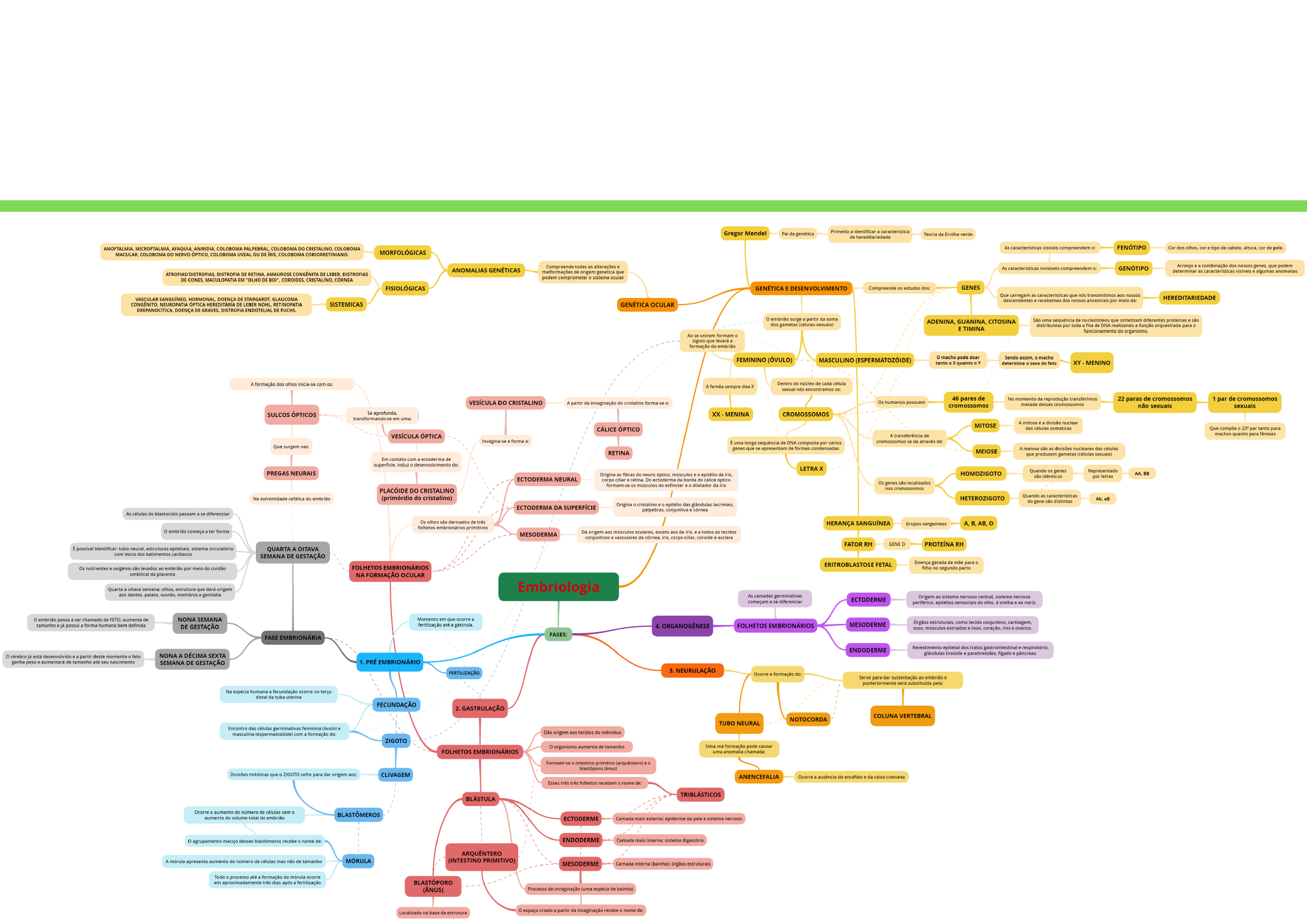 Professor Optometrista: Jose Escobar Acadêmica: Kananda Marques Amaro A embriologia é uma área da biologia que estuda o desenvolvimento embrionário dos organismos vivos, ou seja, desde a fecundação, formação do zigoto até que todos os órgãos do novo ser estejam completamente formados. Também são consideradas as etapas anteriores à gestação do embrião, uma vez que influenciam no processo. Embriologia e Desenvolvimento Ocular. A Embriologia Humana é a área que se dedica ao conhecimento sobre o desenvolvimento de embriões humanos, estudando as malformações e doenças congênitas. A embriologia clínica ou médica aos estudos sobre embriões em processos de reprodução assistida. Mapa Mental
