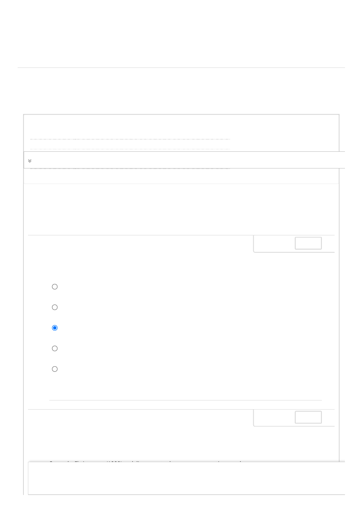 25/10/2021 20:02 Fazer teste: QUESTIONÁRIO UNIDADE IV – PLANEJAMENTO ... https://ava.ead.unip.br/webapps/assessment/take/launch.jsp?course_assessment_id=_846316_1&course_id=_181110_1&content_id=_2307739_… 1/4 Fazer teste: QUESTIONÁRIO UNIDADE IV PLANEJAMENTO ESTRATÉGICO 3027-60_57008_R_E1_20212_02 CONTEÚDO Informações do teste Descrição Instruções Várias tentativas Este teste permite 3 tentativas. Esta é a tentativa número 1. Término e envio Este teste pode ser salvo e retomado posteriormente. Suas respostas foram salvas automaticamente. a. b. c. d. e. PERGUNTA 1 A ameaça de novos entrantes dependerá das barreiras para se entrar em um determinado mercado. Esses são fatores que devem ser superados pelos novos entrantes, caso eles venham a competir com sucesso. Algumas barreiras típicas são, entre outras: Economias de escala, acesso a canais de distribuição, experiência, retaliação esperada, legislação e diferenciação. Economias de escala, capital de entrada, acesso a canais de distribuição, experiência, legislação e diferenciação. Economias de escala, capital de entrada, acesso a canais de distribuição, experiência, retaliação esperada, legislação e diferenciação. Capital de entrada, acesso a canais de distribuição, experiência, retaliação esperada, legislação e diferenciação. Economias de escala, capital de entrada, acesso a canais de distribuição, retaliação esperada, legislação e diferenciação. 0,25 pontos Salva a. b. PERGUNTA 2 A estratégia corporativa apresenta, como conteúdo, decisões abrangentes, como a de�nição das fronteiras da corporação (decisões sobre o escopo), o direcionamento das decisões da corporação para os relacionamentos entre as unidades de negócio e a determinação dos métodos que de�nem o grau e a forma de diversi�cação da corporação. Segundo Christensen (1999), o delineamento do escopo corporativo envolve três dimensões: No escopo produto-mercado – no escopo histórico – no escopo vertical. No escopo produto mercado no escopo geográ�co no escopo vertical 0,25 pontos Salva ? Estado de Conclusão da Pergunta: UNIP EAD BIBLIOTECAS MURAL DO ALUNO TUTORIAIS Clique em Salvar e Enviar para salvar e enviar. Clique em Salvar todas as respostas para salvar todas as respostas. CONTEÚDOS ACADÊMICOS http://company.blackboard.com/ https://ava.ead.unip.br/webapps/blackboard/execute/courseMain?course_id=_181110_1 https://ava.ead.unip.br/webapps/blackboard/content/listContent.jsp?course_id=_181110_1&content_id=_2307431_1&mode=reset https://ava.ead.unip.br/webapps/portal/execute/tabs/tabAction?tab_tab_group_id=_10_1 https://ava.ead.unip.br/webapps/portal/execute/tabs/tabAction?tab_tab_group_id=_27_1 https://ava.ead.unip.br/webapps/portal/execute/tabs/tabAction?tab_tab_group_id=_47_1 https://ava.ead.unip.br/webapps/portal/execute/tabs/tabAction?tab_tab_group_id=_29_1 https://ava.ead.unip.br/webapps/portal/execute/tabs/tabAction?tab_tab_group_id=_25_1 https://ava.ead.unip.br/webapps/login/?action=logout 25/10/2021 20:02 Fazer teste: QUESTIONÁRIO UNIDADE IV – PLANEJAMENTO ... https://ava.ead.unip.br/webapps/assessment/take/launch.jsp?course_assessment_id=_846316_1&course_id=_181110_1&content_id=_2307739_… 2/4 b. c. d. e. No escopo produto-mercado – no escopo geográ�co – no escopo vertical. No escopo produto – no escopo geográ�co – no escopo vertical. No escopo produto-mercado – no escopo geográ�co – no escopo horizontal. No escopo estratégico – no escopo geográ�co – no escopo vertical. a. b. c. d. e. PERGUNTA 3 Ao usar o modelo de Porter para entender as forças competitivas, é fundamental ter em mente os seguintes pontos: O modelo não deve ser usado no nível das unidades estratégicas de negócios, e sim no nível da organização como um todo, devido à diversidade das operações. O modelo deve ser usado no nível das unidades estratégicas de negócios, e não no nível da organização como um todo, devido à diversidade das operações. O modelo deve ser usado no nível das estratégias convertidas, e não no nível da organização como um todo, devido à diversidade das operações. O modelo deve ser usado no nível das unidades estratégicas de negócios, e não no nível da organização como um todo, devido à uni�cação das operações. O modelo deve ser usado no nível das unidades estratégicas de negócios e também no nível da organização como um todo. 0,25 pontos Salva a. b. c. d. e. PERGUNTA 4 As cinco forças de Porter podem ser usadas para obter ideias das forças e dos fatores que atuam no ambiente setorial de uma unidade de negócios que necessita de atenção especial para o desenvolvimento de um plano estratégico. O modelo deve ser usado como mais do que uma simples lista de fatores. As questões a seguir ajudam a focar nas implicações dessas forças para a organização. Aponte a alternativa incorreta. Quais fatores-chave no macroambiente estão direcionando a competição? É provável que as forças mudem de perspectiva? Como? Quais são as forças e as fraquezas da organização em relação às forças que importam para ela? O que os gestores podem fazer para in�uenciar as forças que afetam sua unidade de negócios? Quais fatores-chave no microambiente estão direcionando a competição? 0,25 pontos Salva PERGUNTA 5 Deve-se levar em conta que todas as estratégias estudadas têm seus riscos. Adotar uma estratégia competitiva não é garantia de sucesso. A seguir, serão listados os riscos possíveis para o fracasso de uma estratégia de custos 0,25 pontos Salva Estado de Conclusão da Pergunta: Clique em Salvar e Enviar para salvar e enviar. Clique em Salvar todas as respostas para salvar todas as respostas. 25/10/2021 20:02 Fazer teste: QUESTIONÁRIO UNIDADE IV – PLANEJAMENTO ... https://ava.ead.unip.br/webapps/assessment/take/launch.jsp?course_assessment_id=_846316_1&course_id=_181110_1&content_id=_2307739