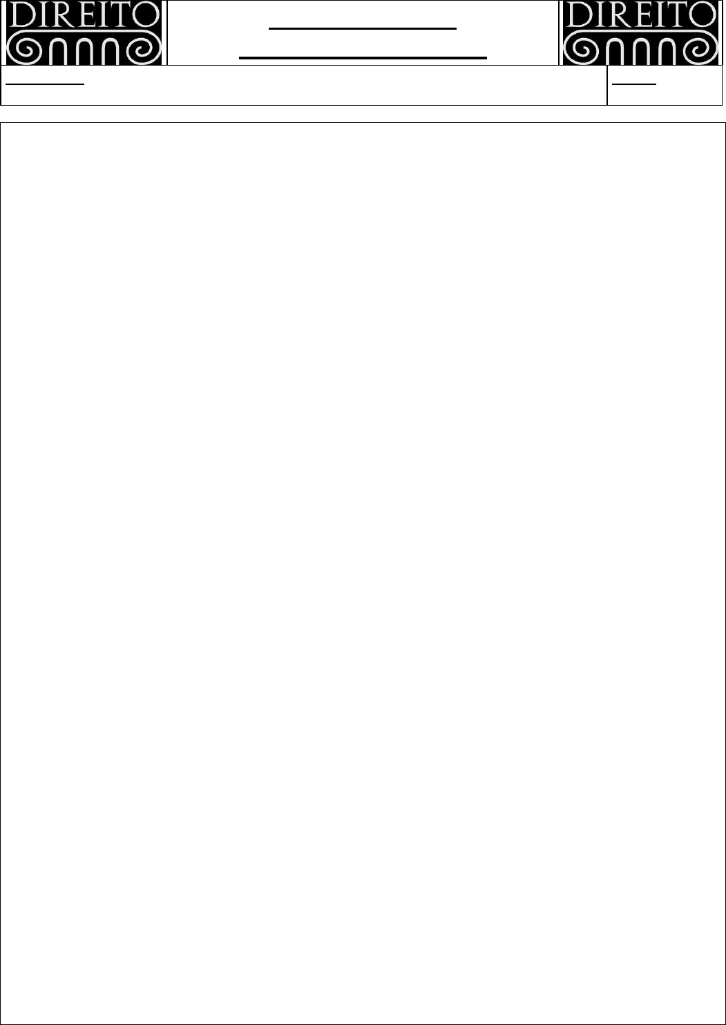 � INCLUDEPICTURE "http://t0.gstatic.com/images?q=tbn:ANd9GcTlzEsfAOs7FECPBSYbP4fZ1u_R0PVj8ClaiZWCstsE3GSAzZYC" \* MERGEFORMATINET ����Waldeck Lemos Questões & Gabarito�� INCLUDEPICTURE "http://t0.gstatic.com/images?q=tbn:ANd9GcTlzEsfAOs7FECPBSYbP4fZ1u_R0PVj8ClaiZWCstsE3GSAzZYC" \* MERGEFORMATINET �����Disciplina: Direito Processual Civil�Folha: �PAGE \* MERGEFORMAT �1� de �NUMPAGES \* MERGEFORMAT �3��� � INCLUDEPICTURE "http://t0.gstatic.com/images?q=tbn:ANd9GcTlzEsfAOs7FECPBSYbP4fZ1u_R0PVj8ClaiZWCstsE3GSAzZYC" \* MERGEFORMATINET ����Waldeck Lemos Questões & Gabarito�� INCLUDEPICTURE "http://t0.gstatic.com/images?q=tbn:ANd9GcTlzEsfAOs7FECPBSYbP4fZ1u_R0PVj8ClaiZWCstsE3GSAzZYC" \* MERGEFORMATINET �����Disciplina: Direito Processual Civil�Folha: �PAGE \* MERGEFORMAT �3� de �NUMPAGES \* MERGEFORMAT �3��� Questão cód. 18568 1) Assinale a alternativa correta: Constitui defesa indireta peremptória a alegação de: a) nulidade de citação. b) litispendência. c) incompetência do juiz. d) falta de autorização para causa. Questão cód. 19425 2) O devedor promove ação para declarar a inexistência de uma obrigação de pagar quantia certa em face do credor. A sentença é de procedência e transita em julgado. Na ação em que o credor ingressa posteriormente, visando a condenação do fiador da obrigação objeto do primitivo processo, o fiador alega exclusivamente a existência da sentença precedente proferida em processo do qual ele não foi parte. a) O juiz acolhe defesa do fiador e extingue o feito sem julgamento do mérito, porquanto incide o óbice da coisa julgada nada obstante ele não ter sido parte no processo primitivo. b) O juiz rejeita a defesa do fiador por entender que não há o óbice da coisa julgada já que o fiador não foi parte no processo primitivo e extingue o feito com sentença de procedência já que nenhuma outra defesa o réu alegara. c) O juiz profere sentença de improcedência, porquanto entende que está vinculado a tomar a declaração contida na sentença precedente como premissa para a sua decisão, nada obstante o fiador não ter sido parte no processo primitivo. d) O juiz rejeita a defesa do fiador por entender que não há o óbice da coisa julgada já que o fiador não foi parte no processo primitivo e manda prosseguir na instrução do feito, determinando que o autor especifique provas. Questão cód. 20236 3) ASSINALE A ALTERNATIVA CORRETA. O PRAZO PARA O MENOR IMPÚBERE PROPOR AÇÃO RESCISÓRIA É DE: a) 5 anos. b) 4 anos. c) 3 anos d) 2 anos. Questão cód. 20773 4) César aciona Caio, pelo procedimento comum ordinário, requerendo sua condenação ao pagamento de danos morais e patrimoniais sofridos. César, no decorrer da demanda, pretende renunciar ao pedido de danos morais, o qual somente será deferido nas seguintes condições: a) após a resposta do réu, com a anuência deste; b) após a audiência de conciliação, com anuência do réu e do juiz; c) após a audiência de conciliação, em nenhuma hipótese; d) em qualquer fase do processo, independente da anuência do réu. Questão cód. 21076 5) Constituem modalidades de intervenção de terceiros : a) litisconsórcio, assistência e denunciação de lide; b) oposição, nomeação à autoria e chamamento ao processo; c) litisconsórcio, denunciação da lide e oposição; d) assistência , oposição e litisconsórcio. Questão cód. 22121 6) ASSINALE A ALTERNATIVA CORRETA. I - A execução pode ser promovida pelo credor e pelo Ministério Público nos casos prescritos em lei. Podem também promover a execução ou nela permanecer o espólio, os herdeiros ou os sucessores do credor, sempre que, por morte deste, lhes for transmitido o direito resultante do título executivo. O cessionário, quando o direito resultante do título executivo lhe foi transferido por ato entre vivos e o sub-rogado, nos casos especificados na lei. II - São sujeitos passivos na execução o devedor, reconhecido como tal no título executivo: o espólio, os herdeiros ou os sucessores do devedor; o novo devedor, que assumiu, com o consentimento do credor, a obrigação resultante do título executivo; o fiador judicial e o responsável tributário, assim definido na legislação própria. III - É faculdade do credor desistir de toda execução ou de algumas medidas executivas. IV - O credor não pode acumular várias execuções fundadas em títulos diferentes, ainda que, contra o mesmo devedor. V - Dentre outros, também a letra de câmbio, a nota promissória, a duplicata, a debênture e o cheque se enquadram como títulos executivos extrajudiciais. a) I e II estão incorretas. b) III e IV estão incorretas. c) apenas a IV está incorreta. d) Todas estão corretas. Questão cód. 22191 7) Com relação aos princípios do processo civil, pode-se dizer que a) o princípio do contraditório alcança expressamente apenas o processo penal e, indiretamente, o processo civil. b) a garantia do jus actionis é manifestação do devido processo legal. c) a existência do tribunal é fundamental para a caracterização do “tribunal de exceção”, face ao princípio do juiz natural. d) as prerrogativas processuais contidas no art. 188 do CPC infringem o princípio constitucional da igualdade. Questão cód. 22213 8) ASSINALE A ALTERNATIVA CORRETA: a) o adquirente ou cessionário da coisa litigiosa que, com o consentimento da parte contrária, passa a aluar no processo, ostenta a qualidade de substituto processual do alienante ou cedente; b) a ação de embargos de terceiro não é via processual idônea para obter-se a anulação de negócio jurídico, fundada em fraude contra credores; c) faz prova da declaração e do fato declarado o documento particular que contiver declaração de ciência relativa a determinado fato; d) na ação, que tenha por objeto o cumprimento de obrigação de fazer ou não-fazer, o juiz, se consi