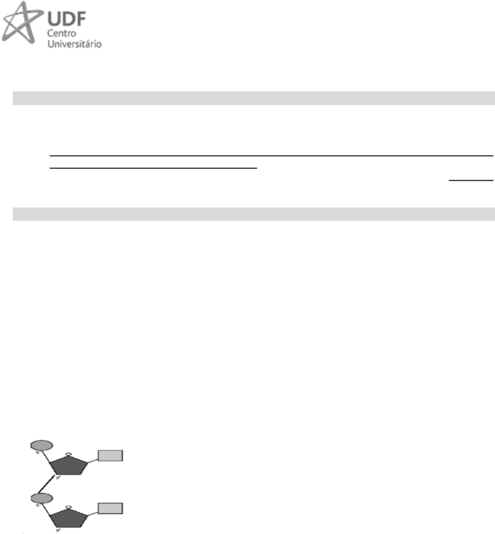 Genética e Embriologia - Profa. Cristiane Teixeira Estudo Dirigido I INSTRUÇÕES: a • Estas questões são apenas para ajudá-los a estudar Prova I porém, não deve ser entendido com única fonte de estudos. • Questões que não foram abordadas aqui podem ser cobradas na prova. • Este exercício poderá ser respondido individualmente ou em grupo. Conferir data de entrega e alunos por grupo nas instruções do exercício. • Isto não é uma prova. Não respondam apenas baseados em seus conhecimentos. Utilize SEMPRE um livro texto como apoio. QUESTÕES: a 1. Conceitue: a. DNA b. Cromatina c. Cromossomo d. Heterocromatina e. Eucromatina 2. Quais são os componentes de um nucleotídeo? 3. Diferencie purinas de pirimidinas. Que bases nitrogenadas representam as mesmas? 4. Descreva as Regras de Chargaf. 5. Observe a imagem abaixo responda: a. Que tipo de ligação mantem um nucleotídeo ligado ao outro em uma mesma fita? b. Quais as diferenças entre nucleotídeos de DNA e RNA? 6. Esquematize a molécula de DNA dupla fita. 7. Qual é a função das ligações Hidrogênio na molécula de DNA? 8. O que são proteínas histonas? Para que elas servem? 9. O que é um nucleossomo? 10. Analisando um gene no DNA viral com 12.300 nucleotídeos, detectou-se que 16% dos nucleotídeos eram de Adenina. Relacionando esse valor com o emparelhamento específico das bases, quantos nucleotídeos serão encontrados para as outras bases nitrogenadas (responda em número de nucleotídeos e não em porcentagem)? 11. Descreva o Dogma da Biologia Molecular citando onde na célula eucariota cada evento ocorre. Genética e Embriologia - Profa. Cristiane Teixeira 12. Qual a finalidade da transcrição? Como ela ocorre? 13. Descreva detalhadamente o processo de Tradução? 14. Qual o significado do “códon”? 15. O que é anti-códon? Onde ele se encontra? 16. O que é código genético? Por que dizemos que ele é degenerado? 17. Qual a principal função do Ribossomo? Como ele é formado? 18. Descreva as principais funções dos RNAs abaixo: a. RNAmensageiro b. RNAribossomal c. RNA transportador 19. Dê nome às estruturas da imagem abaixo: 20. Considere a fita de DNAcodificante abaixo: 5’ A T T A C C C C G G G A T T A A C G G 3’ a. Qual seria a sequência do RNA transcrito? Genética e Embriologia - Profa. Cristiane Teixeira 21. Por que a tradução inicia-se na primeira sequencia AUG e termina no primeiro códon de finalização encontrado? 22. Identifique qual das fitas abaixo é o DNAmolde sabendo que o RNA transcrito possui a sequência: 5’ AUAUAC 3’ 5’ C C T A T A T A C C G G 3’ 23. Dada a sequência do DNA codificante abaixo, determine a sequência de aminoácidos da proteína produzida. Use o quadro do código genético (quadro 1). Gene (DNACodificante): 5´CCTACTATGGCTAATCGTCCTTTTACTTGTTAACGTCTGGTG3´ 24. Dada a sequência do DNA molde abaixo, determine a sequência de aminoácidos da proteína produzida. Use o quadro do código genético (quadro 1). Gene (DNAMolde): 3´CCTAGTATGTACGCTAATCGTCCTTTTACTTGTTAAATTCGTCTT5´ 25. Dada a molécula de RNA mensageiro abaixo, complete a tabela abaixo: RNA mensageiro A U G C U C C C C U G G U A A Sequência de aminoácidos Sequência de nucleotídeos de DNA codificante Sequência de nucleotídeos de DNA molde Sequência de nucleotídeos dos RNA transportador Quadro 1 – Código Genético 3’ G G A T A T A T G G C C 5’ Genética e Embriologia - Profa. Cristiane Teixeira 26. Como ocorre o processo de Duplicação do DNA? Quando este processo ocorre na célula? 27. O que significa número haploide de uma espécie? Qual é o número haploide da espécie humana? 28. O que significa uma espécie ser diploide? 29. Diferencie cromossomos homólogos de cromátides-irmãs. 30. Defina: a) gene, b) alelo, c) Homozigoto d) Heterozigoto Bibliografia a ser consultada: • GRIFFITHS, Anthony F., WESSLER, Susan R., CARROLL, Sean B., DOEBLEY, John. Introdução à Genética, 11ª edição. Guanabara Koogan, 06/2016. [Minha Biblioteca]. • SNUSTAD, D. Peter, SIMMONS, Michael J. Fundamentos de Genética, 7ª edição. Guanabara Koogan, 01/2017. [Minha Biblioteca]. • PIERCE, Benjamin A. Genética - Um Enfoque Conceitual, 5ª edição. Guanabara Koogan, 04/2016. [Minha Biblioteca].