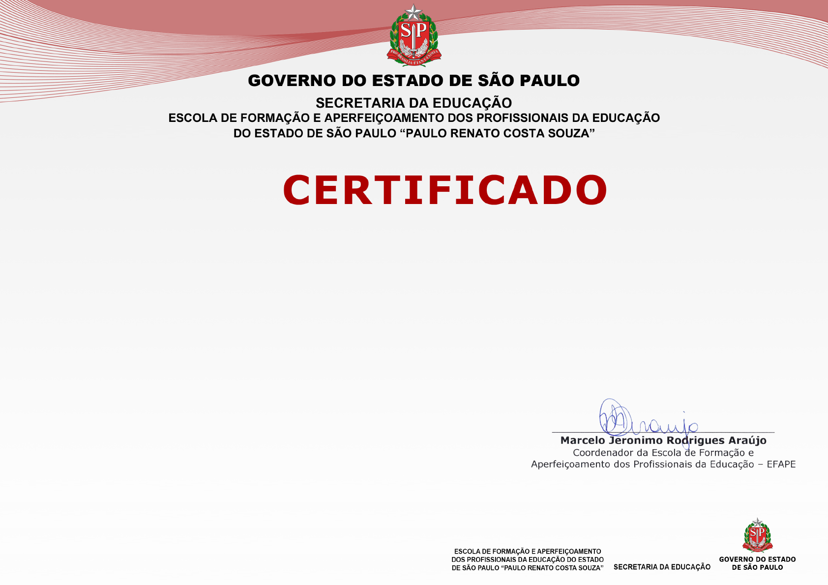 Certificamos que PEDRO ANTONIO DA CONCEIÇÃO, CPF 141.585.348-79, RG 22385797, concluiu o Curso de Atualização "EJATEC - Práticas de Orientação de Estudos - 1ª edição/2021", realizado no período de 17/07/2021 a 30/08/2021, conforme Portaria de Homologação EFAPE de 26/10/2021, publicada no DOE de 27/10/2021. Carga Horária: 30 Horas Aproveitamento: Satisfatório Frequência: 100% São Paulo, 29 de outubro de 2021. Para verificar a autenticidade deste documento, acesse: http://www.escoladeformacao.sp.gov.br/autenticidade/ e digite o código de validação: 185031.32.3496316