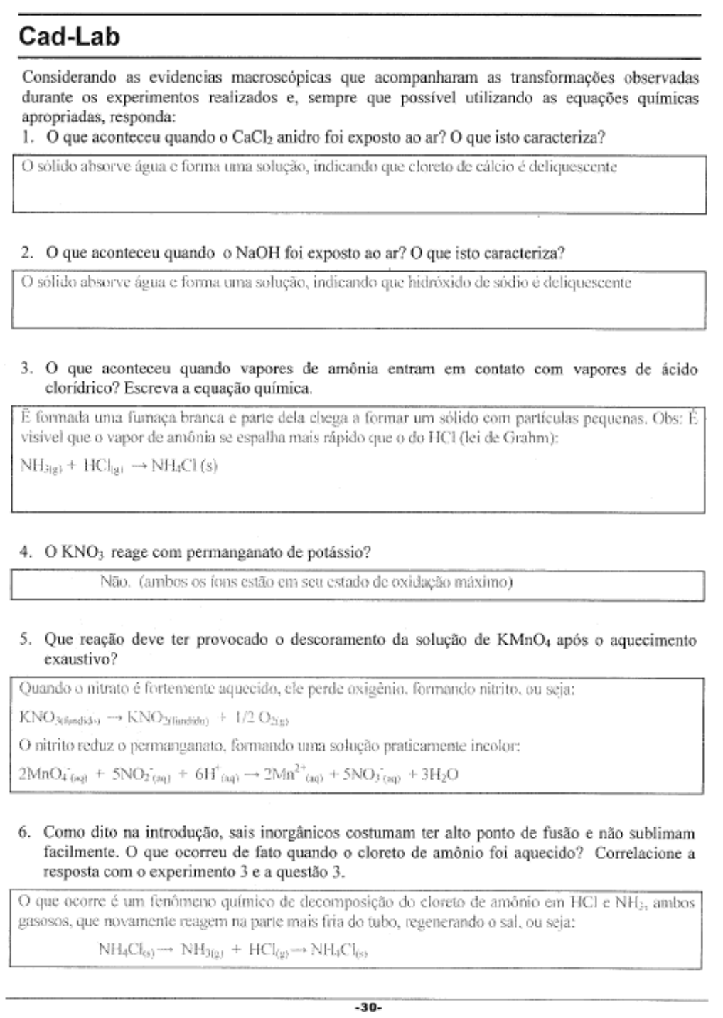 Roteiro 04 – Propriedades e Transformações de Compostos Inorgânicos