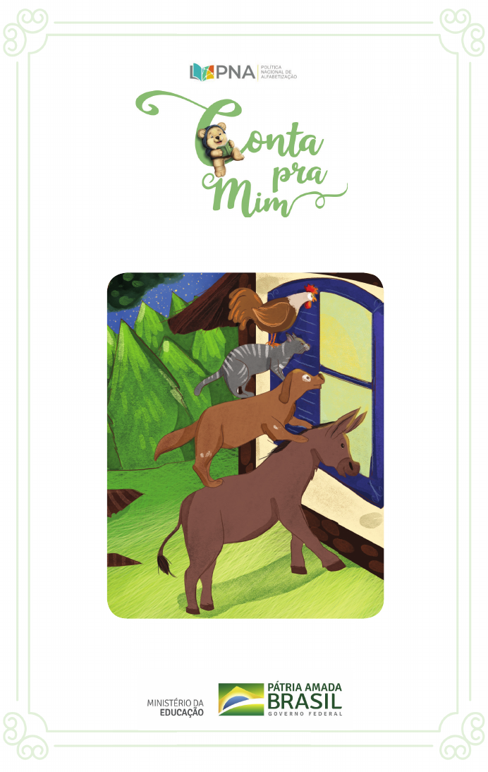 Os Músicos de Bremen Série Ficção Contos de Fadas Os Músicos de Bremen Coleção Conta pra Mim Série Ficção Contos de Fadas Dados Internacionais de Catalogação na Publicação (CIP) de acordo com ISBD M987 Os músicos de Bremen [recurso eletrônico] / organizado por Ministério da Educação – MEC ; coordenado por Secretaria de Alfabetização - Sealf. – Brasília, DF : MEC/Sealf, 2020. 16 p. : il. ; PDF ; 15,2 MB. – (Coleção Conta pra Mim) ISBN: 978-65-87026-57-2 (Ebook) 1. Literatura infantil. I. Ministério da Educação – MEC. II. Secretaria de Alfabetização - Sealf. III. Título. IV. Série. 2020-1024 CDD 028.5 CDU 82-93 Elaborado por Vagner Rodolfo da Silva - CRB-8/9410 Índice para catálogo sistemático: 1. Literatura infantil 028.5 2. Literatura infantil 82-93 A Coleção Conta pra Mim é dedicada à família — mães, pais, fi lhas, fi lhos, avós, avôs... Neste livro, vamos mergulhar no mundo mágico dos contos de fadas, com seus mistérios, desafi os e conquistas. Contos de fadas são uma ótima forma de estimular a imaginação da criança, ao apresentá-la a um universo em que a coragem, a solidariedade e o perdão são as grandes armas dos heróis. Viajar por esse universo na companhia da família será com certeza uma experiência que vocês guardarão por toda a vida. Sejam todos muito bem-vindos! Infância e leitura — o caminho de uma boa aventura. Autoria: Ricardo Moreira Figueiredo Filho Ilustrações: Vanessa Alexandre Edição: Marismar Borém Direção geral e curadoria: Wiliam Ferreira da Cunha Supervisão técnica e de conteúdo: Carlos Francisco de Paula Nadalim Revisão de texto: Felipe Salomão Cardoso e Adriana Araújo Figueiredo Publicado em 2020 pelo Ministério da Educação (MEC) em cooperação com a Editora Cora e com a Organização das Nações Unidas para a Educação, a Ciência e a Cultura (UNESCO), no âmbito do Projeto 914BRZ1074 - 914BRZ1074.3 sob o contrato ED00217/2020. © MEC 2020 Esta publicação está disponível em acesso livre ao abrigo da licença Atribuição 4.0 Internacional (CC BY 4.0) (https://creativecommons.org/licenses/by/4.0/deed.pt_BR). Ao utilizar o conteúdo da presente publicação, os usuários aceitam os termos de uso do Repositório de Domínio Público do MEC (http://www.dominiopublico.gov.br/pesquisa/PesquisaObraForm.jsp). Era uma vez um burrinho que tra- balhava duro, puxando carroças pesa- das. Com o passar dos anos, começou a se sentir cada vez mais fraco. Dispensado pelo patrão, o burrinho foi à cidade de Bremen pleitear uma vaga de cantor em uma banda de música. 3 4 Já a caminho, encontrou um cão de caça esmorecido, que estava deitado no chão. Então, perguntou: — Cão, por que está tão triste? Após um longo suspiro, o cão respon- deu: — Envelheci e não consigo caçar como antes. Por essa razão, meu dono resolveu me sacrificar. O burrinho contou-lhe sobre seus pla- nos musicais, convidando-o a participar. O cão ficou animadíssimo e seguiu com seu novo amigo. 5 Alguns minutos depois, viram um gato muito triste e indagaram: — Gato, qual o motivo de tanto desâni- mo? E o felino ronronou: — Com o passar dos anos, perdi a destre- za em capturar camundongos. Por causa disso, minha dona tentou me afogar. O burro e o cachorro contaram que estavam a caminho de Bremen, que iri- am trabalhar como músicos e que o bi- chano, mestre em serenatas, seria um ótimo parceiro. O gato adorou a ideia, e os três companheiros seguiram viagem. 6 7 Quando o sol já se despedia, encontraram um galo cabisbaixo. Ao perguntarem sobre o que se passava, ele cacarejou: — A proprietária da fazenda re- ceberá convidados para o almoço e ordenou que o cozinheiro passasse a faca em mim. Escapei, para não parar na panela! 8 O burro convidou-o para compor o gru- po: — Sua experiência como barítono será muito útil ao nosso quarteto. O galo apreciou a ideia, e os músicos prosseguiram para a cidade de Bremen. 9 Como já estava anoitecendo, pararam na fl oresta para dormir. O galo, no alto de uma árvore, percebeu ao longe uma luzinha a piscar. Era o sinal de que havia uma casa ali por perto. Avisou os colegas, que resolveram verifi car. 10 Pela janela, observaram uma mesa far- ta e cinco ladrões que comiam e bebiam. Então, imaginaram um plano para afastarem aqueles homens dali. Com toda a força de seus pulmões, fariam um estron- doso concerto. O alto volume da música quebraria o vidro. Assim, os músicos pu- lariam a janela e correriam até o centro da sala, para expulsarem os malfeitores. 11 Dito e feito. Apavorados, os ladrões se levantaram e fugiram. Assim, os qua- tro amigos se sentaram à mesa e devo- raram tudo. Depois, apagaram as luzes e procuraram um lugar aconchegante para dormir. Passada a meia-noite, os ladrões re- solveram voltar. Com medo de fantas- mas, o chefe do bando ordenou que so- mente um deles entrasse. 12 Silenciosa e sombria, a casa guardava mistérios... Ao entrar, o larápio, atraído por uma espécie de faísca, aproximou-se dela. Na verdade, eram os olhos do gato. Sentindo-se ameaçado, o felino avançou e arranhou o rosto do ladrão, que correu até a porta do fundo. O cão, que lá estava deitado, deu-lhe uma mordida na perna. Aos berros, o ladrão fugiu para o quintal, onde levou um coice do burro. E o galo, assistindo do telhado àquela cena, can- tou bem alto. 13 O ladrão escapou em disparada e disse aos demais que uma bruxa arranhou seu rosto, um homem es- faqueou sua perna, um monstro lhe deu pauladas, e um juiz ordenou que os soldados o conduzissem ao cárcere. 14 Por isso, os ladrões nunca mais se atreveram a voltar. E os quatro músicos passaram a viver naquela casa e foram felizes para sempre. Conversa entre adultos e crianças antes, durante e depois da leitura em voz alta. Leitura Dialogada O que é? Fortalecer os laços afetivos entre pais e fi lhos. Quais são os benefícios? Contribuir para a alfabetização e reforçar a aprendizagem es
