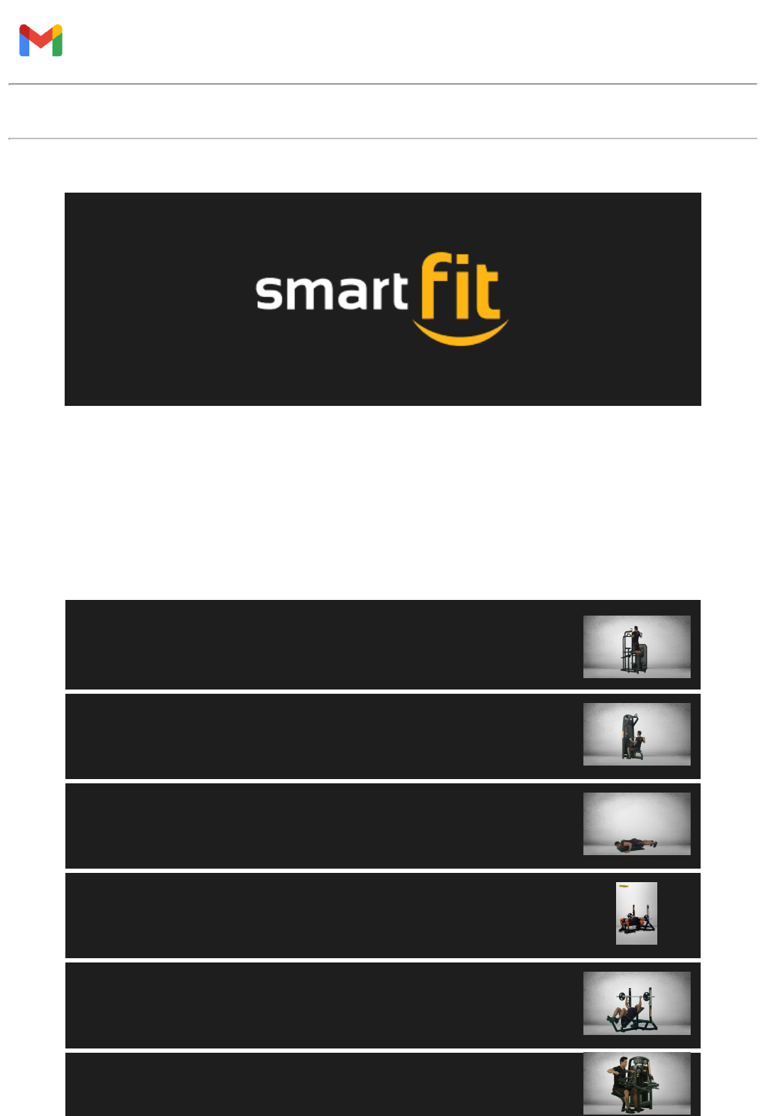 Smart Fit - Meu treino 2 mensagens <no-reply@smartfit.com.br> ter, 29 de dez de 2020 às 17:25 Para: carlos.edalves@catolica.edu.br Meu treino Montado por Matheus Felipe Sousa Costa da Asa Norte 4 Treino A Funcionais, Lombar, Pernas, Abdômen, Tríceps, Bíceps, Dorsal, Peitoral barra fixa no graviton aberta 61 equipamento 3x series 6 a 10 repetições 30' a 60' intervalo puxada polia barra frente 34 equipamento 3x series 12 a 15 repetições 30' a 60' intervalo flexão de braços 3x series 15 a 20 repetições 30' a 60' intervalo supino livre reto 27 equipamento 3x series 12 a 15 repetições 30' a 60' intervalo supino livre inclinado 28 equipamento 3x series 12 a 15 repetições 30' a 60' intervalo remada máquina 30 3x 12 a 15 30' a 60' equipamento series repetições intervalo rosca barra w scott 54 equipamento 3x series 12 a 15 repetições 30' a 60' intervalo tríceps polia testa 62 equipamento 3x series 12 a 15 repetições 30' a 60' intervalo abd. remador 3x series 12 a 15 repetições 30' a 60' intervalo abd. supra solo 3x series 12 a 15 repetições 30' a 60' intervalo Treino B Funcionais, Lombar, Pernas, Abdômen, Tríceps, Bíceps, Dorsal, Peitoral agachamento máquina 11 equipamento 3x series 12 a 15 repetições 30' a 60' intervalo leg press 45 09 equipamento 3x series 12 a 15 repetições 30' a 60' intervalo gêmeos no leg 45 09 equipamento 3x series 12 a 15 repetições 30' a 60' intervalo cadeira extensora 02 equipamento 3x series 12 a 15 repetições 30' a 60' intervalo cadeira flexora 03 equipamento 3x series 12 a 15 repetições 30' a 60' intervalo cadeira abdutora 04 equipamento <no-reply@smartfit.com.br> ter, 29 de dez de 2020 às 17:30 Para: carlos.edalves@catolica.edu.br [Texto das mensagens anteriores oculto]