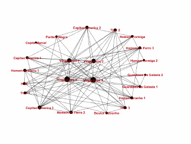 Estudo das redes sociais entre personagens dentro do universo cinematográfico Marvel André K. de Castro1, Gabriel A. Simioni1, Gabriel C. Cardoso1, and Leonardo G. Jacometti1 *Universidade Federal do ABC Resumo - O Universo Cinematográfico Marvel (UCM) deu fim, recentemente, a uma sequência de 22 filmes. Com filmes entre as maiores bilheterias da história, o UCM tem centenas de person- agens que aparecem em diferentes filmes e se relacionam entre si. Este estudo busca compreender a ligação entre os diversos filmes e personagens aplicando os conceitos da teoria dos grafos e de redes complexas, além de analisar quais personagens mais aparecem, quais são os favoritos do público e quais são classifi- cados como mais importantes. Para fazer essas análises, foram selecionados os personagens que são classificados como princi- pais no site da Marvel, além de todos os filmes, e foram feitos dois grafos no software Gephi. As análises foram feitas a partir dos conceitos de redes complexas, comparando-os com tabelas feitas no excel com dados coletados em pesquisas. I. Introdução O Universo Cinematográfico da Marvel (UCM) é uma franquia de mídia estadunidense e um universo compar- tilhado, centrado em uma série de filmes de super-heróis, produzido pela Marvel Studios. Iniciado com o aclamado Homem de Ferro em 2008, os estúdios Marvel desde então tornaram sua franquia um ícone cultural, reconhecida e celebrada ao redor do mundo. Com mais de 22 filmes de sucesso e inúmeros person- agens adaptados de suas origens nas HQ, o UCM apresenta uma diversa e expansiva gama de personagens, sendo seu principal atrativo sua tendência e capacidade de conectar estes e as produções em que aparecem. Após mais de uma década de expansão, essa rede de relações entre filmes e figuras cresceu proporcionalmente, devido aos frequentes e abrangentes crossovers 1. Portanto, analisando a complexidade apresentada por esse universo, o desafio desse estudo mostrou-se ser o en- tendimento de como os personagens e suas construções so- ciais se comportam diante de suas conexões principais, fo- mentando todos os acontecimentos e explicando a linha de tempo da trama. As redes estudadas focaram em dois as- pectos principais. O primeiro diz respeito à frequência de cada personagem nos filmes feitos, definindo sua populari- dade e empatia por parte dos telespectadores e desse modo 1Eventos em que personagens de diferentes filmes se encontram. podendo caracterizar aquele mais querido. Já o segundo se refere ao personagem mais influente de toda a trama, ou seja, durante os 12 anos percorridos. A fim de obter um melhor entendimento e clareza desses aspectos, foi preciso utilizar a teoria dos grafos(1) para analisar e modelar as redes, criando 2 grafos diferentes. II. Metodologia Neste estudo, os dados foram coletados no site oficial da Marvel(2) e em pesquisas no Google Forms colocadas no Facebook e grupos no Whatsapp. Além disso, para ver se há conexões entre personagens de diferentes filmes, usamos o site “The Straits Times”(3), que mostra os personagens que já se relacionaram no UCM e qual o tipo de relação. A partir deste site, tendo as conexões entre os filmes e os personagens, construimos 2 grafos, a partir do software Gephi. Com as in- formações das pesquisas no Google Forms, foram feitas duas tabelas no excel, para que se possa relacionar os grafos com o resultado das pesquisas. III. Resultados A. Personagens comuns entre filmes Fig. 1. Grafo de personagens em comun entre os filmes. Neste grafo, os 22 filmes foram modelados como os vér- tices, e os personagens em comum entre eles como as arestas. | August 7, 2019 | 1–8 Desse modo, se dois filmes tem algum personagem em co- mum, uma aresta entre eles foi traçada. Utilizando ferramen- tas no Gephi, foi possível calcular o diâmetro do grafo (2), o grau médio (4,54) e o comprimento médio de caminho (1,58). Além disso, foi possível calcular os 5 filmes com maior grau de vértice, centralidade de intermediação e centralidade de proximidade, como está mostrado a seguir. Tabela I. Centralidade de Proximidade do Grafo 1 # Filme Centralidade de Proximidade 1 Vingadores 4 1.0 2 Vingadores 3 0,95 3 Vingadores 2 0,80 4 Vingadores 1 0,75 5 Capitão América 3 0,72 Tabela II. Grau do Grafo 1 # Filme Grau 1 Vingadores 4 21 2 Vingadores 3 20 3 Vingadores 2 17 4 Vingadores 1 14 5 Capitão América 3 14 Tabela III. Centralidade de Intermediação do Grafo 1 # Filme Centralidade de Intermediação 1 Vingadores 4 55,3 2 Vingadores 3 38,3 3 Vingadores 2 13,98 4 Vingadores 1 7,55 5 Capitão América 7,43 B. Interações entre os personagens Fig. 2. Grafo de releções entre personagens. Neste grafo, selecionamos aqueles personagens que a Marvel coloca em seu site como os principais ao longo dos 22 filmes como sendo os vértices, e as interações entre eles como as arestas. Se dois personagens tiveram alguma in- teração ao longo dos filmes, traça-se uma aresta. Também utilizamos as ferramentas do Gephi para calcular o diâmetro do grafo (4), o grau médio (13,59) e o comprimento médio de caminho (2,14). Assim como no grafo anterior, listamos os 5 personagens com maior grau de vértice, centralidade de intermediação e centralidade de proximidade. Além disso, foram feitas duas pesquisas populares no Google Forms para saber a opinião de qual o personagem preferido e aquele que as pessoas acham mais importante. Todos os resultados são mostrados a seguir. Tabela IV. Centralidade de Proximidade do Grafo 2 # Personagem Centralidade de Proximidade 1 Thor 0,687 2 Homem de Ferro 0,647 3 Thanos 0,636 4 Capitão América 0,631 5 Capitã Marvel 0,616 Tabela V. Centralidade de Intermediação do Grafo 2 # Personagem Centralidade de Intermediação 1 Thor 487 2 Homem de Ferro 300 3 Nick Fury 269 4 Capitã Marvel 251 5 Homem-Formiga 246 Tabela VI. Grau do Grafo 2 # Personagem Grau 1 Thor 44 2 Homem de Ferro 35 3 Thanos 34 4 Capitão América 33 5 