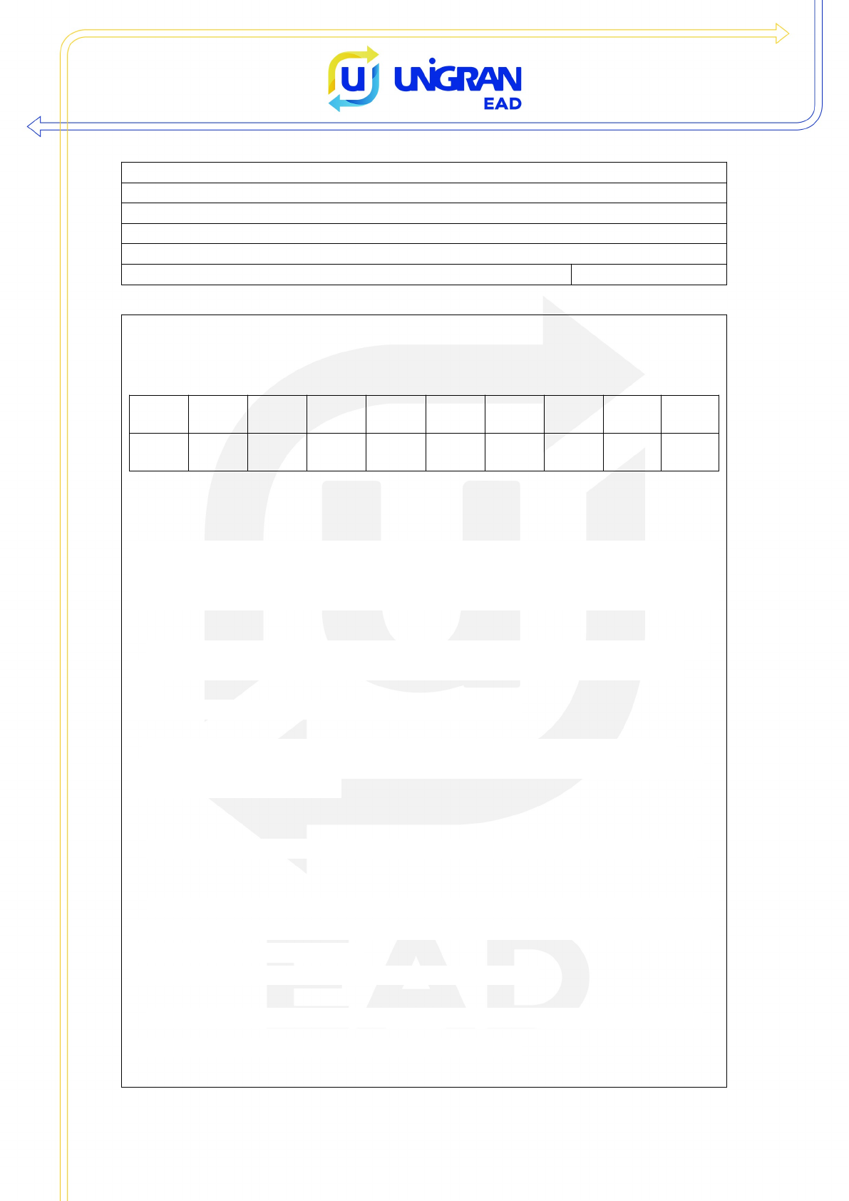 Curso: TECNOLOGIA EM AGRONEGÓCIOS Semestre: 2º Disciplina: MATEMÁTICA APLICADA AO AGRONEGÓCIO Profª Mestre Vera Fátima Corsino de Almeida ATIVIDADE AVALIATIVA ESPECIAL (AAE) 2 - referente as aulas 5 a 8 Nome: RGM: Assinale as respostas corretas das questões abaixo e preencha o gabarito: 1 2 3 4 5 6 7 8 9 10 Obs: Cada questão vale 1,0 (um) 1.Qual será o capital que em 9 meses, a 6% ao mês, renderá R$32400,00 de juros simples? A. R$ 60.000,00 B. R$ 40.000,00 C. R$ 36.000,00 D. R$ 180.000,00 2. Pedro pediu R$ 3.000,00 emprestados para pagar depois de 5 meses, à taxa de 3% ao mês, no regime de juro simples. Ao fim desse período, Pedro deverá pagar, de juro: A. R$160,00 B. R$360,00 C. R$90,00 D. R$ 450,00 3. O preço à vista de um eletrodoméstico é R$350,00. Dando-se uma entrada de R$80,00, financia-se o restante em 12 meses com juros simples de 4% ao mês. Qual será o valor de cada prestação? A. R$ 23,40 B. R$36,00 C. R$18,40 D. R$25,00 4. A que taxa o capital de R$8000,00 rende R$2400,00 (juro simples) em 6 meses? A. 7% B. 15% C. 5% D. 12% 5. Para reformar o seu carro, um taxista realizou um empréstimo a uma taxa de juros simples de 2,64% ao mês. A duração do empréstimo foi de 220 dias, qual o juro pago para o empréstimo de R$7000,00? A. R$1355,20 B. R$1250,00 C. R$1450,00 D. R$ 2050,00 6. Fabio aplicou R$ 14.000,00 a 1,5% ao mês, em regime de juros compostos, por 2 anos e meio. Que montante ele recebeu por esse período? A. R$633,12 B. R$ 20.443,00 C. R$15.540,00 D. R$21.883,12 7. O salário mensal de um vendedor é de R$1200,00 fixos mais 3% sobre o valor total, em reais, das vendas que ele efetuar durante o mês. Em um mês em que as vendas totalizarem R$3500,00, qual será o salário do vendedor? A. R$ 1305,00 B. R$1350,00 C. R$ 1500,00 D. R$ 1175,00 8. Aplicando-se R$15000,00 a uma taxa de juro composto de 1,7% ao mês, quanto receberei de volta após um ano de aplicação? A. R$15.670,00 B. R$37.500,00 C. R$ 18.362,96 D. R$36.296,00 9. Considere um cilindro de 7 cm de altura e raio da base medindo 4 cm. Determine a capacidade desse cilindro, em centímetros cúbicos. A. 153,86 B. 335 C. 271,45 D. 351,68 10. Qual é a capacidade de uma lata que tem a forma cilíndrica com 6 cm de diâmetro e 15 cm de altura? A.333,70 B. 423,90 C. 575,30 D. 282,60 Obs: Cada questão vale 1,0 (um) 1