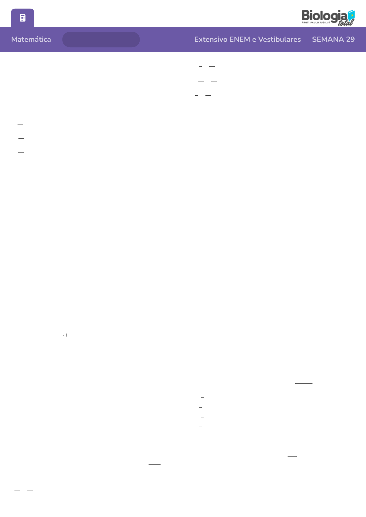 Matemática Lista de Exercícios Extensivo ENEM e Vestibulares SEMANA 29