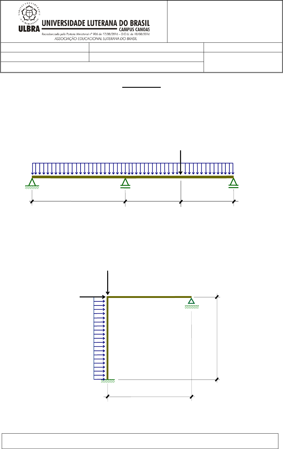 Missão: Ser comunidade de aprendizagem eficaz e inovadora. Visão: Consolidar-se, até 2022, como instituição de excelência acadêmica e administrativa. Tipo de atividade: AP2 ( X ) Trabalho ( ) Avaliação: AS Curso: Engenharia Civil Disciplina: Análise Estrutural Data: 24/05/2021 Turma: Professor: Gladimir de Campos Grigoletti Valor da Avaliação: 10 Nota: Acadêmico (a): n°: QUESTÕES Questão 01: Determine as reações de apoio e desenhe os gráficos dos esforços internos para a viga hiperestática abaixo. Utilize o método das forças. Considere EI constante. Explique o significado físico das equações de compatibilidade dos deslocamentos e o que representam fisicamente as incógnitas Xi. (5,0 pontos) Questão 02: Determine as reações de apoio para o pórtico plano abaixo. Utilize o método das forças. Explique o significado físico das equações de compatibilidade dos deslocamentos e o que representa fisicamente as incógnitas Xi. Considere EI constante. (5,0 pontos) 400 kN 3,50 m 8,00 m 40 kN/m 3,50 m 6 ,0 0 m A B 7,00 m 30 kN C 50 kN 2 0 k N /m