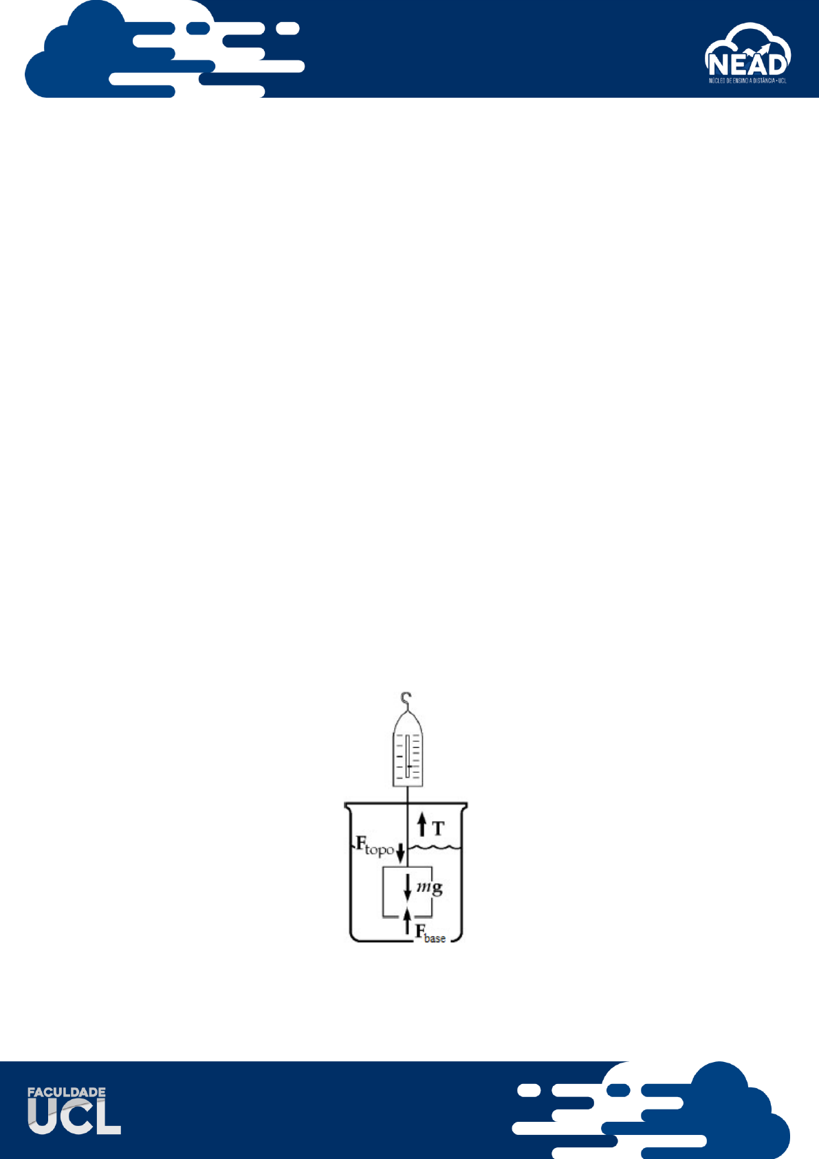 Estática Lista 02 - Hidrostática e empuxo Questão 1. Uma mulher de 50,0 kg equilibra-se sobre os saltos altos de seu par de sapatos. Se o salto for circular e tiver um raio de 0,0500 cm, que pressão cada salto exerce sobre o piso? Questão 2. Os quatro pneus de um automóvel são inflados a uma pressão manométrica de 200kPa. Cada pneu tem uma área de contato com o solo de 0,0240 m². Determine o peso do automóvel. Questão 3. Pressuponha que a densidade da água do mar é de 1024 kg/m3 e o ar acima exerce uma pressão de 101,3kPa. a) Calcule a pressão absoluta em uma profundidade do oceano de 1000 m. b) Nessa profundidade, que força a estrutura em torno de uma vigia submarina circular de 30,00 cm de diâmetro deve exercer para contrabalançar a força exercida pela água? Questão 4. O pistão pequeno de um elevador hidráulico tem uma área de seção transversal de 3,00 cm2 e o pistão grande tem uma seção transversal de 200 cm2. Que força deve ser aplicada ao pistão pequeno para que o elevador levante uma carga de 15,0 kN? (Em oficinas de serviço, esta força geralmente é exercida por ar comprimido). Questão 5. A pressão atmosférica normal é 1,013x105 Pa. A aproximação de uma tempestade faz com que a altura de barômetro de mercúrio caia 20,0 mm em relação à altura normal. Qual a pressão atmosférica? (A densidade do mercúrio é 13,59 g/cm3). Questão 6. Uma bola de pingue pongue tem diâmetro de 3,80 cm e densidade média de 0,0840 g/cm3. Qual força mínima, é necessária para manter a bola completamente submersa sob a água? Questão 7. Um bloco de metal de 10,0 kg que mede 12,0 cm x 10,0 cm x 10,0 cm é suspenso por uma balança e imerso na água. Como na figura abaixo. A dimensão de 12,0 cm é vertical e o topo do bloco está 5,00 cm abaixo da superfície da água. a) Quais são as forças agindo no topo e no fundo do bloco? (Considere a pressão atmosférica como sendo 1,013x105 N/m²). b) Qual é a leitura da balança de mola? c) Mostre que o empuxo iguala a diferença entre as forças no topo e no fundo do bloco? Questão 8. Um cubo de madeira de aresta de 20,0 cm e densidade de 650 kg/m3 flutua na água. a) Qual é a distância entre a superfície horizontal superior do cubo e o nível da água? b) Qual peso de chumbo deve ser colocado no alto do cubo para que sua superfície superior fique exatamente nivelada com a água? Questão 9. Uma batisfera utilizada na exploração submarina profunda tem um raio de 1,50 m e uma massa de 1,20x104 kg. Para mergulhar, esse submarino admite a quantidade de massa na forma de água do mar. Determine a quantidade de massa que o submarino deve admitir se quer descer com uma velocidade constante de 1,20 m/s, quando a força resistiva agindo sobre ele é 1100 N apontado para cima. A densidade da água do mar é de 1,03x103 kg/m3. Questão 10. Uma esfera plástica flutua com 50,0% de seu volume submerso. A mesma esfera flutua na glicerina com 40,0% do seu volume submerso. Determine as densidades da glicerina e da esfera.