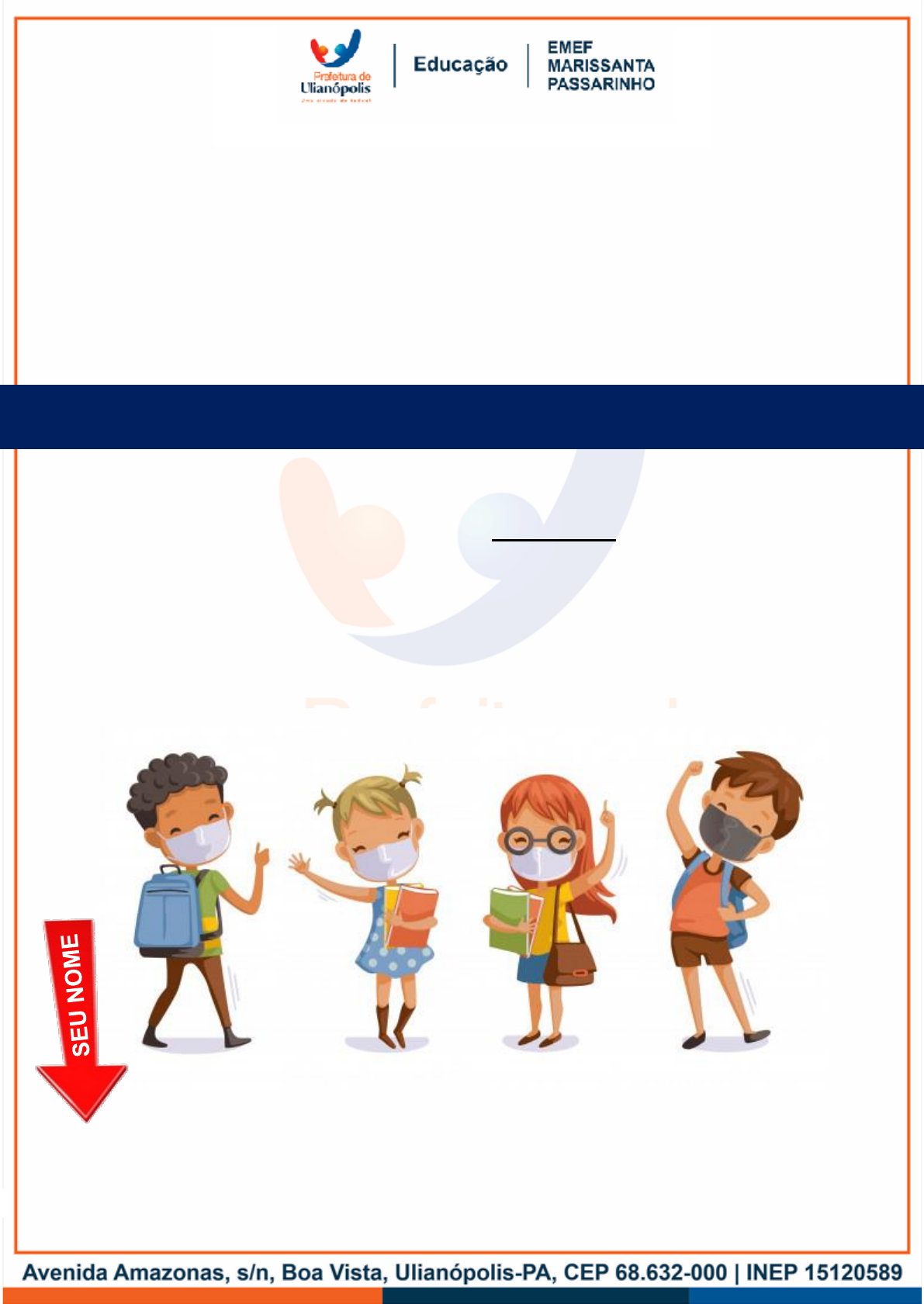 ESCOLA MUNICIPAL DE ENSINO FUNDAMENTAL MARISSANTA PASSARINHO DIRETOR: JOÃO RAMOS DE ALMEIDA LOPES COORDENADORA: ANA ROSA RAMOS DE SOUSA PROFESSOR: JOHN PABLO DE SOUSA PINHEIRO 5° ANO B (VESPERTINO) BLOCO DE ATIVIDADES Nº 06 2° SEMESTRE DE 2021 Período de 27/09/21 a 01/10/21 Devolução dia: 10/10/2021 Mostre seu talento! ULIANÓPOLIS-PA 2021 ALUNO(A): OS JOVENS PERGUNTAM: Como posso me sair bem estudando em casa? Muitos jovens hoje estão estudando numa “sala de aula” diferente: em casa. Você está nessa situação? O que você pode fazer para se sair bem? Veja o resumo de algumas dicas. RESUMO: COMO POSSO ME SAIR BEM ESTUDANDO EM CASA? → Faça uma programação. Se você não tem uma rotina de estudo, crie uma e se esforce para seguir essa programação. → Seja disciplinado. Aprenda a cumprir suas responsabilidades, mesmo quando você não está a fim. → Prepare um lugar para estudar. O lugar onde você estuda precisa ser confortável — mas não confortável demais. Não deixe por perto nada que possa distrair você. → Aprenda a se concentrar. Concentre-se no assunto que você está estudando e não tente fazer outras coisas ao mesmo tempo. → Pare de vez em quando. Parar um pouco para fazer uma atividade física ou alguma outra coisa que você gosta te dá mais energia para continuar estudando depois. Leia o artigo completo acessando JW.ORG > Ensinos Bíblicos > Adolescentes > Os jovens também perguntam > Escola > Como posso me sair bem estudando em casa? Ou clique no link: https://www.jw.org/pt/ensinos-biblicos/adolescentes/perguntam/estudar- em-casa/ Ah!! E embora o responsável possa auxiliar nas atividades, elas devem ser feitas pelo aluno, Fazer atividade pelo aluno prejudica o aprendizado dele e impede o professor de identificar as dificuldades e de contribuir para sanar elas. E lembre, você sempre pode contar com a ajuda de seu professor, não tenha medo ou vergonha de perguntar. Atenciosamente, Prof. John Pablo (91) 9 8432-0082 | @johnpablolibras OBSERVAÇÃO 1 Se você não estiver no grupo de whatsapp da turma, entre em contato comigo imediatamente. OBSERVAÇÃO 2 Não se esqueça de colocar seu nome em cada página, mesmo que já tenha colocado na capa do bloco. CRONOGRAMA DE AULAS DATA HORÁRIO DISCIPLINA HAB. BNCC CONTEÚDO B L O C O 0 6 2ª FEIRA 27/09/2021 1°, 2° e 3° Língua Portuguesa EF05LP05 Artigo de Opinião 4° Ciências EF05CI04 Matéria e energia. Energia Elétrica. 3ª FEIRA 28/09/2021 1°, 2° e 3° Matemática EF05MA19 Unid. de Medida: Comprimento. 4° Ciências EF05CI04 Matéria e energia. Energia Elétrica. 4ª FEIRA 29/09/2021 1°, 2° e 3° Língua Portuguesa EF05LP05 Artigo de Opinião 4° História EF05HI02 Organização Social 5ª FEIRA 30/09/2021 1°, 2° e 3° Matemática EF05MA19 Unid. de Medida: Comprimento. 4° Geografia EF05GE01 Tecnologias 6ª FEIRA 01/10/2021 1° Arte EF15AR03 Folclore (lendas, parlendas, ditos populares) 2° Ensino Religioso EF05ER06 Preservação das narrativas orais Educação Física EF35EF01 Brincadeiras e jogos https://www.jw.org/pt/ensinos-biblicos/adolescentes/perguntam/estudar-em-casa/ https://www.jw.org/pt/ensinos-biblicos/adolescentes/perguntam/estudar-em-casa/ LÍNGUA PORTUGUESA 2ª FEIRA PROFESSOR: JOHN PABLO DE SOUSA PINHEIRO ANO: 5º B TURMA: F5T901 ALUNO(A): CH: 180 MIN. HABILIDADE(S): EF35LP15 DATA: 27/09/2021 CONTEÚDO: Artigo de Opinião LIVRO DIDÁTICO DE LÍNGUA PORTUGUESA • Diante das explicações dadas do texto “Pré-Adoescente é criança?” nas páginas 120 e 121 • Explicação do professor por meio de áudio ou vídeo no grupo de WhatsApp da turma. • Feedback (retorno/devolução) da atividade por meio de foto para meu WhatsApp ou bloco impresso. • Responder as Questões 1 e 2 (página 124). CIÊNCIAS 2ª FEIRA PROFESSOR: JOHN PABLO DE SOUSA PINHEIRO ANO: 5º B TURMA: F5T901 ALUNO(A): CH: 60 MIN. HABILIDADE(S): EF05CI04 DATA: 27/09/2021 CONTEÚDO: Os materiais e o meio ambiente LIVRO DIDÁTICO DE CIÊNCIAS • Leitura do texto “De onde vem a energia elétrica” nas páginas 96 e 97. • Explicação do professor por meio de áudio ou vídeo no grupo de WhatsApp da turma. MATEMÁTICA 3ª FEIRA PROFESSOR: JOHN PABLO DE SOUSA PINHEIRO ANO: 5º B TURMA: F5T901 ALUNO(A): CH: 180 MIN. HABILIDADE(S): EF05MA19 DATA: 28/09/2021 CONTEÚDO: Unidade de Medida: tempo, capacidade, massa, etc. LIVRO DIDÁTICO DE MATEMÁTICA • Com base no que estudamos nas páginas anteriores e com base na Explicação do professor por meio de áudio ou vídeo no grupo de WhatsApp da turma, Responda as Questões 5 a 6 (página 124 e 125). CIÊNCIAS 3ª FEIRA PROFESSOR: JOHN PABLO DE SOUSA PINHEIRO ANO: 5º B TURMA: F5T901 ALUNO(A): CH: 60 MIN. HABILIDADE(S): EF05CI04 DATA: 28/09/2021 CONTEÚDO: Os materiais e o meio ambiente LIVRO DIDÁTICO DE CIÊNCIAS • Leitura do texto “De onde vem a energia elétrica” nas páginas 99 e 100. • Explicação do professor por meio de áudio ou vídeo no grupo de WhatsApp da turma. • Responder as Questões 1 a 2 (página 124 e 125). LÍNGUA PORTUGUESA 4ª FEIRA PROFESSOR: JOHN PABLO DE SOUSA PINHEIRO ANO: 5º B TURMA: F5T901 ALUNO(A): CH: 180 MIN. HABILIDADE(S): EF05LP15 DATA: 29/09/2021 CONTEÚDO: Artigo de Opinião LIVRO DIDÁTICO DE LÍNGUA PORTUGUESA • Com base no que estudamos nas páginas anteriores e com base na Explicação do professor por meio de áudio ou vídeo no grupo de WhatsApp da turma, Responda as Questões 3 e 4 (página 125). HISTÓRIA 4ª FEIRA PROFESSOR: JOHN PABLO DE SOUSA PINHEIRO ANO: 5º B TURMA: F5T901 ALUNO(A): CH: 60 MIN. HABILIDADE(S): EF05HI02 DATA: 29/09/2021 CONTEÚDO: As capitanias hereditárias LIVRO DIDÁTICO DE HISTÓRIA • Leitura do texto do “As primeiras formas de administrar” nas páginas 30 e 31. • Explicação do professor por meio de áudio ou vídeo no grupo de WhatsApp da turma. • Feedback (retorno/devolução) da atividade por meio de foto para meu WhatsApp ou bloco impresso. • Resolver a Qu