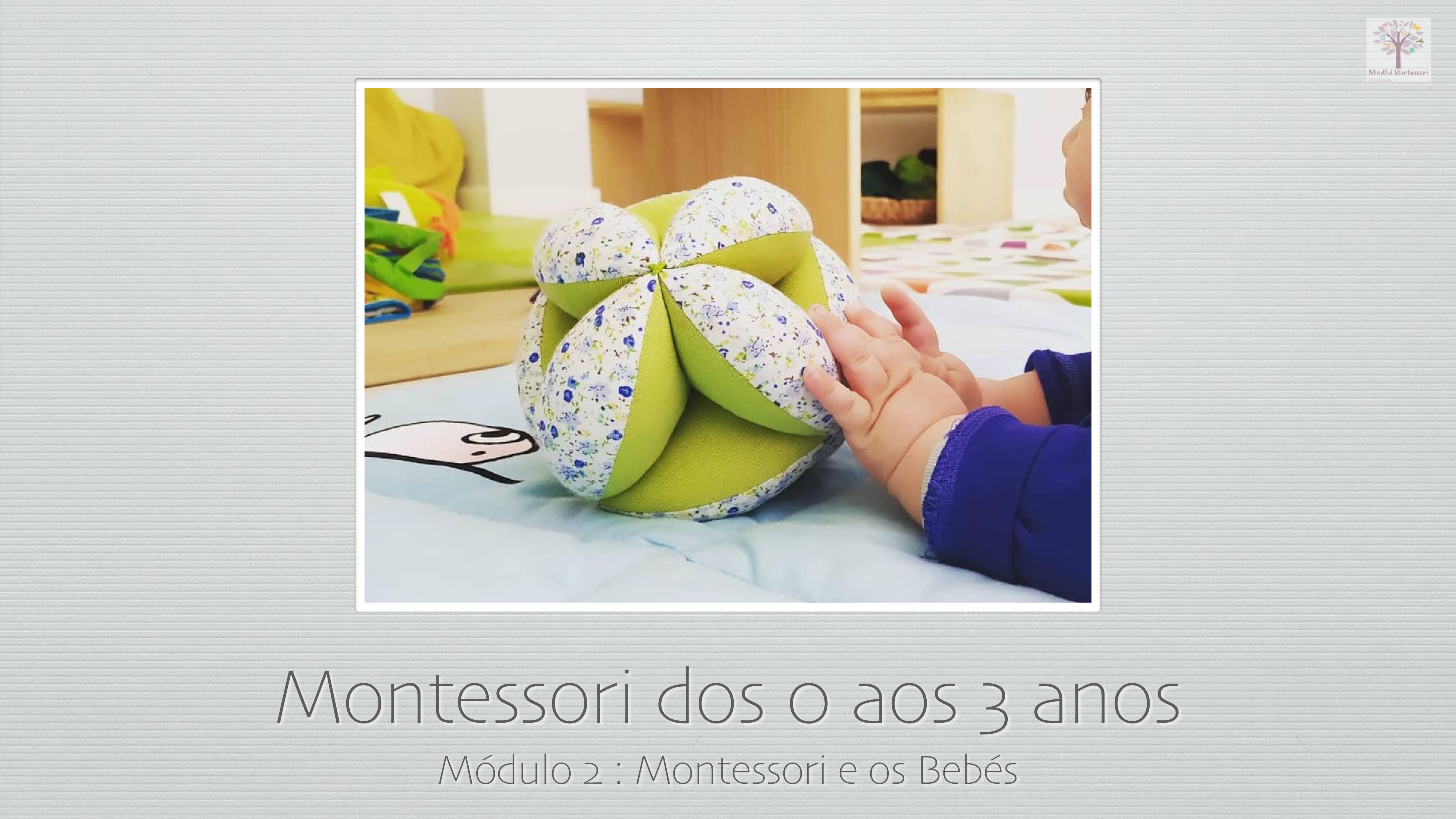Montessori dos 0 aos 3 anos Módulo 2 : Montessori e os Bebés Montessori e os Bebés • O universo dos bebés - o ambiente preparado • O material dos bebés - a dose certa de estimulação O Universo do Bebé Imagem: Montessori Village A importância do ambiente preparado As crianças têm necessidades distintas consoante os seus períodos de vida. Atravessam diversas fases à medida que crescem, desde o seu nascimento até à idade adulta. Cada uma dessas fases caracteriza-se por diferenças físicas e psicológicas ao longo das quais as crianças revelam necessidades diversas em termos de desenvolvimento, por isso a necessidade de adaptar o ambiente a cada uma dessas fases. O ambiente preparado deve evoluir em função do desenvolvimento da criança. Maria Montessori criou ambientes de acolhimento para os mais pequenos: - O Nido, que acolhe, como se fosse um ninho, os bebés, desde o nascimento até à aquisição da marcha, ou seja, cerca dos 18 meses; - A Comunidade Infantil, destinada a crianças dos 14 meses até cerca dos 3 anos, e que atribui uma atenção muito particular ao movimento, à linguagem e à autonomia. Idealmente, o Nido, ambiente Montessori para os bebés, deve ter 4 espaços distintos: 1- Um espaço para o sono; 2- Um espaço para a higiene; 3- Um espaço para a alimentação; 4- Um espaço para o movimento/atividade. Imagem: The Kavanaugh Report Nesse ambiente, calmo e apaziguador, colocamos tudo ao nível do chão, privilegiamos cores suaves, e uma decoração sóbria. O espaço deve ser luminoso, seguro e desprovido de obstáculos. Imagem: The Kavanaugh Report Espaço para o sono Em Montessori, a cama para o bebé é um colchão colocado no chão, com as dimensões de cerca de 1 m X 90 cm, e cerca de 10 cm de espessura. De um dos lados do colchão, colocamos um tapete que amortece os desnível entre o colchão e o chão, e que será muito útil quando o bebé começar a movimentar-se para fora do colchão. Nos primeiros dias, o bebé precisa de um ambiente que lhe proporcione sensações próximas às que vivenciou no ventre da mãe. Por isso, é recomendado colocar o bebé dentro de uma alcofa durante o sono, por ser mais securizante, mais aconchegante. No seu livro “Educação para um mundo novo”, Maria Montessori fala do topponcino, um pequeno colchão suave, feito de algodão, com uma forma oval com 37 X 67 cm. Tem como objetivos: - Embalar e transportar o bebé; - Preservar o cheiro (necessidade de ordem do bebé); - Preservar o calor; - Conferir um sentimento de segurança ao bebé. Imagem: Montessori Neokids O toponcino é muito útil nos primeiros meses de vida. Serve para pegarmos no bebé e deslocá-lo, mantendo sempre em contacto com o cheiro que o securiza e é confortável para ele. Por outro lado, podemos pousar o bebé facilmente se ele adormecer nos nossos braços. Habitualmente, colocamos o bebé na alcofa com o topponciono nos momentos de sono, e em cima de um tapete de atividade durante os momentos em que está acordado. Imagem: Montessori Neokids Espaço para a atividade/motricidade Em Montessori, encorajamos a atividade e a autonomia da criança. Desde o nascimento, nos momentos em que está acordado, proporcionamos ao bebé oportunidades para observar tudo à sua volta. A atenção do bebé vai fixar-se nas suas mãos, no móbil, no espelho,… O grande objetivo é proporcionar ao bebé momentos de concentração. Para Maria Montessori, a concentração e a vontade situam-se no centro da construção da criança. Trata-se de preparar um ambiente propício à exploração e à descoberta, em que cada elemento se encontra adaptado à evolução do bebé e aos seus centros de interesse, colocando desafios que se se situam no limite superior do seu potencial. Durante os primeiros meses, o espaço de atividade deve incluir: - Um tapete sensorial colocado no chão, distinto do colchão para dormir; - Um espelho; - Os móbiles e outros elementos; - Uma estante baixa com cestos onde colocamos objetos para observar, manipular, agarrar; - Quadros na parede, por exemplo, obras de arte, paisagens, elementos da Natureza,… O tapete sensorial Em Montessori, utilizamos um tapete de atividades especial, o tapete sensorial. Deve conter elementos que motivam que estimulam o bebé quando está acordado, por isso deve ser distinto do colchão para dormir. Imagem: Mindful Montessori Imagem: Mindful Montessori O espelho O espelho é instalado ao nível do chão, ao longo do tapete sensorial e delimita um dos lados do espaço de atividade e movimento do bebé. É um elemento muito importante. Quando o bebé está na posição ventral, pode levantar a cabeça e ver a sua imagem no espelho. Pode também rastejar até o conseguir tocar com a sua testa, tocar a sua própria imagem e sentir o frio do espelho. O espelho não estimula apenas a visão, mas permite também ao bebé tomar consciência dos seus movimentos, do mundo exterior e das pessoas à sua volta. Imagem: Montessori Neokids O espelho O espelho deve ser retangular, colocado no chão e o mais simples possível. Deve ser um espelho de boa qualidade, colocado em posição horizontal, de modo a que o bebé se consiga ver por inteiro. Habitualmente, o espelho tem as seguintes dimensões: 120 cm X 80 cm. Nas creches, o espelho permite aos bebés descobrir os outros bebés no reflexo do espelho e sorrirem uns para os outros. Imagem: Montessori Neokids O espelho com a barra de apoio Mais tarde, colocamos uma barra de apoio, que é fixada à frente do espelho. Deve ser colocada a uma altura média de 47 cm (em função da idade e do tamanho do bebé). Essa barra permite ao bebé desenvolver os músculos dos seus braços, o seu equilíbrio e, a pouco e pouco, exercitar a posição vertical. Imagem: Montessori NeoKids A estante Perto do tapete sensorial, podemos instalar uma estante com uma altura de cerca de 35 cm. A estante deve ser ordenada, e evoluir em função das necessidades e dos interesses do beb