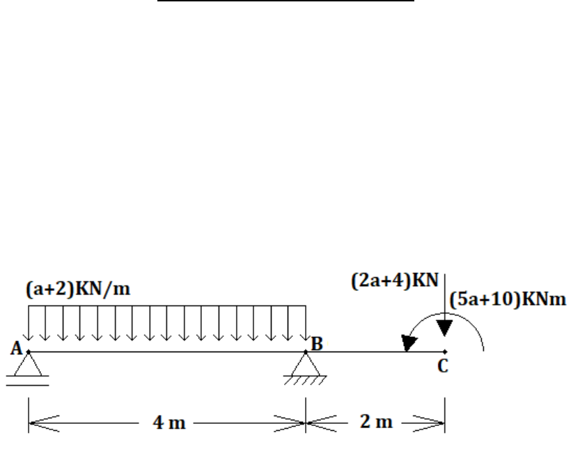 APS – Resistência dos Materiais Prof.: Ma. Rafaela de Oliveira Amaral Data de entrega: até o dia 19/11/2021. Nome:_______________________________________RA:________________ Verificar, a partir de cálculos e simulação no software FTOOL, os valores das deflexões de vigas e os diagramas de força cortante e de momento fletor da viga ilustradas abaixo. Montar um mapa conceitual, demostrando as etapas para a determinação dos diagramas e da flexão das vigas utilizando-se o software FTOOL. Considere a=último número do RA. Observação: para o cálculo e simulação da deflexão de vigas será necessário o módulo de elasticidade do material e as medidas da seção transversal da viga. Adotar o módulo do concreto e admitir uma seção transversal retangular 20X60cm. 21342394RAFAEL SOMBRA DA SILVEIRA