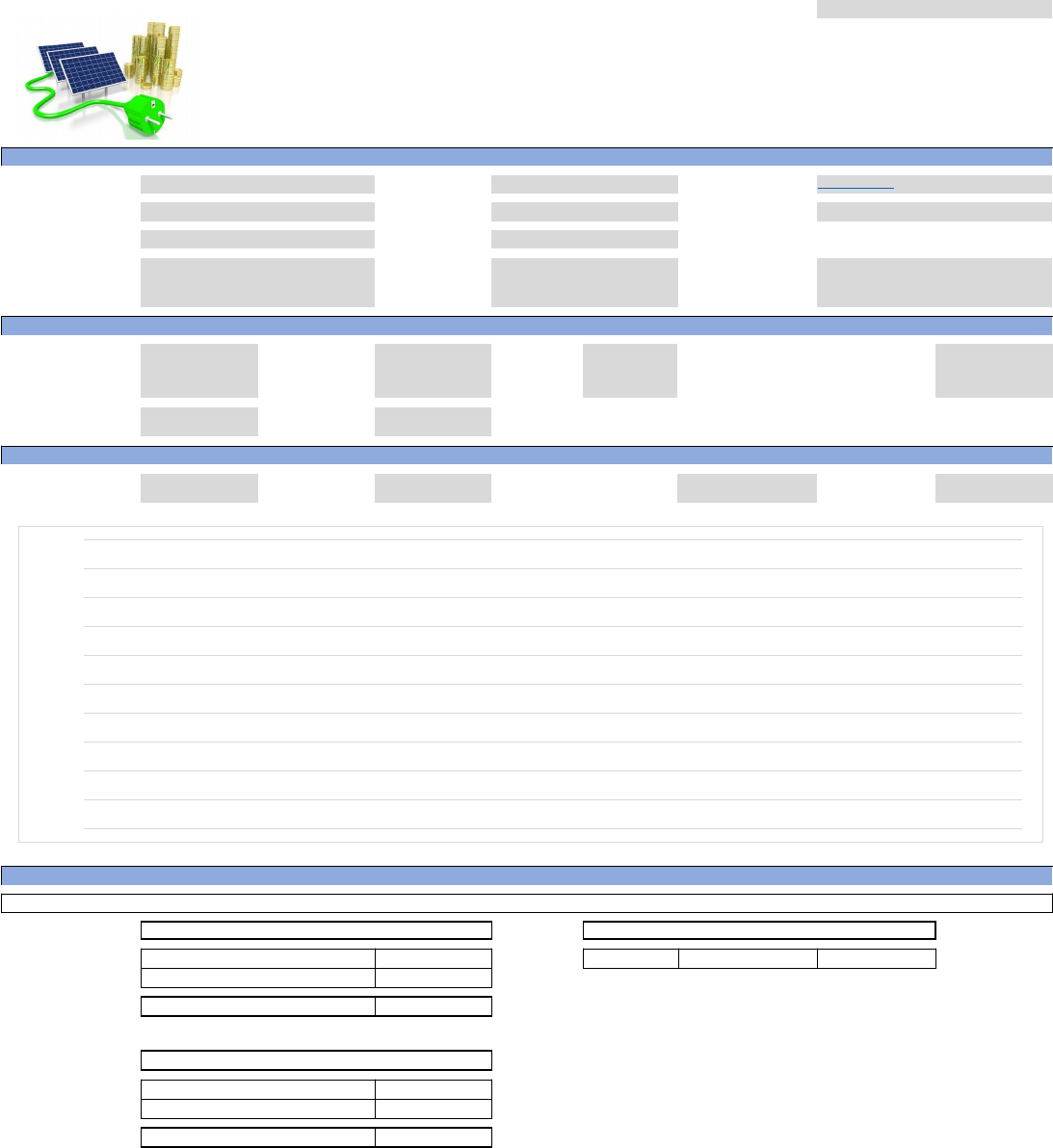 CAPA SISTEMA ON GRID ORÇAMENTO N° Ref. INFORMAÇÕES DO CLIENTE E LOCAL DE INSTALAÇÃO NOME NOME DO CLIENTE TELEFONE Telefone do cliente EMAIL e-mail do cliente CIDADE Cidade ESTADO Estado do cliente TIPO DE IMÓVEL Indústria, residência… TIPO DE FASE TIPO DE SISTEMA CUSTO CONSUMO MÉDIO (R$) R$ 0.00 CONSUMO MÉDIO MENSAL (kWh) 0 TARIFA MÉDIA ÚLTIMA CONTA/kWh (R$) R$ 0.00 INFORMAÇÕES TÉCNICAS DO SISTEMA SOLAR FOTOVOLTAICO CAPACIDADE (kWp) 0.00 PRODUÇÃO MENSAL (kWh) 0 ÁREA NECESSÁRIA (m²) 0 VALOR DA TARIFA GERADA PELO SISTEMA FOTOVOLTAICO R$ 0.00 PESO ESTIMADO POR m² (Kg) 0 QUANTIDADE DE MÓDULOS 0 RETORNO DO INVESTIMENTO SISTEMA SOLAR FOTOVOLTAICO ON GRID PRODUÇÃO ANUAL (kWh) - 0 ECONOMIA ANUAL R$ 0.00 RETORNO DO INVESTIMENTO (ANOS) 0 ENERGIA GERADA 0% INVESTIMENTO E CONDIÇÕES DE PAGAMENTO DO SISTEMA SOLAR FOTOVOLTAICO VALOR DO INVESTIMENTO CONDIÇÕES PORCENTAGEM VALORES CONDIÇÕES PORCENTAGEM VALORES ATO 40% R$ 0.00 A VISTA 5% R$ 0.00 APÓS TÉRMINO R$ 0.00 TOTAL R$ 0.00 24 FINANCIAMENTO ENTRADA R$ 0.00 PARCELAS Qtd. R$ 0.00 TOTAL R$ 0.00 CONDIÇÕES GERAIS DESTE ORÇAMENTO - Valores consideram impostos da cidade de NOME DA CIDADE DO CLIENTE; - Após a aprovação deste orçamento o cliente deverá autorizar uma visita técnica para que se confirmem as condições do local da instalação; - Obras civis e elétricas no local de instalação do sistema não estão incluídas neste orçamento; - A contagem do prazo de entrega será de 60/90 dias a contar da data de aprovação do pedido; - Os prazos de entrega dos produtos deverão ser confirmados após a fase de apresentação da proposta final. - O frete não está incluso no valor. ESTAMOS INCLUINDO NO ESCOPO DE FORNECIMENTO OS SEGUINTES EQUIPAMENTOS E SERVIÇOS - Módulos Fotovoltaicos, sendo que a quantidade pode variar de acordo com a potência máxima fornecida por módulo; - Inversor OU Microinversor para conversão corrente DC/AC; - Estrutura de suporte; - Cabeamento solar especial com condutores e conectores; - Sistema de proteção elétrica contra surto (StringBox); - Projeto do sistema, diagrama unifilar, parecer de acesso junto a concessionária local; GARANTIA - Garantia dos módulos: 10 anos pelo fabricante; - Garantia dos inversores: 5 anos pelo fabricante; - Garantia da instalação: 90 dias. Este orçamento tem validade de 15 dias a contar da data de emissão. Os preços poderão sofrer variações após este período, devido variações cambiais ou alterações de taxas ou tributos fiscais. Qualquer alteração nos valores serão discutidos previamente. Agradecemos o contato e ficamos a disposição para esclarecer eventuais dúvidas sobre este orçamento. São Paulo, 6/6/2020 #REF!