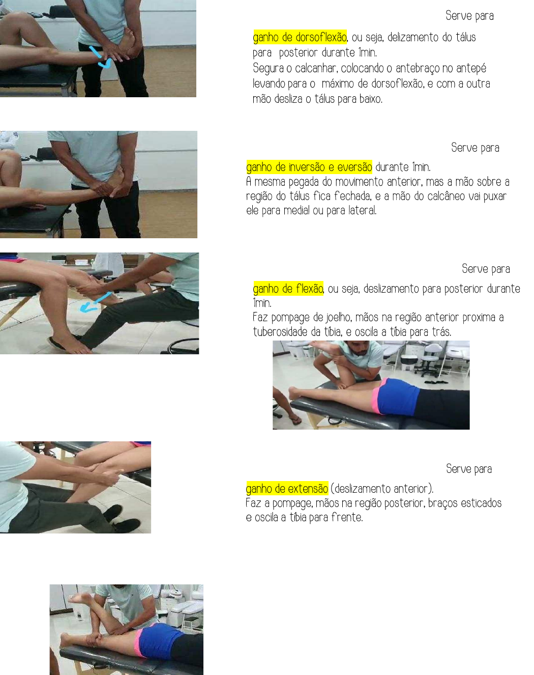 M.O → Mobilizações Oscilatorias: déficit de mobilidade. Mobilização Oscilatória Mobilização Oscilatória • Mobilização oscilatória talocrural: • Mobilização oscilatória talocalcânea: • • Mobilização oscilatória femuro-tibial: • Outra forma em decúbito ventral • Mobilização oscilatória femurotibial: • Mobilização oscilatória da patela: • Mobilização oscilatória coxo femoral: • Mobilização oscilatória coxo femoral: • Mobilização oscilatório do ombro: • Mobilização oscilatória do ombro: • Mobilização oscilatória do ombro: • Mobilização oscilatória do ombro: • Mobilização oscilatória da escápula: • Mobilização oscilatória da escápula: • Mobilização oscilatória da escápula: • Mobilização oscilatória das vertebras