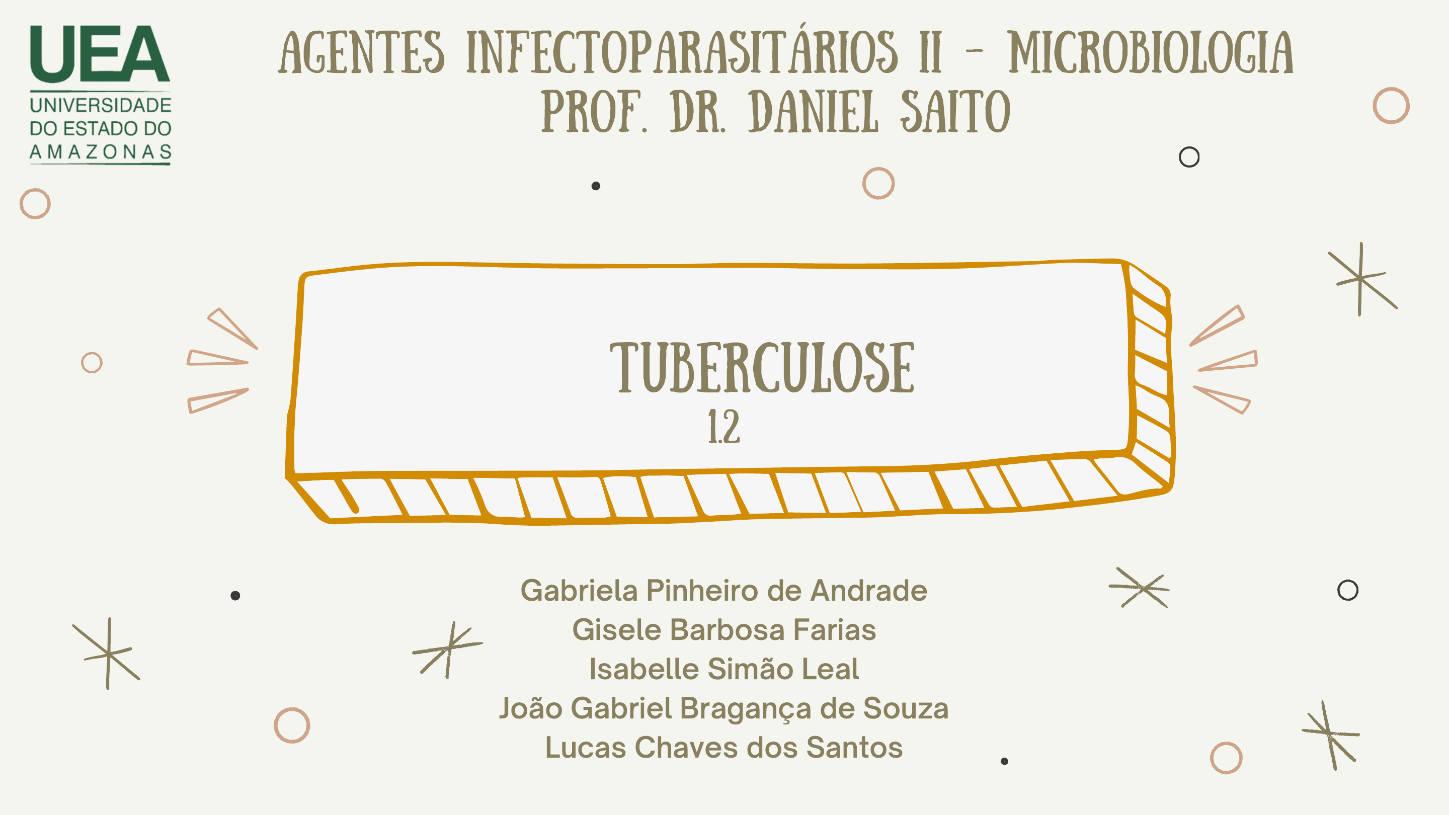 Gabriela Pinheiro de Andrade Gisele Barbosa Farias Isabelle Simão Leal João Gabriel Bragança de Souza Lucas Chaves dos Santos Tuberculose 1.2 Agentes Infectoparasitários II - Microbiologia Prof. Dr. Daniel Saito introdução1. Considerações gerais sobre a Tuberculose introdução1. O que é Tuberculose (tb)? A tuberculose é uma doença infectocontagiosa transmitida pelas vias aéreas. Provocada em grande parte dos casos pela bactéria Mycobacterium tuberculosis (também conhecida como bacilo de Koch). Pode ser causada também, embora mais raramente, por outras espécies de agentes como a Mycobacterium bovis, M. africanum e M. microti Doença infecciosa mais letal MYCOBACTERIUM TUBERCULOSIS É uma espécie de bactéria patogênica do gênero Mycobacterium Agente causador da maioria dos casos de tuberculose (TB) Descoberta pela primeira vez em 1882 por Robert Koch Mycobacterium tuberculosis (MTB): Bacilo de Koch Disponível em: https://www.newscientist.com/people/robert- koch/ Disponível em: http://www.bancodasaude.com/noticias/ob servada-arquitetura-molecular-na-infecao- por-mycobacterium-tuberculosis/ https://pt.wikipedia.org/wiki/Bact%C3%A9ria https://pt.wikipedia.org/wiki/Agente_patog%C3%A9nico https://pt.wikipedia.org/wiki/Mycobacterium https://pt.wikipedia.org/wiki/Tuberculose https://pt.wikipedia.org/wiki/Robert_Koch Disponível em: http://www.ccs.saude.gov.br/peste- branca/tb-historia.php Disponível em: http://www.ccs.saude.gov.br/peste- branca/tb-historia.php Histórico Evidências de decomposição tubercular encontradas em múmias do Egito, indicam que a tuberculose tenha acometido a humanidade há pelo menos 4 mil anos. No final do século XVIII, a tuberculose, qualificada como 'doença romântica' característica de poetas e intelectuais, foi idealizada nas obras literárias e artísticas, ao estilo do romantismo. A doença disseminou-se na Europa, com a urbanização crescente e no século XVIII tornou-se conhecida como a peste branca. Durante a revolução industrial, a mortalidade era muito alta. no amazonas Disponível em: http://www.fapeam.am.gov.br/estudo-genetico- caracteriza-os-mecanismos-inflamatorios-que- atuam-no-desenvolvimento-da-tuberculose-3/ Disponível em: https://g1.globo.com/am/amazonas/noticia /2021/03/25/am-tem-a-maior-taxa-de- incidencia-de-tuberculose-e-de- mortalidade-no-pais.ghtml Disponível em: http://www.saude.am.gov.br/visualiza r-noticia.php?id=5162 2. Agente etiológico Mycobacterium tuberculosis TAXONOMIA Família: Mycobacteriaceae Gênero: Mycobacterium Espécie: M. tuberculosis Reino: Monera Filo: Anctinobacteria Classe: Actinomycetes Ordem: Actinomycetales Morfologia Disponível em: https://pt.wikipedia.org/wiki/T% C3%A9cnica_de_Ziehl-Neelsen Bacilo reto ou ligeiramente curvo Imóvel, não esporulado e não encapsulado 1 a 10 µm de comprimento 0,2 a 0,6 µm de largura Bacilo álcool-ácido resistente Coradas por Ziehl Neelsen Fisiologia Altamente aeróbico, necessita de oxigênio para crescer e se multiplicar Temperatura ideal: 33-39ºC Reprodução por divisão binária Parasito intra- celular facultativo, de virulência variável Tempo de geração: entre 14 e 20h 3. características clínicas Os achados clínicos da tuberculose permitem a divisão nas seguintes formas: Tuberculose primária: Pulmonar Tuberculose pós-primária: Extrapulmonar: pleural, ganglionar periférica, óssea, do sistema nervoso central, ocular e cutânea. Única contagiosa Tosse persistente (com muco) Febre baixa vespertina Sudorese noturna Emagrecimento, falta de apetite Fadiga Pode ser encontrado linfanodomegalia Disponível em: https://www.saudebemestar.pt/pt/medicin a/pneumologia/tuberculose/ Tuberculose pulmonar tuberculose PLEURAL Forma mais comum no adulto imunocompetente Dor pleurítica, súbita ou insidiosa Pode ter tosse seca e dispneia Febre idêntica a da tuberculose pulmonar Na maioria dos casos, derrame unilateral e volume de moderado a grande Disponível em: BATISTA, R.; TOLEDO, P. S. D. E.; ALBUQUERQUE, I. C. DE. Tuberculose pleural após uso de adalimumabe na doença de Crohn: relato de caso. p. 2009-2012, 2011 tuberculose GAnglionar periférica Disponível em: https://opas.org.br/o-que-e-tuberculose- ganglionar-e-quais-sao-os-sinais-e- sintomas/ Comprometimento dos gânglios da cadeia cervical Mais comum em crianças e jovens adultos Inicialmente, o crescimento dos gânglios é lento, indolor e imóvel Sintomas constitucionais praticamente ausentes. tuberculose óssea Disponível em: https://www.tuasaude.com/tuberculose- ossea/ A bactéria instala-se nos ossos e articulações Mais comum em crianças e idosos Pode afetar a coluna, quadril ou joelho Dor Dificuldade de movimento Inchaço no joelho Diminuição da massa muscular tuberculose no sistema nervoso Uma das mais graves e difíceis de diagnosticar Atinge a meninge, o cérebro ou a medula espinhal Meningite tuberculosa, meningoencefalite, tuberculoma meníngeo ou abcesso tuberculoso do cérebro Febre Dor de cabeça Meningismo Confusão mental Distúrbios cognitivos e comportamentais diversos Disponível em: https://pt.wikipedia.org/wiki/Tu berculose_do_sistema_nervoso tuberculose ocular Infecção no olho Mais frequente em pacientes com HIV ou tuberculose em outros locais do corpo Atinge principalmente a úvea Visão embaçada Hipersensibilidade a luz Olhos vermelhos, dor nos olhos Pupilas em tamanhos diferentes Dor de cabeça Disponível em: CAMPOS, W. R.; CAMPOS, G. S. Tuberculose intraocular. v. 70, n. 6, p.437-451, 2011. tuberculose cutânea Consequência das reações de hipersensibilidade Lesões iniciadas por mácula, pápula ou nódulo de cor avermelhada e consistência mole Eritema nodoso Tuberculide papulonecrótica Eritema indurado de Bazin Disponível em: CARVALHO, N. DE et al. Tuberculose Cutânea: Relato de Caso. n. January, 2014. 4. fatores de virulência Mycobacterium tuberculosis Relacionadas a sua capacidade de sobreviver e se defender contra o sistema imune Parede 
