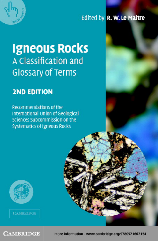 This page intentionally left blank IGNEOUS ROCKS: A CLASSIFICATION AND GLOSSARY OF TERMS Decades of field and microscope studies and more recent quantitative geo- chemical analyses have resulted in a vast, and sometimes overwhelming, array of nomenclature and terminology associated with igneous rocks. Under the auspices of the International Union of Geological Sciences (IUGS), a group of petrologists from around the world has laboured for more than 30 years to collate these terms, gain international agreement on their usage, and reassess the methods by which we categorize and name igneous rocks. This book presents the results of their work and gives a complete classifi- cation of igneous rocks based on all the recommendations of the IUGS Sub- commission on the Systematics of Igneous Rocks. Revised from the 1st edition (1989), it shows how igneous rocks can be distinguished in the sequence of pyroclastic rocks, carbonatites, melilite-bearing rocks, kalsilite-bearing rocks, kimberlites, lamproites, leucite-bearing rocks, lamprophyres and charnockites. It also demonstrates how the more common plutonic and volcanic rocks that remain can then be categorized using the familiar and widely accepted modal QAPF and chemical TAS classification systems. The glossary of igneous terms has been fully updated since the 1st edition and now includes 1637 entries, of which 316 are recommended by the Subcommission, 312 are regarded as local terms, and 413 are now considered obsolete. Incorporating a comprehensive list of source references for all the terms included in the glossary, this book will be an indispensable reference guide for all geologists studying igneous rocks, either in the field or the laboratory. It presents a standardized and widely accepted naming scheme that will allow geologists to interpret terminology found in the primary literature and provide formal names for rock samples based on petrographic analyses. Work on this book started as long ago as 1958 when Albert Streckeisen was asked to collaborate in revising Paul Niggli’s well-known book Tabellen zur Petrographie und zum Gesteinbestimmen (Tables for Petrography and Rock Determination). It was at this point that Streckeisen noted significant problems with all 12 of the classification systems used to identify and name igneous rocks at that time.Rather thanpropose a 16th system, he chose instead towrite a review article outlining the problems inherent in classifying igneous rocks and invited petrologists from around the world to send their comments. In 1970 this lead to the formation of the Subcommission of the Systematics of Igneous Rocks, under the IUGS Commission on Petrology, who published their conclusions in the 1st edition of this book in 1989. The work of this international body has continued to this day, lead by Bruno Zanettin and later by Mike Le Bas. This fully revised 2nd edition has been compiled and edited by Roger Le Maitre, with significant help from a panel of co-contributors. IGNEOUS ROCKS A Classification and Glossary of Terms Recommendations of the International Union of Geological Sciences Subcommission on the Systematics of Igneous Rocks R.W. LE MAITRE (EDITOR), A. STRECKEISEN, B. ZANETTIN, M.J . LE BAS, B. BONIN, P. BATEMAN, G. BELLIENI , A. DUDEK, S. EFREMOVA, J . KELLER, J . LAMEYRE, P.A. SABINE, R. SCHMID, H. SØRENSEN, A.R. WOOLLEY Cambridge, New York, Melbourne, Madrid, Cape Town, Singapore, São Paulo Cambridge University Press The Edinburgh Building, Cambridge , United Kingdom First published in print format ISBN-13 978-0-521-66215-4 hardback ISBN-13 978-0-511-06651-1 eBook (NetLibrary) © R.W. Le Maitre & International Union of Geological Sciences 2002 2002 Information on this title: www.cambridge.org/9780521662154 This book is in copyright. Subject to statutory exception and to the provision of relevant collective licensing agreements, no reproduction of any part may take place without the written permission of Cambridge University Press. ISBN-10 0-511-06651-1 eBook (NetLibrary) ISBN-10 0-521-66215-X hardback Cambridge University Press has no responsibility for the persistence or accuracy of s for external or third-party internet websites referred to in this book, and does not guarantee that any content on such websites is, or will remain, accurate or appropriate. Published in the United States by Cambridge University Press, New York www.cambridge.org v Contents Figures ...................................................................................................................................... vi Tables ....................................................................................................................................... vii Albert Streckeisen .................................................................................................................. viii Foreword to 1st edition .............................................................................................................. x Chairman’s Preface .................................................................................................................xiii Editor’s Preface ....................................................................................................................... xv 1 Introduction ........................................................................................................................... 1 1.1 Changes to the 1st edition ............................................................................................. 1 2 Classification and nomenclature ............................................................................................ 3 2.1 Principles ...................................................................................................................... 3 2.1.1 Parameters used .................................................................................................... 4 2.1.2 Nomenclature ............................................