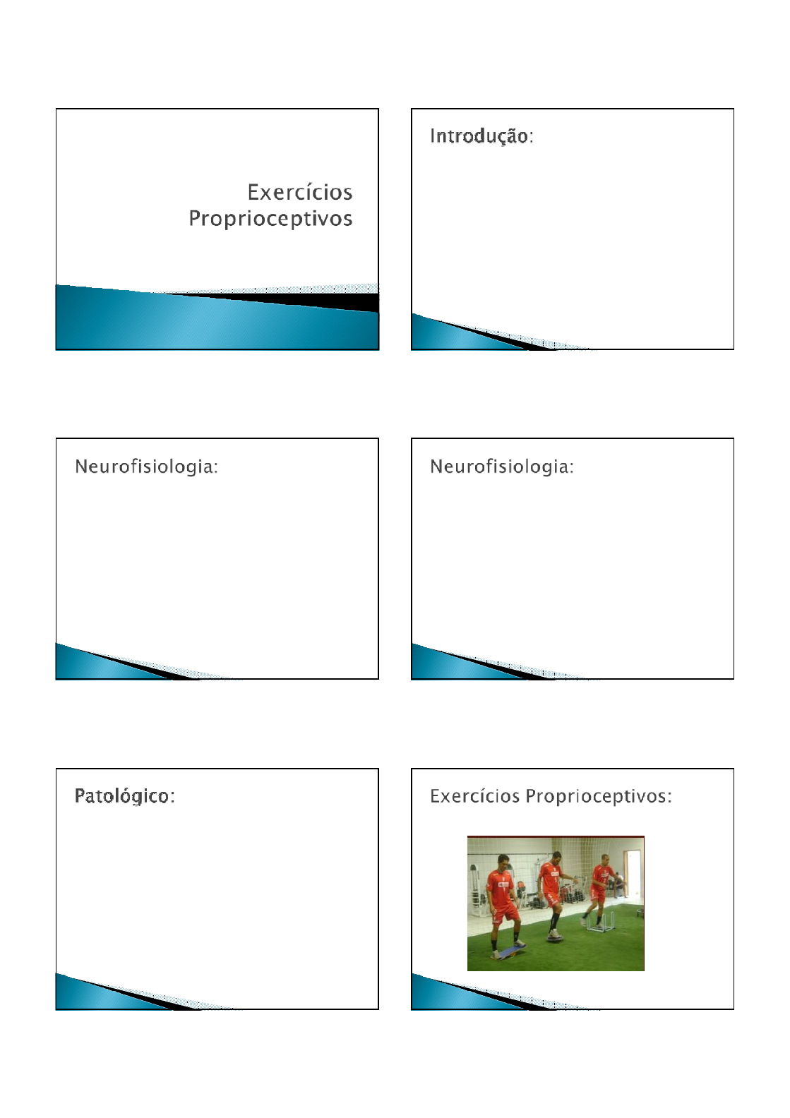 02/10/2015 1 Fabiana Nonino A propriocepção é hoje uma das fases mais importantes do tratamento fisioterapêutico. Propriocepção refere-se à percepção consciente e inconsciente do posicionamento articular, enquanto cinestesia é a sensação do movimento ou da aceleração articular Quando uma articulação é lesionada toda aquela memória antes formada é perdida, sendo necessário que haja formação de nova memória para evitar lesões repetitivas naquela articulação. Deve-se prevenir a formação de um engrama sensorial patológico, normalmente adquirido pela posição antálgica. Os grandes responsáveis por todo esse processo de percepção de movimento, posição articular são os receptores. Os receptores são pequenos órgãos especializados em internalizar informações obtidas do meio externo ou mesmo de enviar informações ao SNC sobre as relações do corpo com ele mesmo ou com o meio externo. Em casos de lesões os receptores podem estar alterados, causando desequilíbrios. Devido à posição antálgica, adquirida como um mecanismo pessoal de proteção, há formação de engrama sensorial patológico. Deve-se prevenir este engrama patológico. 02/10/2015 2 São exercícios específicos que visam estabelecer o equilíbrio dinâmico das articulações. São executados mediante tomada de peso sobre a articulação e situações criadas a fim de promover a reeducação do equilíbrio. Diminuição do período de latência nervosa, ou seja, do tempo existente entre a introdução de um estímulo e uma resposta a ele. Formação de engrama sensorial, importante para que se evite lesões repetitivas. Aquisição de confiança por parte do paciente para voltar as suas atividades. 02/10/2015 3 Fase ativa-estática: desequilíbrio provocado pelo fisioterapeuta, onde o paciente tem que reagir para manter-se equilibrado. Fase ativa-dinâmica: exercícios mais complexos, com adição de superfícies de apoio para execução de cada exercício. 02/10/2015 4 Fase de proteção da prática desportiva: alterna-se o ritmo, as superfícies de execução e as posições de simulações dos gestos desportivos, tendo como principal objetivo à integralização dos movimentos globais e específicos do gesto desportivo. Podem ser utilizados aparelhos como o "skate", "cama elástica", "balancinho", "giro- plano", realizados em circuitos e criar o máximo de situações diferentes de desequilíbrio do paciente para que haja posteriormente o equilíbrio. 02/10/2015 5 Os exercícios de Codman, ou exercícios de pêndulo, como também são conhecidos, consistem basicamente na realização de uma automobilização por meio de movimentos circulares e pendulares com o braço, obtidos com movimentos suaves do tronco, sem a contração de músculos. São técnicas que empregam os efeitos da gravidade para afastar o úmero da cavidade glenóide Ajudam a aliviar a dor através de movimentações oscilatórias com leve tração e dão mobilidade precoce as estruturas articulares e líquido sinovial. A ênfase do exercício está em manter o ombro e o braço o mais relaxados possível. Existe uma discordância entre os profissionais quanto ao uso de pesos durante a execução deste exercício. Alguns argumentam que para relaxar bem, o paciente não deveria segurar nenhum peso, enquanto outros defendem que o peso ajudaria no alongamento e tração da glenoumeral, ambos os lados têm bons argumentos, e ainda não há estudos definitivos sobre o assunto. 02/10/2015 6 Estes exercícios incorporam três padrões distintos de movimento do ombro: circundução, flexão e extensão (para frente e para trás) e abdução horizontal (de um lado para o outro). Paciente em pé com o tronco fletido e o braço deve ficar solto, se necessário apoiar em um contato sólido (mesa, maca..); Aumentar o arco de movimento conforme o tolerado pelo paciente é importante que a técnica não produza dor; Usar pesos apenas em fases mais crônicas da reabilitação; Aumento da dor durante a aplicação dos exercícios; Edema periférico;