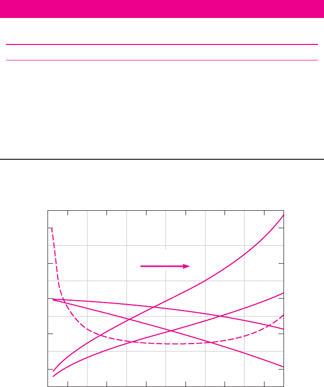 We note from Example 17–3 that the flow area decreases with decreasing pressure up to a critical-pressure value where the Mach number is unity, and then it begins to increase with further reductions in pressure. The Mach number is unity at the location of smallest flow area, called the throat (Fig. 17–14). Note that the velocity of the fluid keeps increasing after passing the throat although the flow area increases rapidly in that region. This increase in velocity past the throat is due to the rapid decrease in the fluid density. The flow area of the duct considered in this example first decreases and then increases. Such ducts are called converging–diverging nozzles. These nozzles are used to accelerate gases to supersonic speeds and should not be confused with Venturi nozzles, which are used strictly for incompressible flow. The first use of such a nozzle occurred in 1893 in a steam turbine Chapter 17 | 831 TABLE 17–1 Variation of fluid properties in flow direction in duct described in Example 17–3 for m . � 3 kg/s � constant P, kPa T, K V, m/s r, kg/m3 c, m/s A, cm2 Ma 1400 473 0 15.7 339.4 ∞ 0 1200 457 164.5 13.9 333.6 13.1 0.493 1000 439 240.7 12.1 326.9 10.3 0.736 800 417 306.6 10.1 318.8 9.64 0.962 767* 413 317.2 9.82 317.2 9.63 1.000 600 391 371.4 8.12 308.7 10.0 1.203 400 357 441.9 5.93 295.0 11.5 1.498 200 306 530.9 3.46 272.9 16.3 1.946 * 767 kPa is the critical pressure where the local Mach number is unity. Flow direction 2004006008001000 Ma r A , M a, r , T , V 12001400 P, kPa T A V FIGURE 17–13 Variation of normalized fluid properties and cross-sectional area along a duct as the pressure drops from 1400 to 200 kPa. cen84959_ch17.qxd 4/21/05 11:08 AM Page 831 designed by a Swedish engineer, Carl G. B. de Laval (1845–1913), and therefore converging–diverging nozzles are often called Laval nozzles. Variation of Fluid Velocity with Flow Area It is clear from Example 17–3 that the couplings among the velocity, den- sity, and flow areas for isentropic duct flow are rather complex. In the remainder of this section we investigate these couplings more thoroughly, and we develop relations for the variation of static-to-stagnation property ratios with the Mach number for pressure, temperature, and density. We begin our investigation by seeking relationships among the pressure, temperature, density, velocity, flow area, and Mach number for one- dimensional isentropic flow. Consider the mass balance for a steady-flow process: Differentiating and dividing the resultant equation by the mass flow rate, we obtain (17–13) Neglecting the potential energy, the energy balance for an isentropic flow with no work interactions can be expressed in the differential form as (Fig. 17–15) (17–14) This relation is also the differential form of Bernoulli’s equation when changes in potential energy are negligible, which is a form of the conserva- tion of momentum principle for steady-flow control volumes. Combining Eqs. 17–13 and 17–14 gives (17–15) Rearranging Eq. 17–9 as (∂r/∂P)s � 1/c 2 and substituting into Eq. 17–15 yield (17–16) This is an important relation for isentropic flow in ducts since it describes the variation of pressure with flow area. We note that A, r, and V are positive quantities. For subsonic flow (Ma � 1), the term 1 � Ma2 is positive; and thus dA and dP must have the same sign. That is, the pressure of the fluid must increase as the flow area of the duct increases and must decrease as the flow area of the duct decreases. Thus, at subsonic velocities, the pressure decreases in converging ducts (subsonic nozzles) and increases in diverging ducts (subsonic diffusers). In supersonic flow (Ma � 1), the term 1 � Ma2 is negative, and thus dA and dP must have opposite signs. That is, the pressure of the fluid must dA A � dP rV 2 11 � Ma2 2 dA A � dP r a 1 V 2 � dr dP b dP r � V dV � 0 dr r � dA A � dV V � 0 m # � rAV � constant 832 | Thermodynamics Converging nozzle Converging–diverging nozzle Throat Throat Fluid Fluid FIGURE 17–14 The cross section of a nozzle at the smallest flow area is called the throat. 0 (isentropic) dP CONSERVATION OF ENERGY (steady flow, w = 0, q = 0, ∆pe = 0) h1 + V 2 2 1 = h2 + V 2 2 2 or h + V 2 2 = constant Differentiate, dh + V dV = 0 Also, = dh – dP dh = dP v r r v = 1 Substitute, dP + V dV = 0 T ds FIGURE 17–15 Derivation of the differential form of the energy equation for steady isentropic flow. cen84959_ch17.qxd 4/21/05 11:08 AM Page 832 increase as the flow area of the duct decreases and must decrease as the flow area of the duct increases. Thus, at supersonic velocities, the pressure decreases in diverging ducts (supersonic nozzles) and increases in converg- ing ducts (supersonic diffusers). Another important relation for the isentropic flow of a fluid is obtained by substituting rV � �dP/dV from Eq. 17–14 into Eq. 17–16: (17–17) This equation governs the shape of a nozzle or a diffuser in subsonic or supersonic isentropic flow. Noting that A and V are positive quantities, we conclude the following: Thus the proper shape of a nozzle depends on the highest velocity desired relative to the sonic velocity. To accelerate a fluid, we must use a converg- ing nozzle at subsonic velocities and a diverging nozzle at supersonic veloc- ities. The velocities encountered in most familiar applications are well below the sonic velocity, and thus it is natural that we visualize a nozzle as a converging duct. However, the highest velocity we can achieve by a con- verging nozzle is the sonic velocity, which occurs at the exit of the nozzle. If we extend the converging nozzle by further decreasing the flow area, in hopes of accelerating the fluid to supersonic velocities, as shown in Fig. 17–16, we are up for disappointment. Now the sonic velocity will occur at the exit of the converging extension, instead of the exit of the original nozzle, and the mass flow rate through 