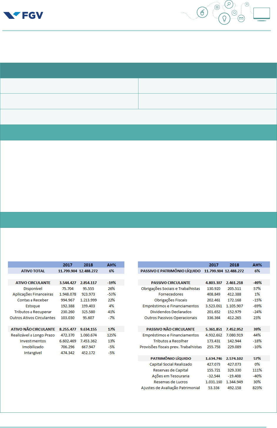 1 Aluno: Leandro Gustavo Andrade Diegues | A56038730 Disciplina: Contabilidade Financeira Relatório Contábil Natura S.A. RELATÓRIO CONTÁBIL NATURA S.A. Matriz de atividade individual Disciplina: Contabilidade Financeira Módulo: Aluno: Turma: ONL02152 Tarefa: Elaborar Um Relatório Que Analise Os Dois Exercícios Sociais Da Empresa Natura S.A. Introdução Este relatório tem como objetivo analisar a empresa Natura S.A. e identificar através de analises patrimoniais e indicadores financeiros. Para isso serão usadas as seguintes Demonstrações Contábeis: Balanço Patrimonial (BP) e a Demonstração do Resultado do Exercício (DRE) do período anual de 2017 e 2018. Sendo a análise pautada pelos seguintes tópicos: Análise Horizontal. Análise Vertical. Cálculo Dos Índices De Liquidez. Cálculo Da Estrutura De Capital. Cálculo Da Lucratividade. Cálculo Da Rentabilidade e Conclusão Sobre A Situação Econômica E Financeira Da Empresa. Análise horizontal A análise horizontal compara, em forma percentual, o valor de determinada verba ou de determinado grupo de verbas em relação aos anos anteriores. O seu objetivo é demonstrar crescimento ou queda em itens das demonstrações contábeis em períodos de tempo consecutivos. Considerando a análise horizontal acima, pode-se perceber que a Natura S.A. apresentou um crescimento de 6% no seu Ativo Total e no Passivo + Patrimônio Líquido no período de 2018 comparado a 2017. Em 2 Aluno: Leandro Gustavo Andrade Diegues | A56038730 Disciplina: Contabilidade Financeira Relatório Contábil Natura S.A. relação ao Ativo Total, o aumento mais significativo foi no Ativo Não-Circulante, representando um acréscimo de 17%, principalmente afetado pelo aumento nas contas de Realizável a Longo Prazo em 125%. O Ativo Circulante sofreu uma diminuição de 19%, mais afetado pela significativa diminuição da conta de Aplicações Financeiras em 53%. Em relação ao grupo Passivo e Patrimônio Líquido, o crescimento mais significativo foi o de 57% no Patrimônio Líquido, devido ao aumento nas reservas de Lucro e de Capital. O Passivo Circulante teve uma diminuição bem significativa de 49% puxada pela redução no saldo da conta de Empréstimos e Financiamentos a Pagar. Contudo parte desse saldo da conta de Empréstimos e Financiamentos a Pagar passou a integrar o Passivo Não-Circulante, causando um aumento de 39% no Grupo do PNC. Analisando a DRE, podemos ver que houve uma diminuição do Lucro Líquido em 18%. Ocasionada em parte pelo aumento das Despesas Financeiras e Operacionais, apesar da receita Líquida e Financeira também ter aumentado, o saldo final foi negativo. Análise vertical 3 Aluno: Leandro Gustavo Andrade Diegues | A56038730 Disciplina: Contabilidade Financeira Relatório Contábil Natura S.A. A análise vertical analisa o percentual de cada verba em relação ao total do seu respectivo grupo. Essa análise tem como objetivo entender como ativos de uma empresa estão distribuídos, a origem dos financiamentos e o percentual do resultado líquido do exercício. Considerando a análise vertical acima, pode-se perceber que a Natura apresentou uma redução na sua liquidez ao diminuir o seu Ativo Circulante em 7% e aumentar o seu Ativo Não Circulante em também 7% em relação ao período de 2017 para 2018. Nota-se também que a empresa está sendo menos financiada por terceiros do que no período anterior, já que o seu Patrimônio Líquido passou de 13% para 20%. Também está levemente menos endividada, já que houve uma de redução do seu Passivo Total. Analisando a DRE, podemos ver que houve uma manutenção Lucro Líquido em relação a Receita Bruta, principalmente pela mínima variação dos percentuais do Resultado Bruto e das Despesas Operacionais na Análise Vertical. Cálculo dos Índices de Liquidez 4 Aluno: Leandro Gustavo Andrade Diegues | A56038730 Disciplina: Contabilidade Financeira Relatório Contábil Natura S.A. Os Indicadores de Liquidez medem a capacidade de uma empresa de satisfazer as suas obrigações de curto prazo, também se referem a solvência e a situação financeira global da e presa. Comparando os índices apurados acima, podemos perceber que a Natura dobrou seu índice de Liquidez Imediata de 2017 para 2018, aumento puxado não pelo pequeno aumento na conta de disponibilidades, mas sim pela expressiva queda no saldo do Passivo Circulante da Natura de 2017 para 2018. A Liquidez Imediata é a porcentagem dos passivos circulantes (dívidas de curto prazo) que pode ser paga imediatamente pela empresa com o caixa disponível. No caso da Natura esse Percentual é de aproximadamente 4% em 2018. Nesse Contexto da liquidez imediata, a Natura não erra, pois possui um caixa baixo. Especialistas dizem não ser interessante para as empresas manter uma posição de caixa muito elevada, afinal, com as taxas de juros baixas, a empresa deixa de criar valor aos seus acionistas, por não aplicarem esses valores em investimentos ou em novos projetos. 5 Aluno: Leandro Gustavo Andrade Diegues | A56038730 Disciplina: Contabilidade Financeira Relatório Contábil Natura S.A. A Liquidez Corrente é a porcentagem dos passivos circulantes (dívidas de curto prazo) que pode ser paga imediatamente pela empresa contando com seu capital de giro. No caso da Natura esse fator passou de 0,73 em 2017 para 1,16 em 2018. Quando se tem um resultado maior do que 1 significa que a sua empresa tem capital suficiente para cobrir as suas dívidas e ainda sobra. Esse é o cenário atual da natura, pois apesar da diminuição de 19% no ativo circulante da companhia de 2017 para 2018, o passivo circulante da Natura sofreu uma redução de 49% no mesmo período, fato que explica o aumento do fator de liquidez corrente para 1,16. A Liquidez Seca assim como a Liquidez Corrente busca medir a porcentagem dos passivos circulantes (dívidas de curto prazo) que pode ser paga imediatamente pela empresa com seus ativos circulante/capital 