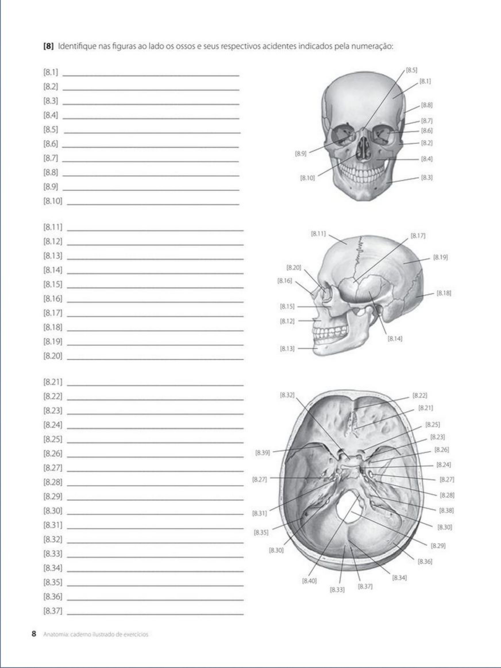 [81 Identifiquenas figuras ao ladoos ossos e seus respectivosacidentes indicados pela numeração: 8 B 9 (8.76] [8.77] 18.78] [8.79] [8.80] [8.81] [8.82] [8.83] [8.84] [8.8S] [8.86] [8.87] [8.88] [8.89] [8.90] [8.91] [8.811 [8.82] [8831 18.90) 18.911 [8.92] . [8.93] . [8.94] . [8.95] . [8.%] . [8.97] . [8.98] . [8.99] . [8.100] [8.101] [8.102] [8.103] [8.104] [8.103) [898) Í8.100) (8.100) = [8.103 +8 104) [8.105] [8.106] [8.107] [8.108] [8.109] (a105) [8.1061 (8.109) 18.107) 10 (8.110) (8.111) (8.112) (8.113) [8.114] (8.115) [8.116] (8.117) (8.118) (8.119) (8.120) (8.121) (8.122) (8.123) [8.124] (8.125) [8.126] (8.127) [8.128] [8.129] (8.130) (8.131) (8.132) (8.133) (8.134) [8.135] [8.136] [8.137] [8.138] [8.139] [8.140] [8.141] [8.142] [8.143] [8.144] [8.145] [8.146] [8.147] (8.1341 [8.1191 [8.120] 8128 [8.132] [8133] [8.130] [8131] ( [8112] [8.111] [8110] [8.1IS) 0 11 [8.148] [8.149] [8.150] [8.151] [8.152] [8.153] [8.154] [8.155] [8.156] [8.157] [8.158] [8.159] [8.160] [8.161] [8.162] [8.163] [8.164] [8.165] [8.166] [8.167] [8.168] [8.169] [8.170] [8.171] [8.172] [8.173] [8.174] [8.175] [8.176] [8.177] [8.178] (8.158) .18.160) 18.152) 18.159} (8.153) (8151) 18150] (8.157) [8.166] [8.165] [8164] 18163] 18.167) 12 (8.179] [8.180] 18.181] [8.182] [8.183] [8.184] [8.185] [8.186] [8.187] [8.188] [8.189] [8.190] [8.191] [8.192] [8.193] [8.194] [8.195] [8.196] [8.197] [8.198] [8.199] (8.176) (8.181J (8.178] (8.1771 (8.182) (8.188) (8.186) (8.187) (8.195) (8.189) 18.191] 8.180 V(8.194J (8.199)(8.198) [8.200] [8.201] [8.202] [8.203] [8.204] [8.205] [8.206] [8.207] [8.208] [8.209] [8.210] Í8.211] [8.212] [8.213] [8.214] [8.215] [8.216] (8204) (8.205) 18.200] (8218) (8209) 8 2C8 8220 - 8.215 8.219 (8201) (8.203) (8.202) (8206) (8207) (8213) 18211) (8212) [8.2141 (8223) B 13 (8.217] (8.218] (8.219] [8.220] [8.221] [8.222] [8.223] [8.224] [8.225] [8.226] [8.227] [8.228] [8.229] [8.230] [8.231] [8.232] [8.233] [8.234] [8.235] [8.236] [8.237] [8.238] [8.239] [8.240] [8.241] [8.242] [8.243] [8.244] [8.245] [8.246] [8.247] [8.248] [8.249] [8.250] [8.251] 18.244] [8.2SO] [8.246] (8.248) [8.229] 14 (8.252) (8.253) (8.254) (8.255) (8.256) (8.257) (8.258) 18255] 18253] (8258] (82561 18257] (8.259) (8.260) (8.261) (8.262) (8.263) (8.264) (8.265) (8.266) (8.267) (8.268) (8.269) (8.270) (8.271) (8.272) (8.273) (8.274) 8270 [82741 18272] (8262] (8267] - 18.264] (8265] O 15 (8.275) (8.276) (8.277) (8.278) (8.279) (8.280) 18.282] (8.281) (8.282) (8.283)_ (8.284)_ 1828,1 (8.285)_ (8.286)_ (8.287)_ (8.288)_ (8.289)_ (8.290)_ (8.291)_ (8.292)_ (8.293)_ (8.294)_ (8.295)_ (8.296)_ (8.297)_ (8.298)_ (8.299)_ (8.300)_ (8.301)_ (8.302)_ (8.303)_ (8.304)_ (8.305)_ 16 («iwV [8276] 18275] [8.278] [8.277] [8279] [8.300] [8303] [8286] [82187] [8.299] [8-288] [8.294] [8293] [8.298] [8.295] [8.296] [8297] [8.305] [8.304] [82.90] [8.291] [8301] (8.306) (8.307) (8.308) (8.309) (8.310) (8.311) (8.312) (8.313) (8.314) (8.315) (8.316) (8.317) (8.318) (8.319) (8.320) (8.321) (8.322) (8.323) (8.324) (8.325) (8.326) (8.327) (8.328) 18.3221 18.310) (8317J (8.324) [8.3271 18.307) (8.3281 (8.3081 O 17