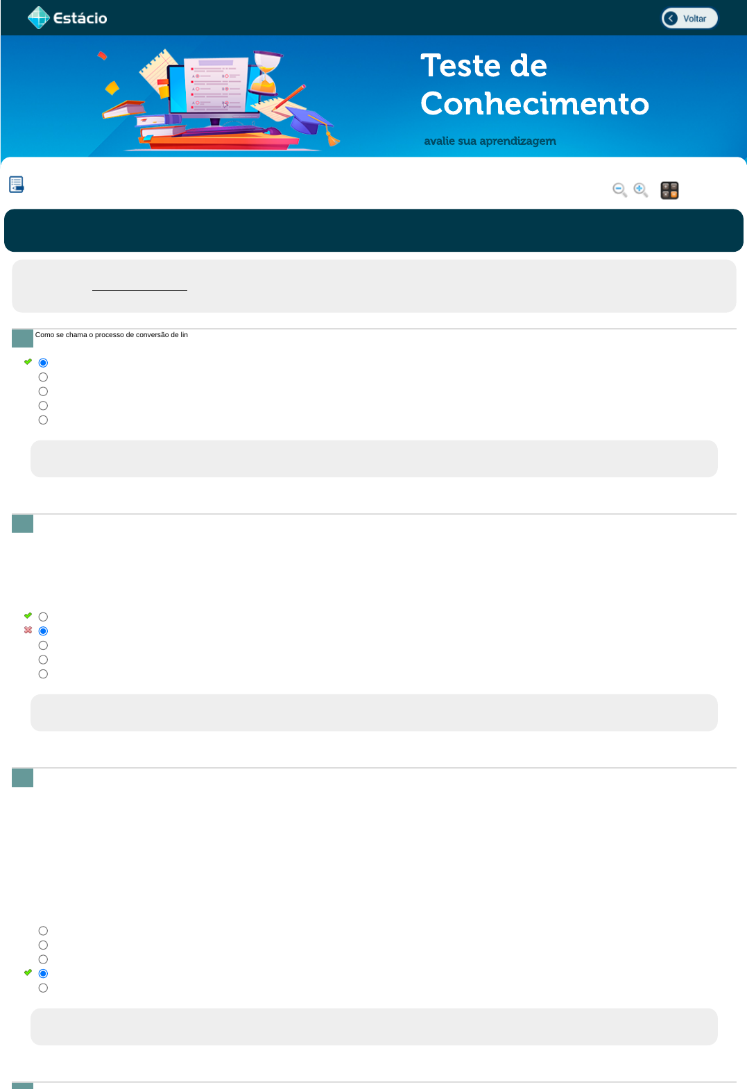 Após responde cada questão, você terá acesso ao gabarito comentado e/ou à explicação da mesma. Aproveite para se familiarizar com este modelo de questões que será usado na sua AV e AVS.