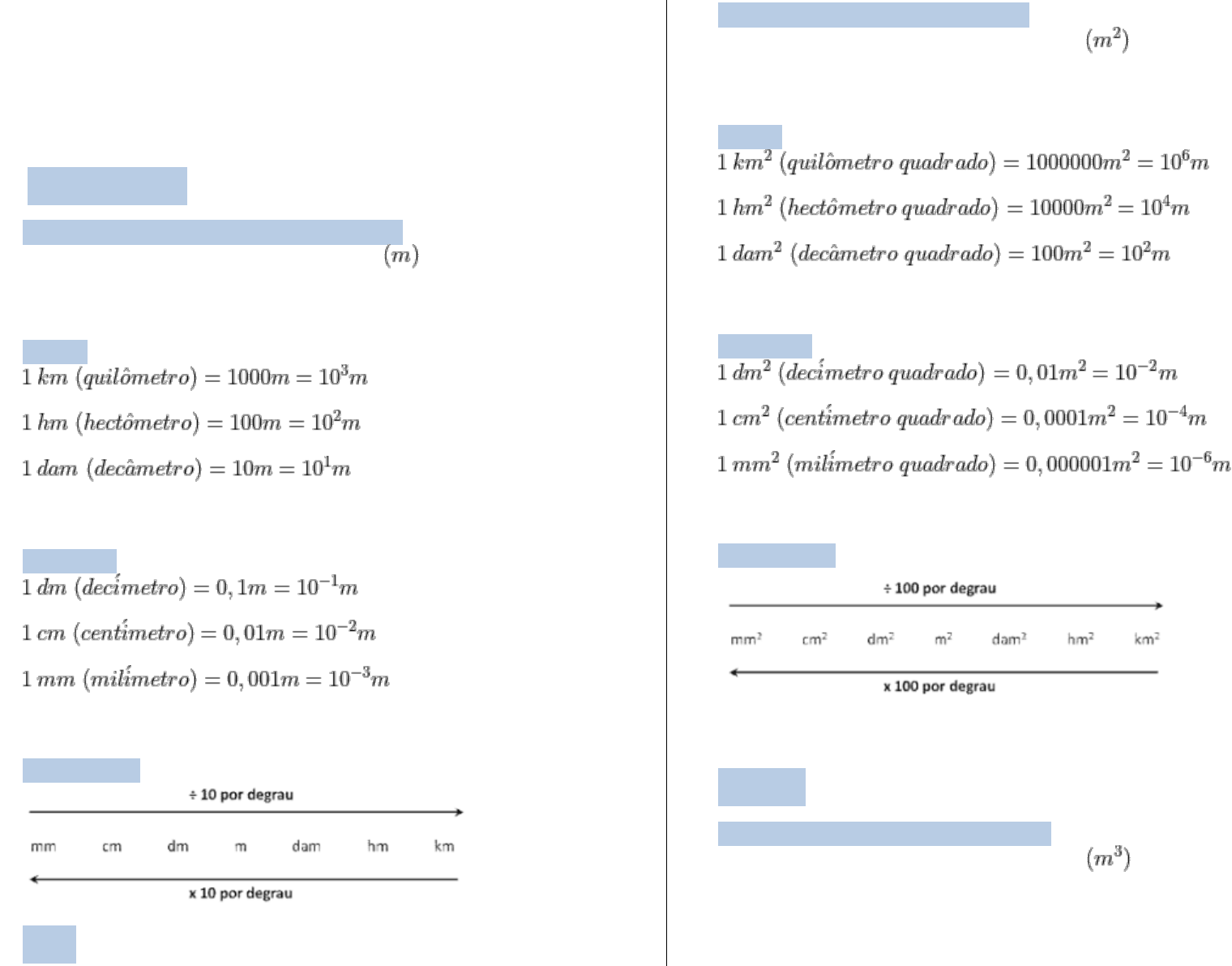 Grandezas e Unidades de Medidas Comprimento Unidade de comprimento, múltiplos e submúltiplos A unidade fundamental de comprimento é o metro . Múltiplos Submúltiplos Transformação Área Unidade de área, múltiplos e submúltiplos A unidade fundamental de área é o metro quadrado . Múltiplos Submúltiplos Transformação Volume Unidade de volume, múltiplos e submúltiplos A unidade fundamental de volume é o metro cúbico . Múltiplos Jaqueliny Sales Transformação Capacidade Unidade de capacidade, múltiplos e submúltiplos A unidade fundamental de capacidade é o litro . Múltiplos Submúltiplos Transformação Relação volume – capacidade Consequência: Massa Unidade de massa, múltiplos e submúltiplos A unidade fundamental de massa é o grama . Porém, no Sistema Internacional de Unidades, utiliza-se o . Múltiplos Submúltiplos Transformação Unidades alternativas Outras unidades usuais são a tonelada e o quilate. Tempo Unidade de tempo, múltiplos e submúltiplos A unidade fundamental de tempo é o segundo (s). Múltiplos 1 minuto (min) = 60 s 1 hora (h)= 60 min = 3600 s Dia e múltiplos 1 dia = 24 h = 1440 min = 86 400 s 1 semana = 7 dias Transformação Transformar por regra de três. Tempo (Complemento) Medida simples e medida complexa Medidas simples: uma única unidade; Medidas complexas: mais de uma unidade. Transformar em medida complexa Para transformar de medida simples em complexa, verificar quantas medidas inteiras “cabem” na medida simples apresentada.