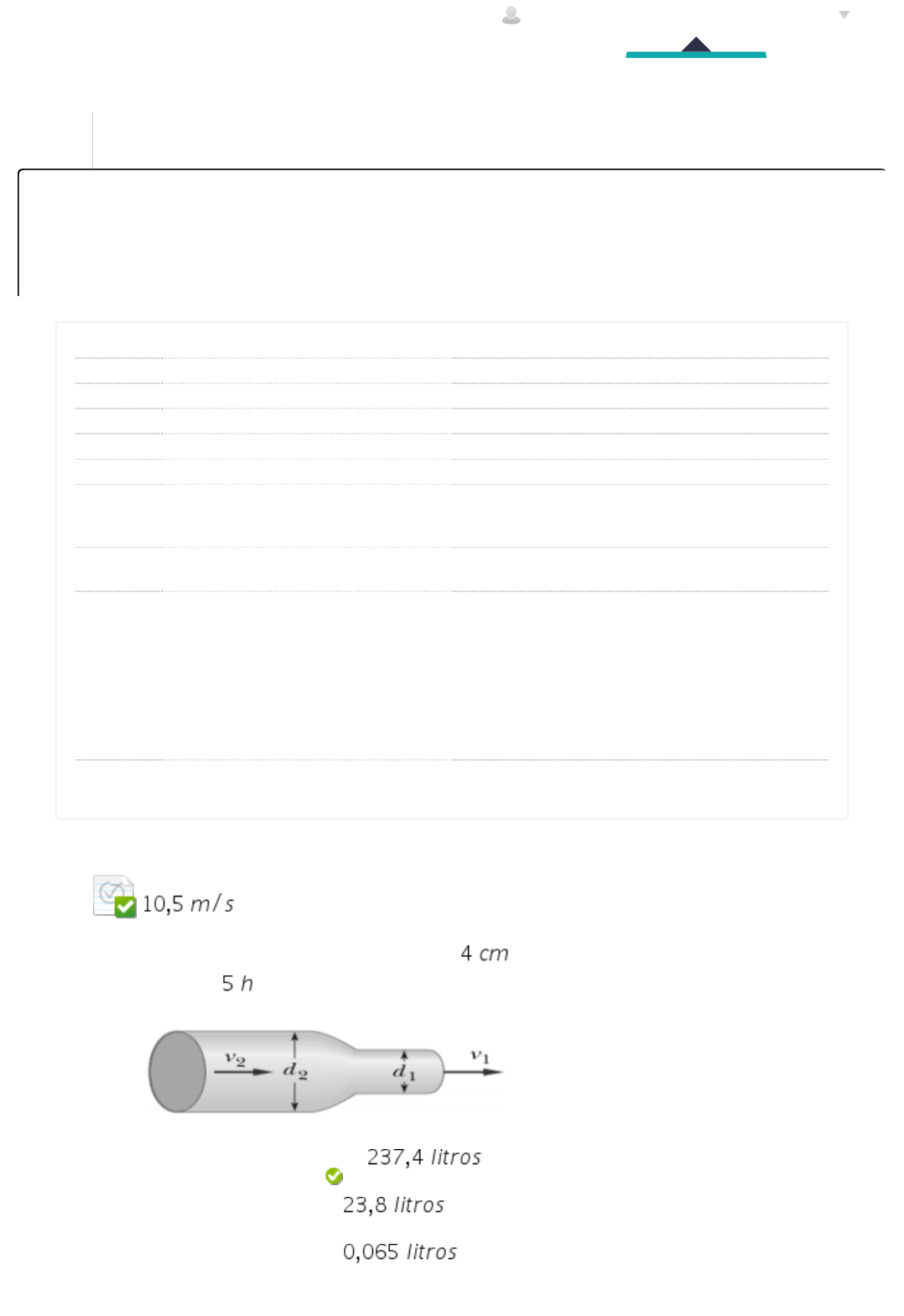 A tubulação ilustrada na figura abaixo, tem na seção 1 um diâmetro interno de ,